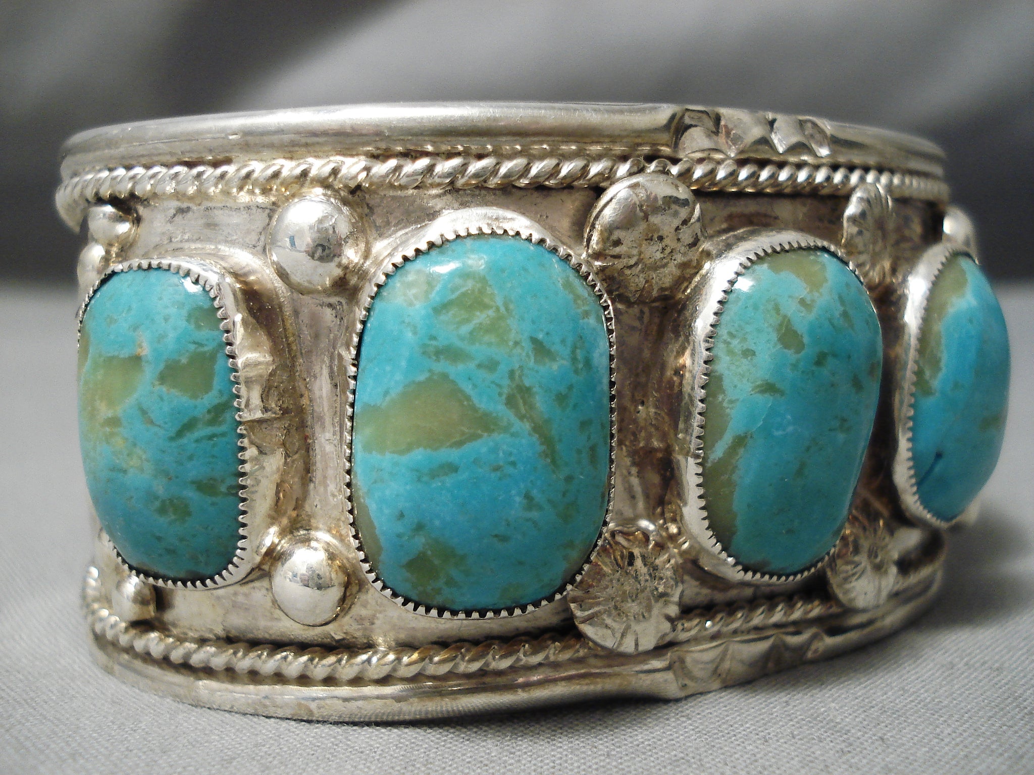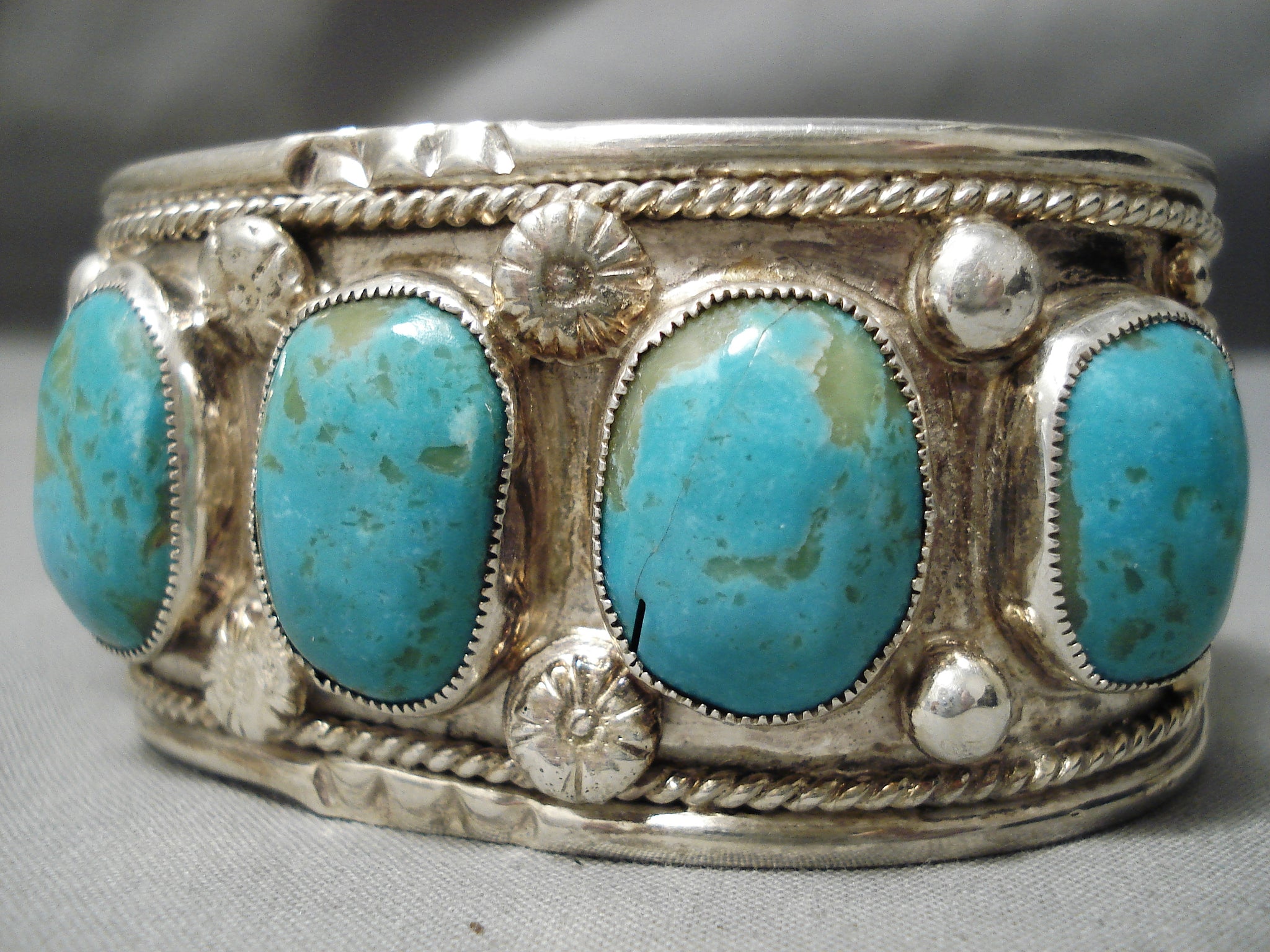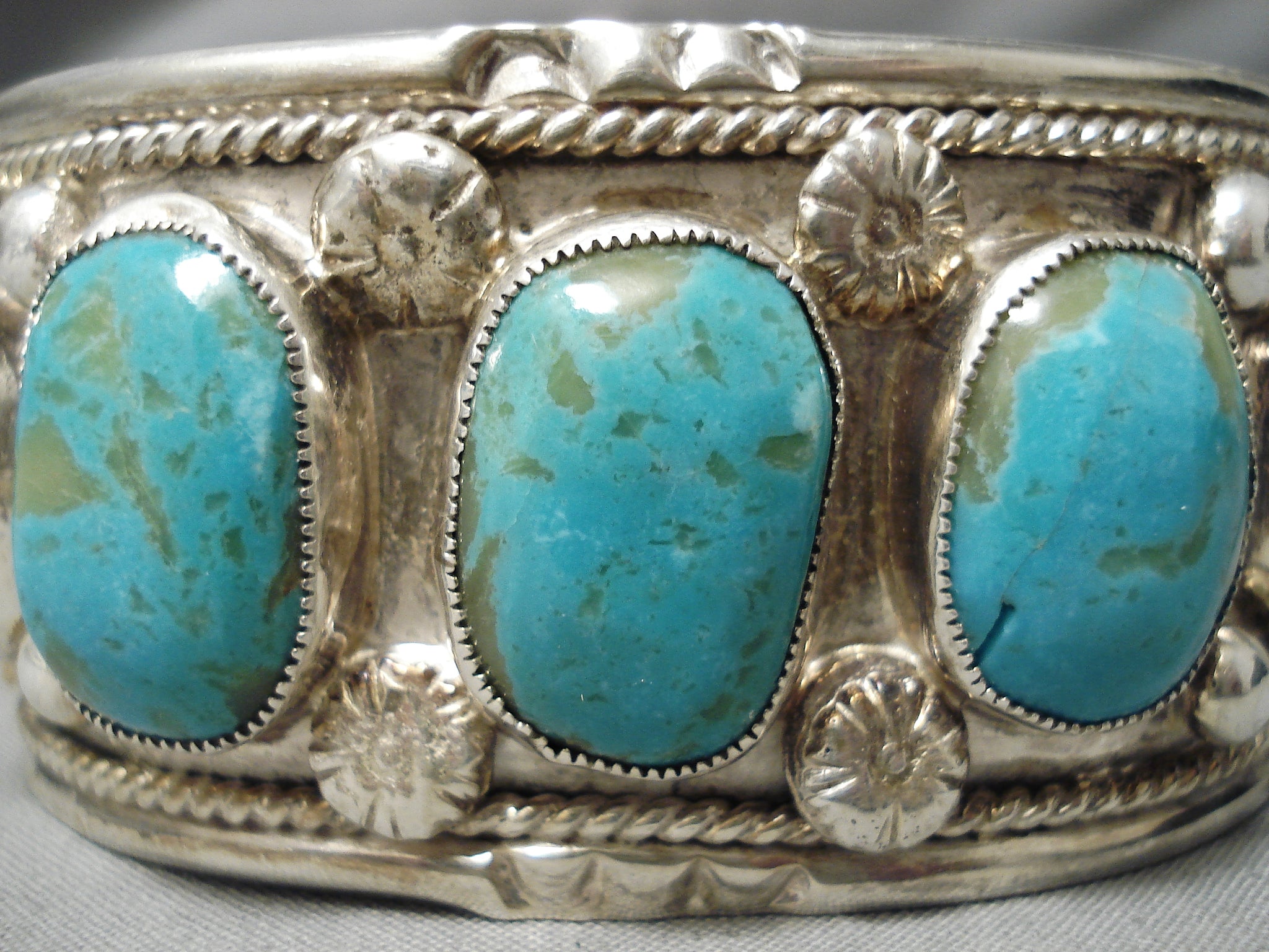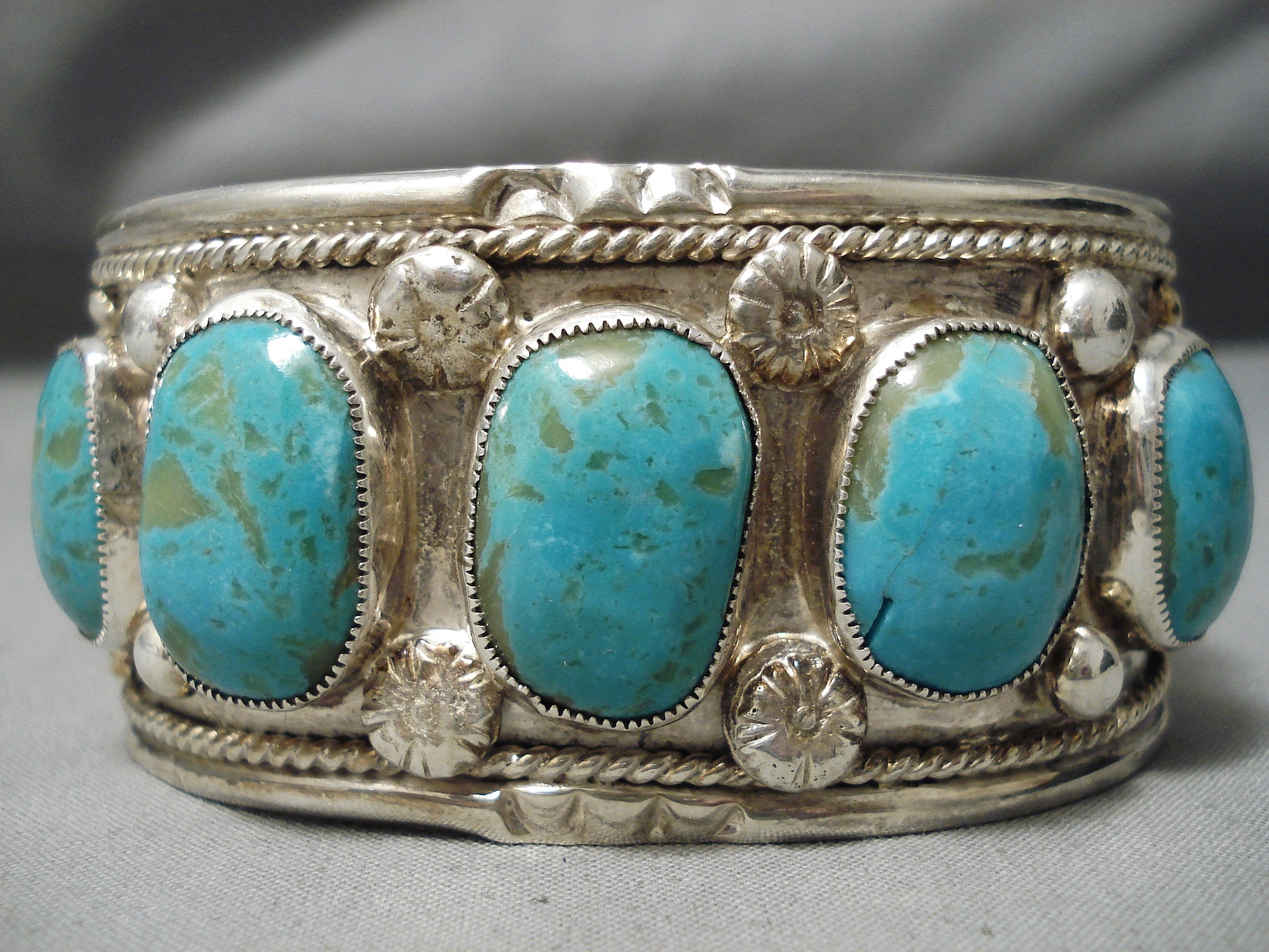 Magnificent Vintage Native American Navajo #8 Turquoise Sterling Silver Bracelet Cuff Old