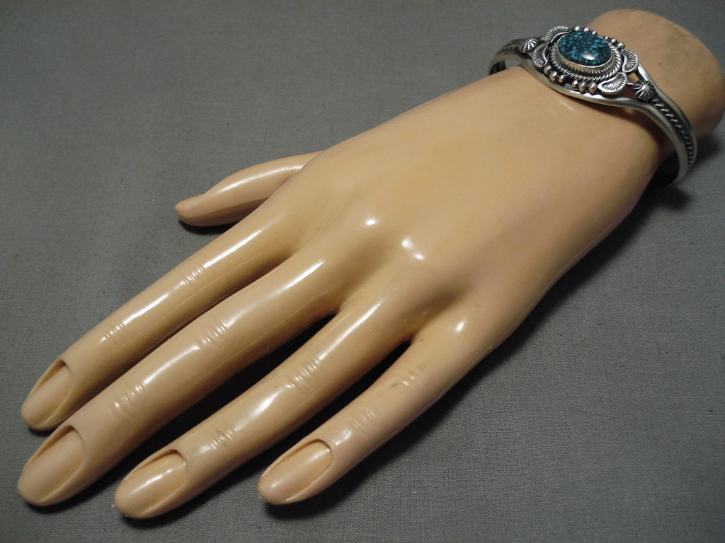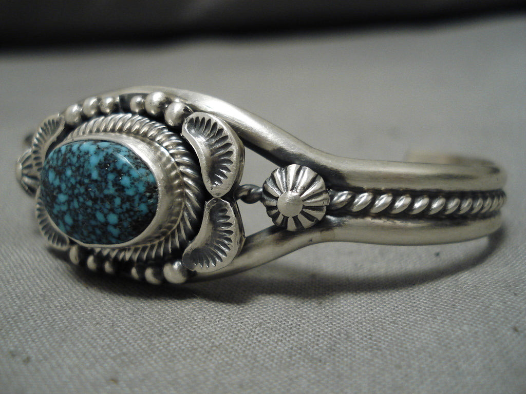 Magnificent Vintage Native American Navajo Blue Spiderweb Turquoise Sterling Silver Bracelet