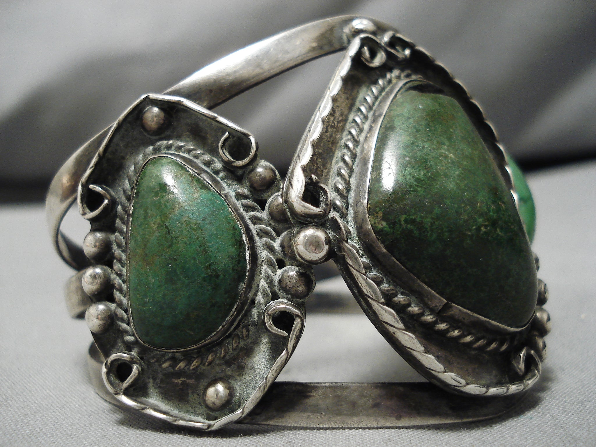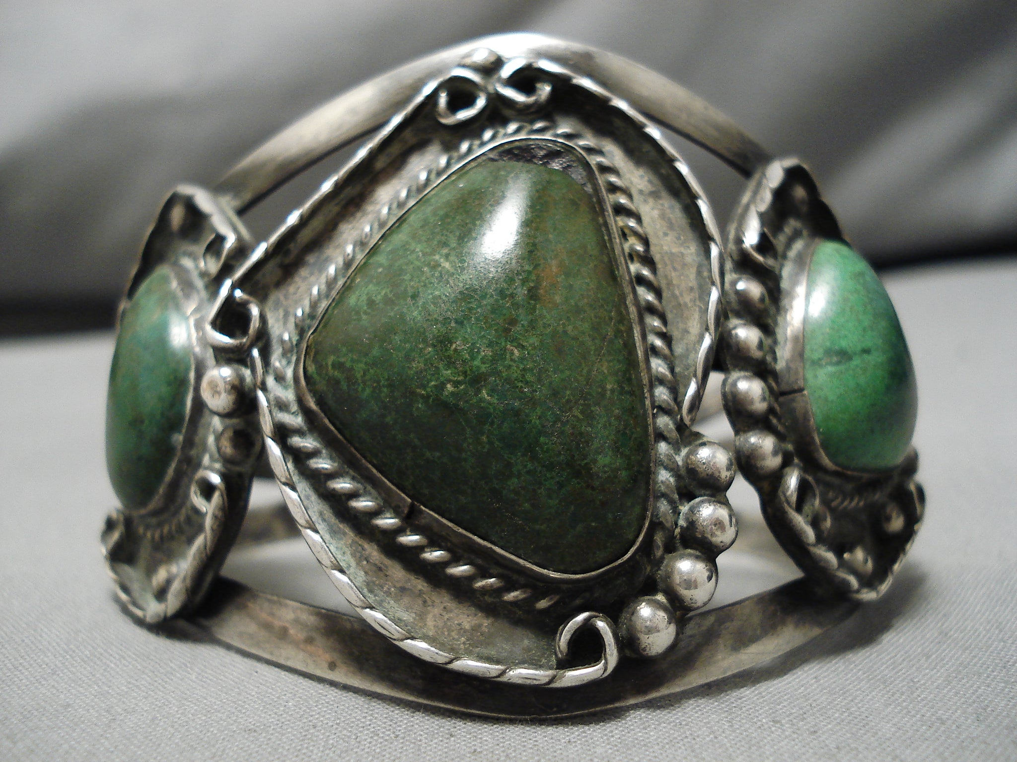 Magnificent Vintage Native American Navajo Chrysocolla Sterling Silver Bracelet