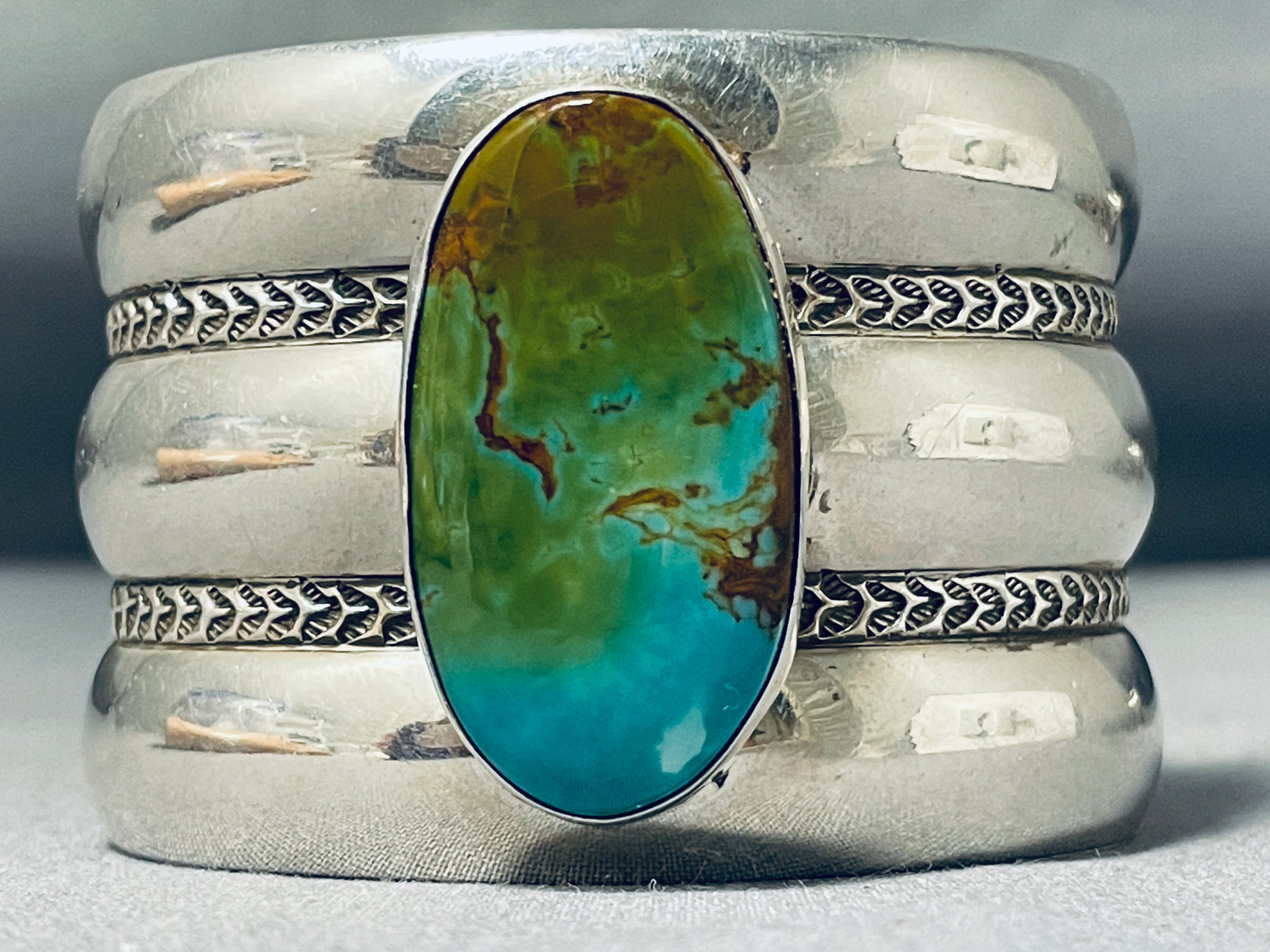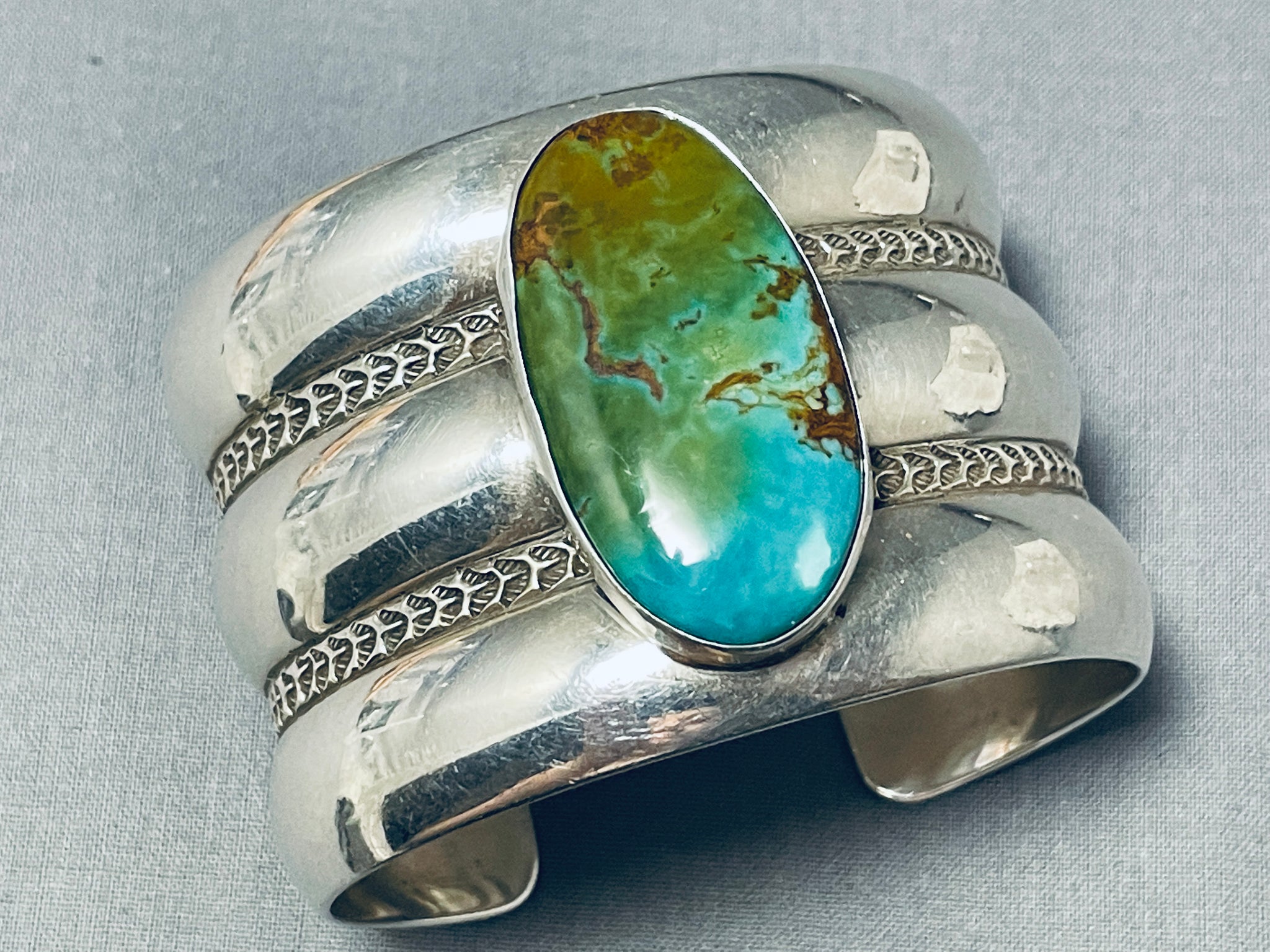 Magnificent Vintage Native American Navajo Damale Turquoise Sterling Silver Bracelet Signed