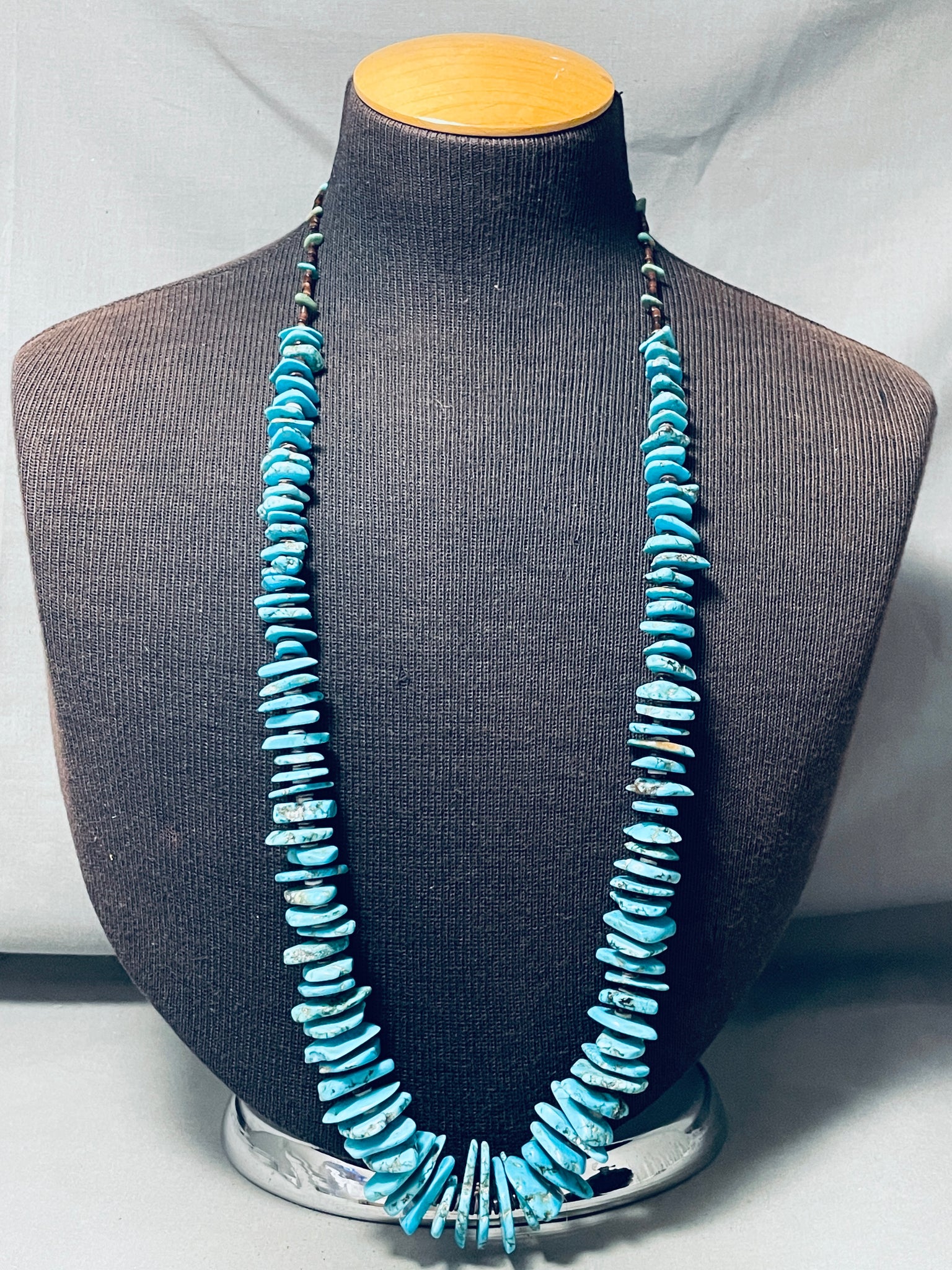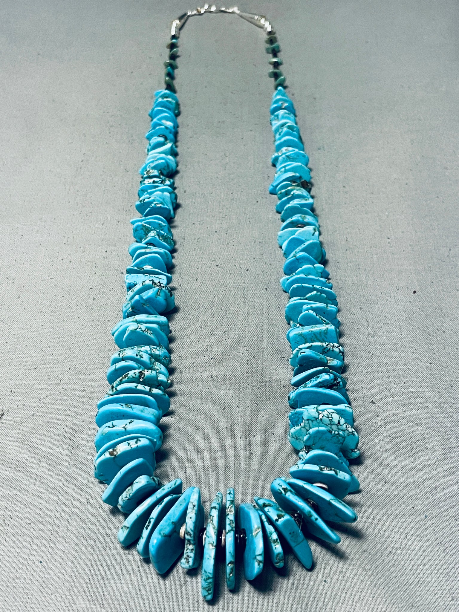 Magnificent Vintage Native American Navajo Kingman Turquoise Sterling Silver Necklace
