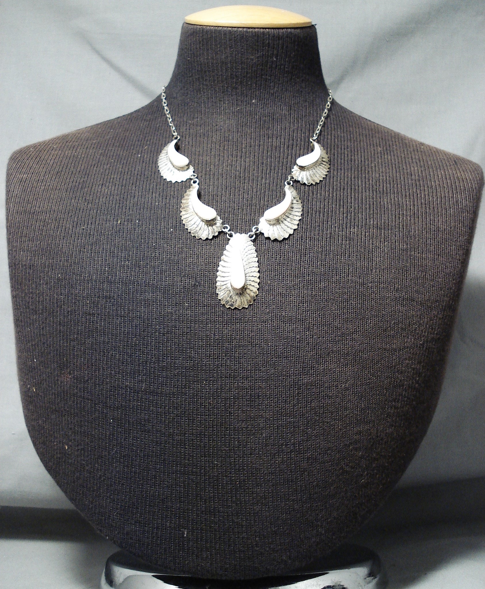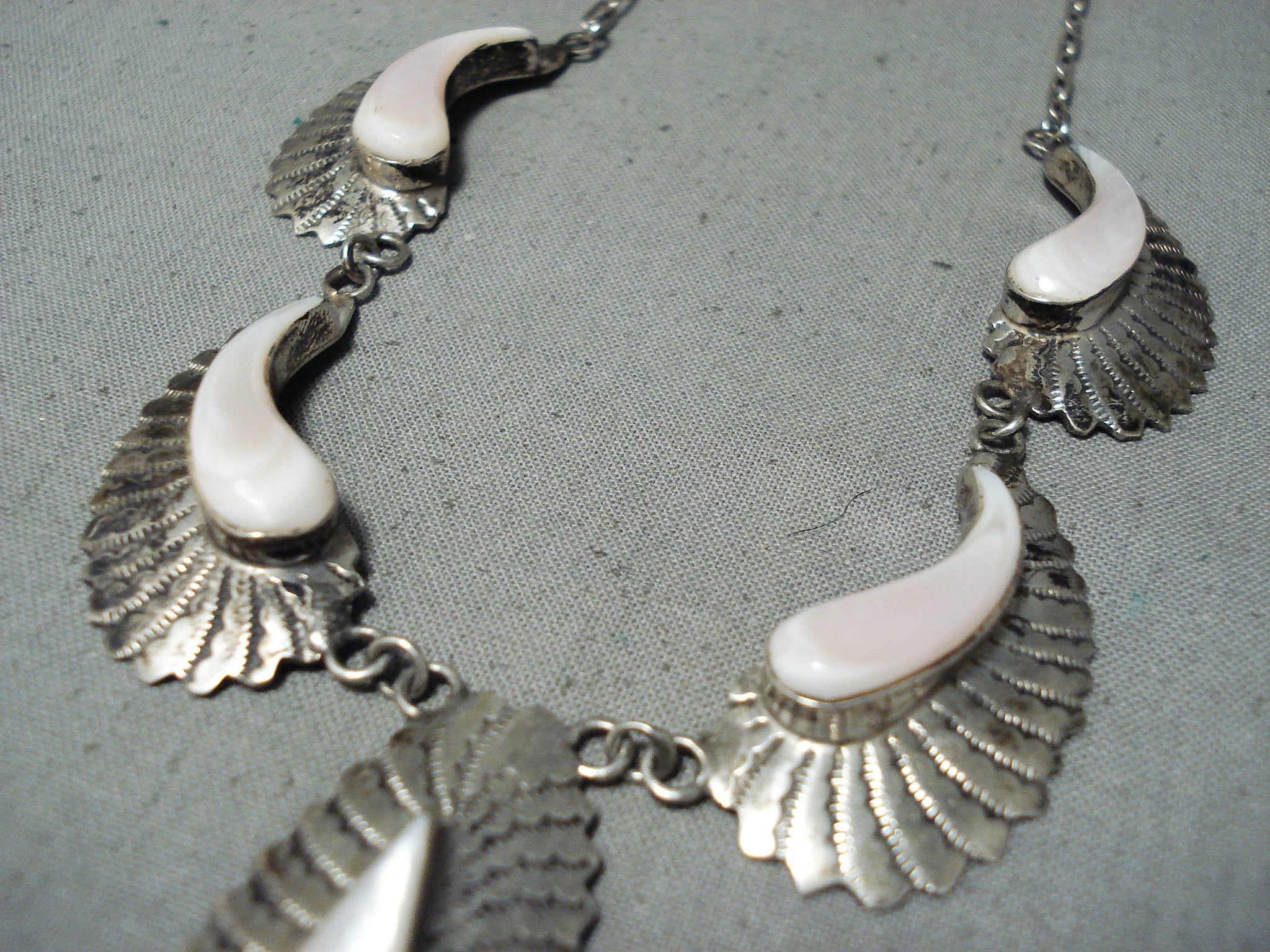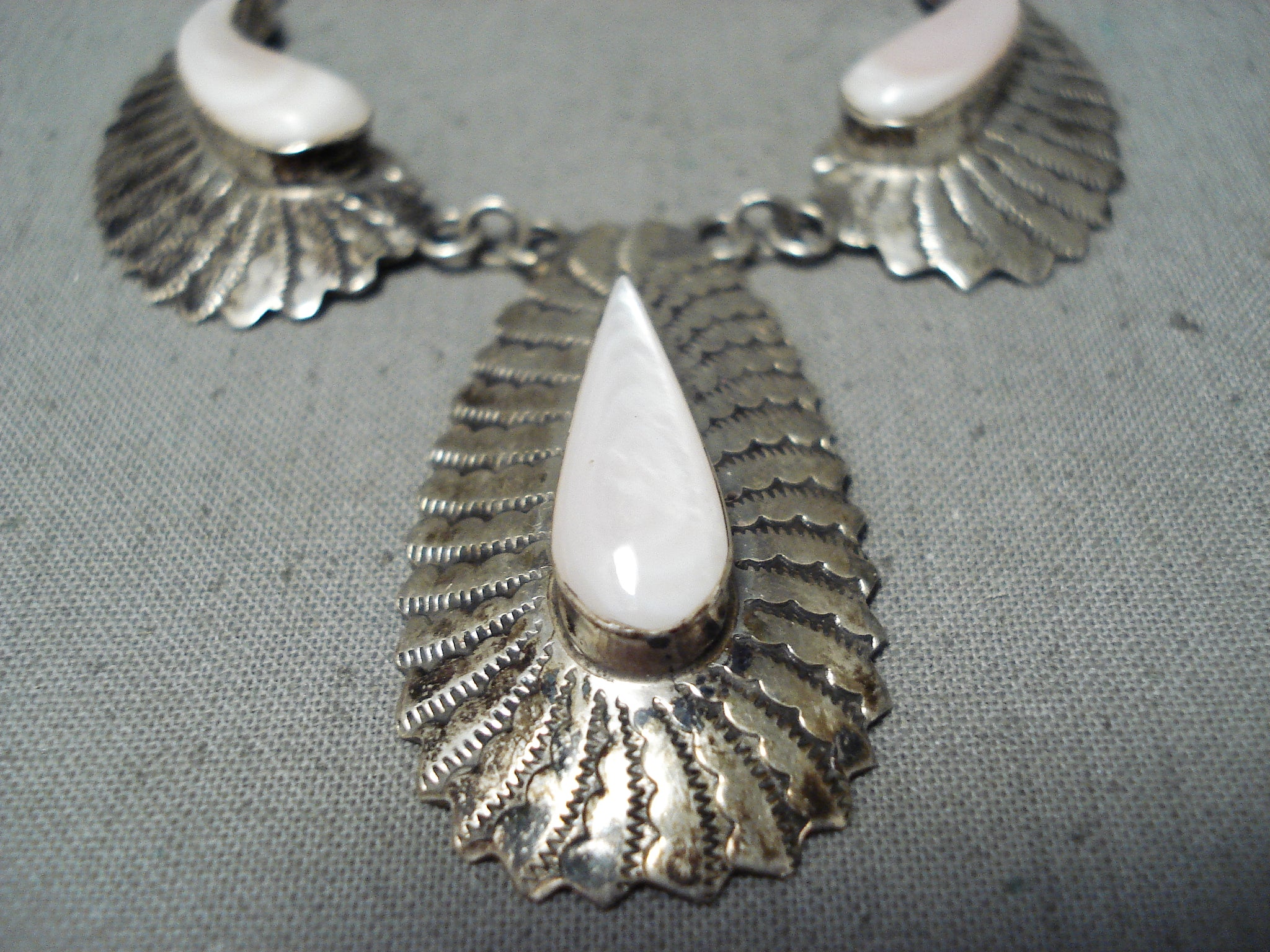 Magnificent Vintage Native American Navajo Mother Of Pearl Sterling Silver Necklace