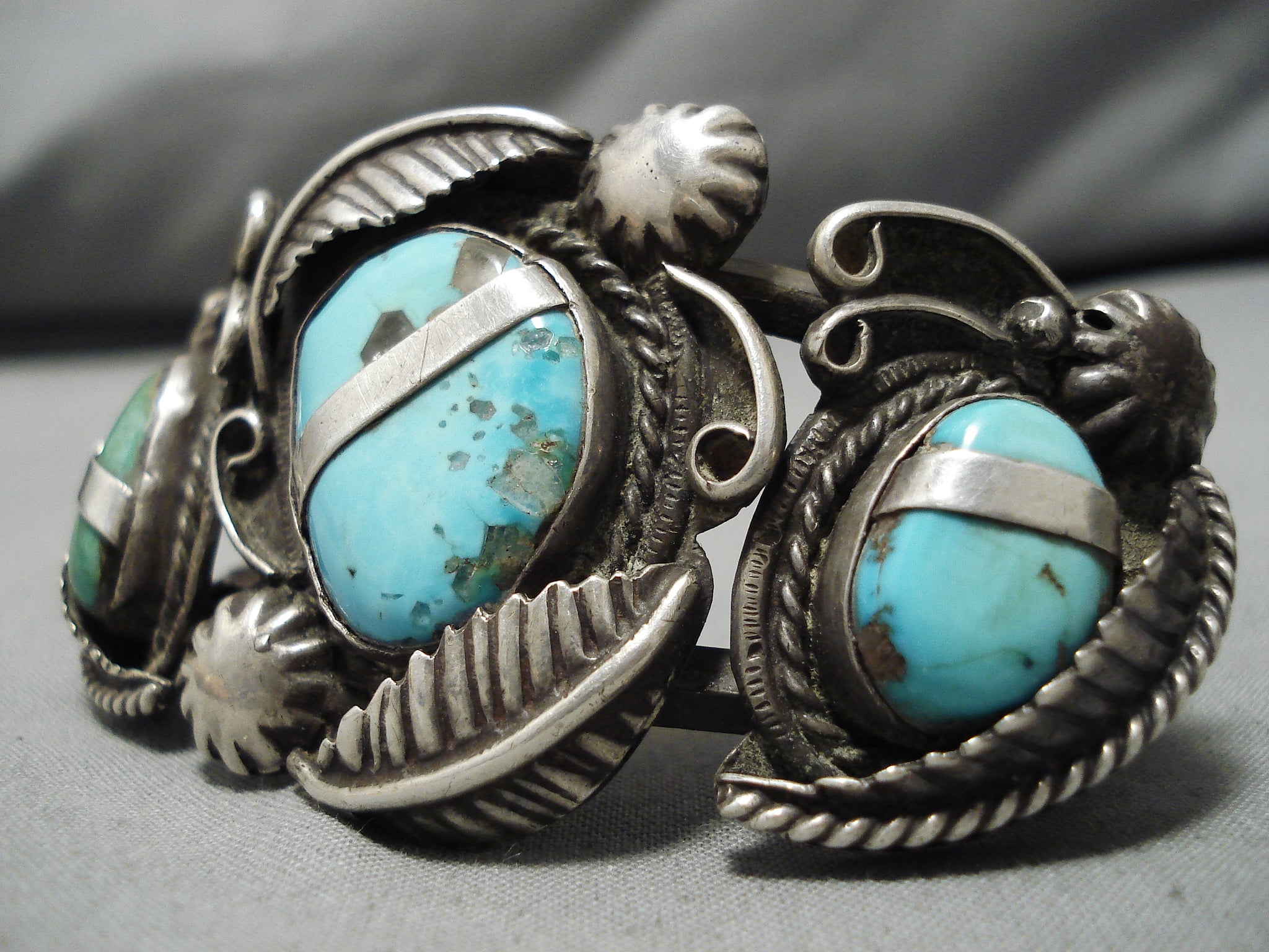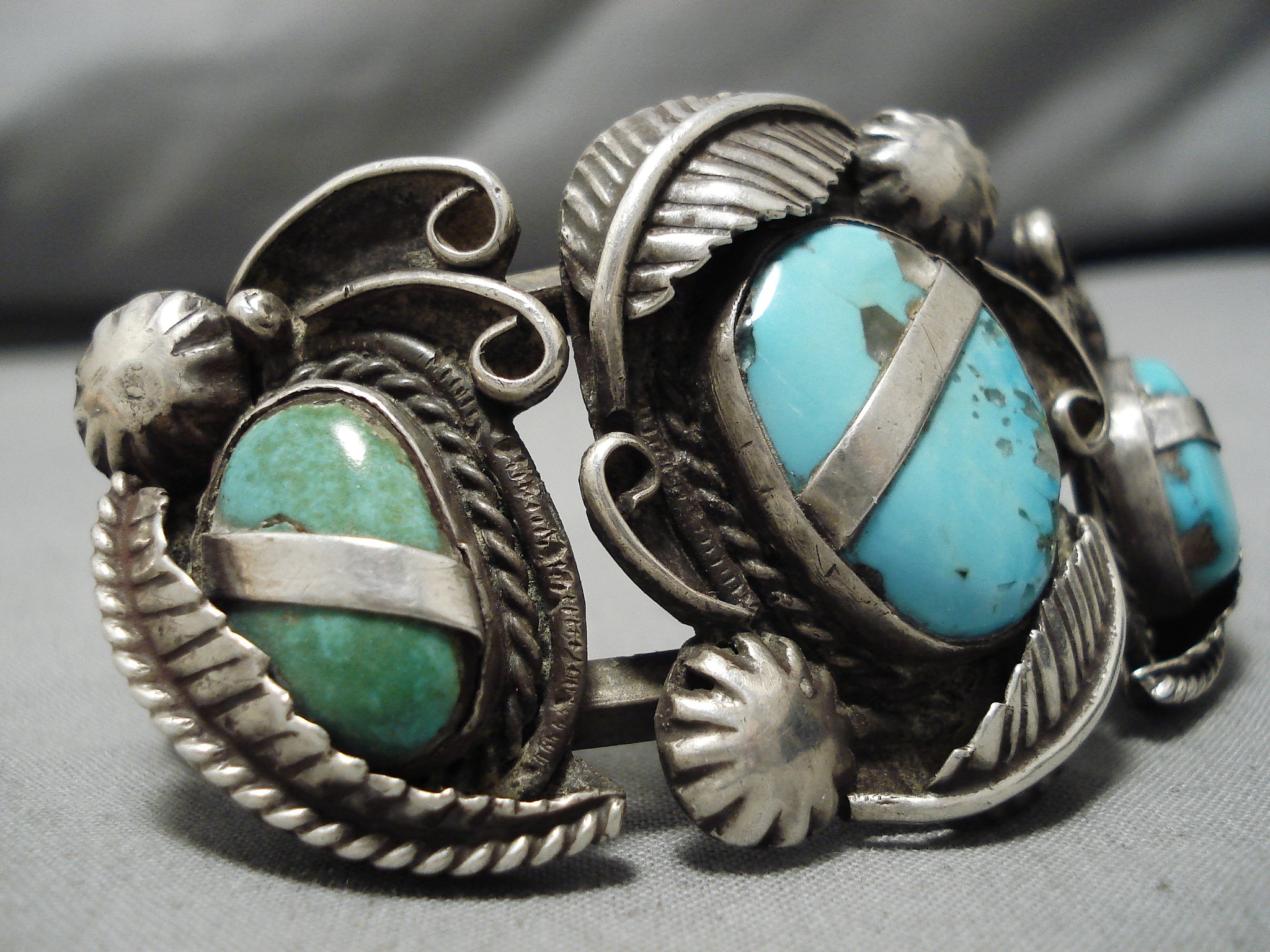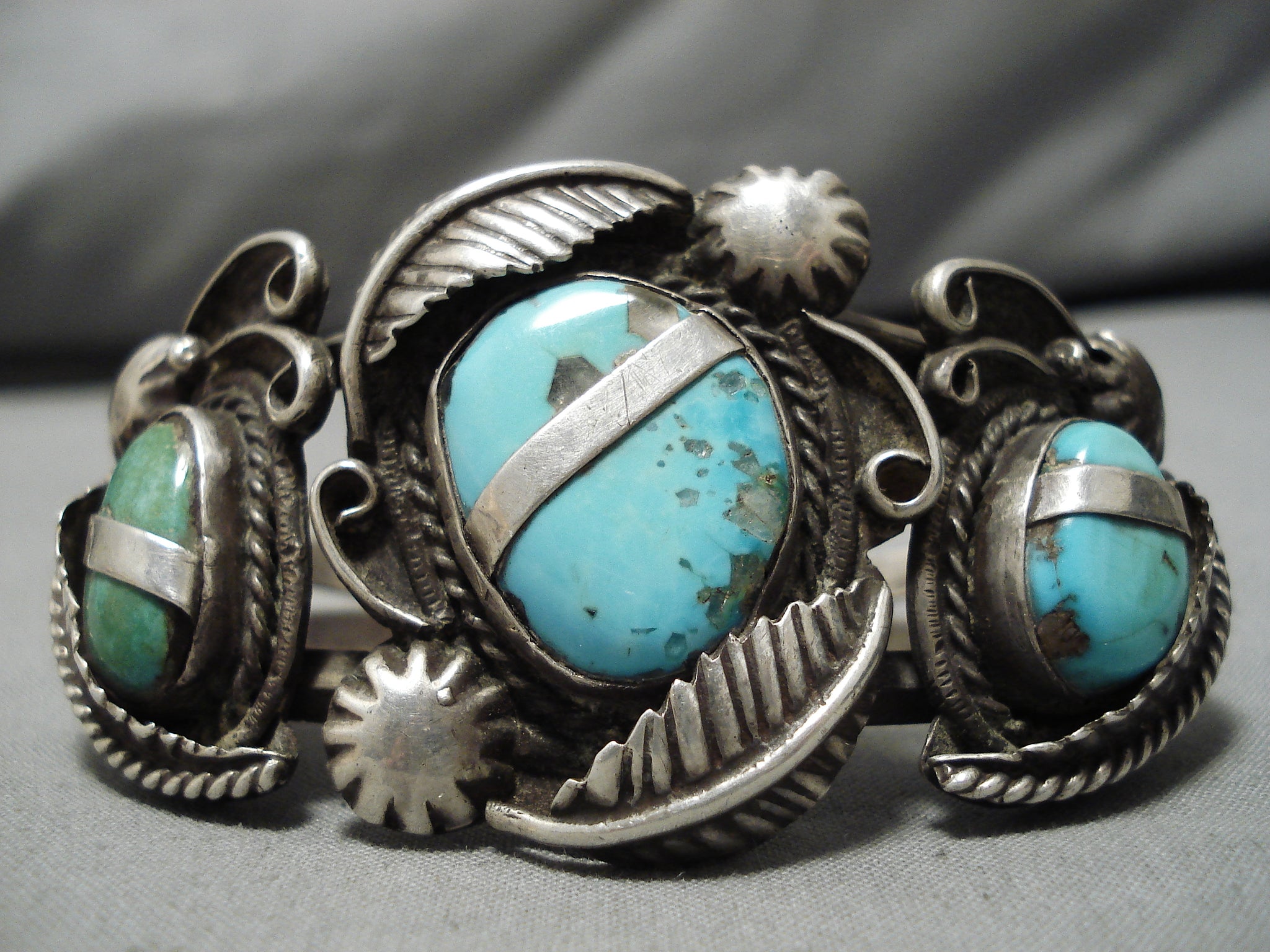 Magnificent Vintage Native American Navajo Oval Turquoise Sterling Silver Bracelet Cuff