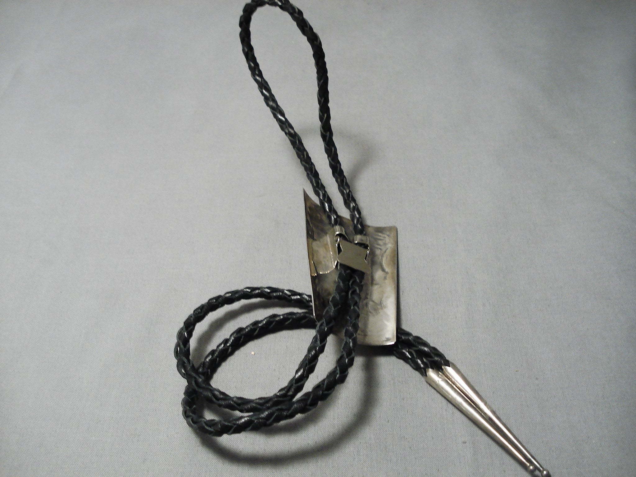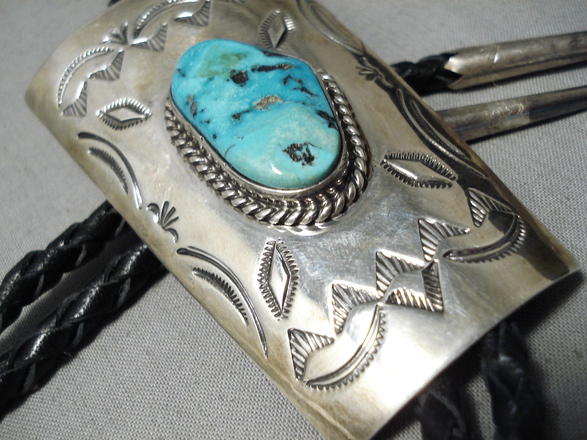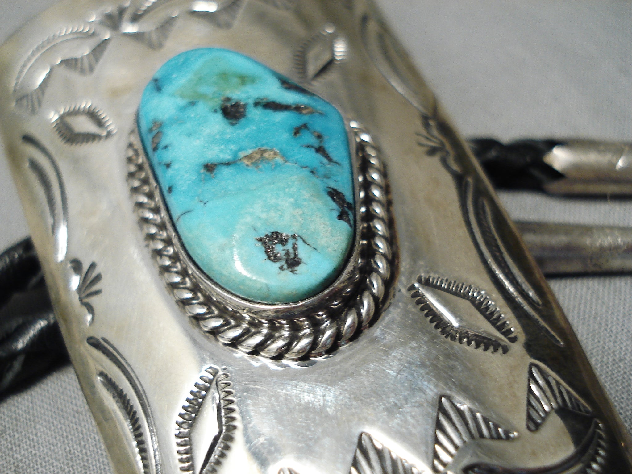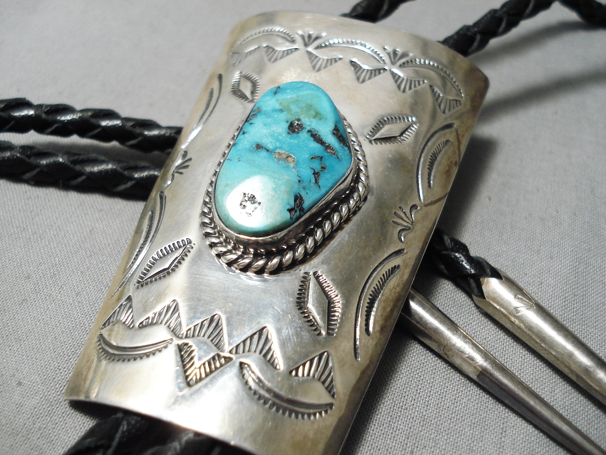 Magnificent Vintage Native American Navajo Vivid Blue Turquoise Sterling Silver Bolo Tie