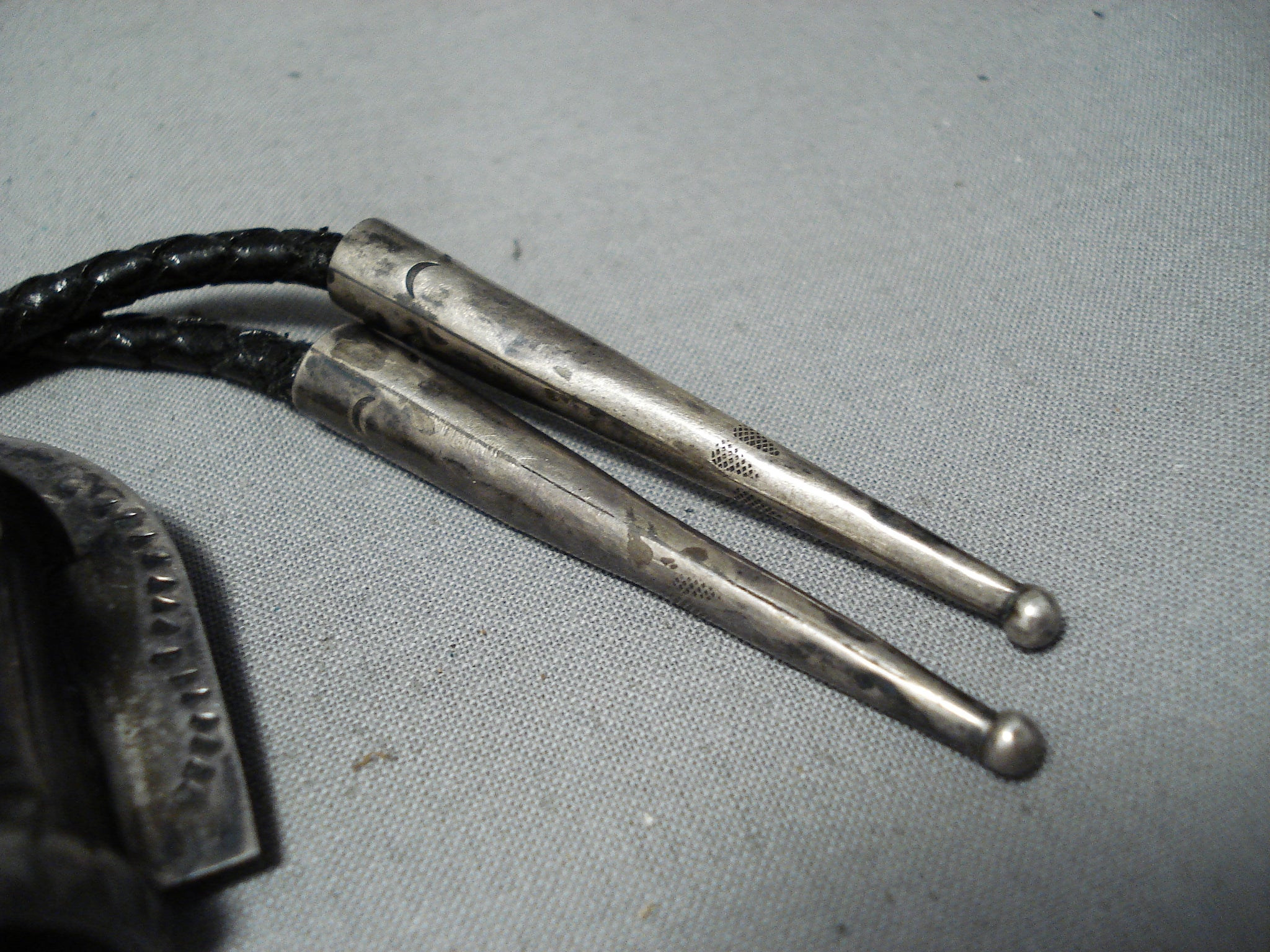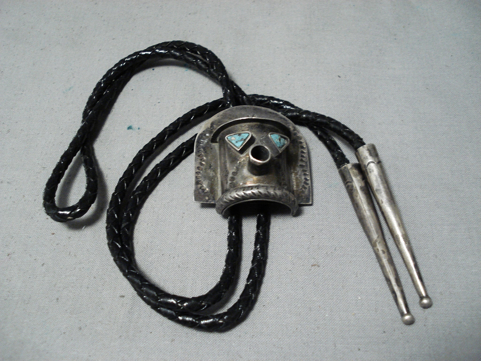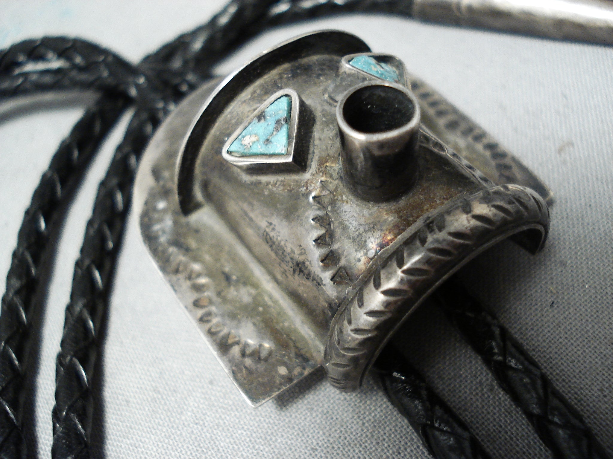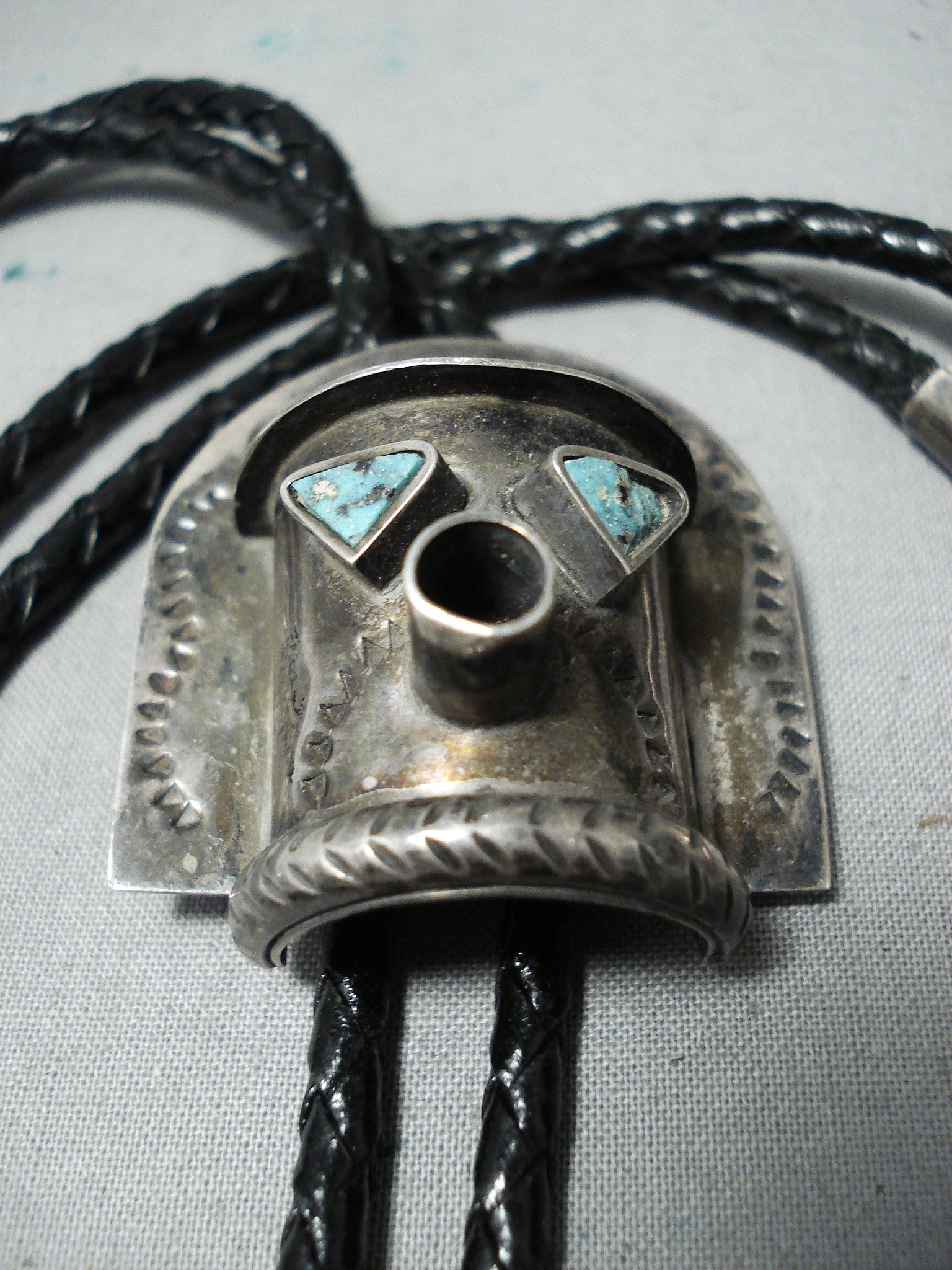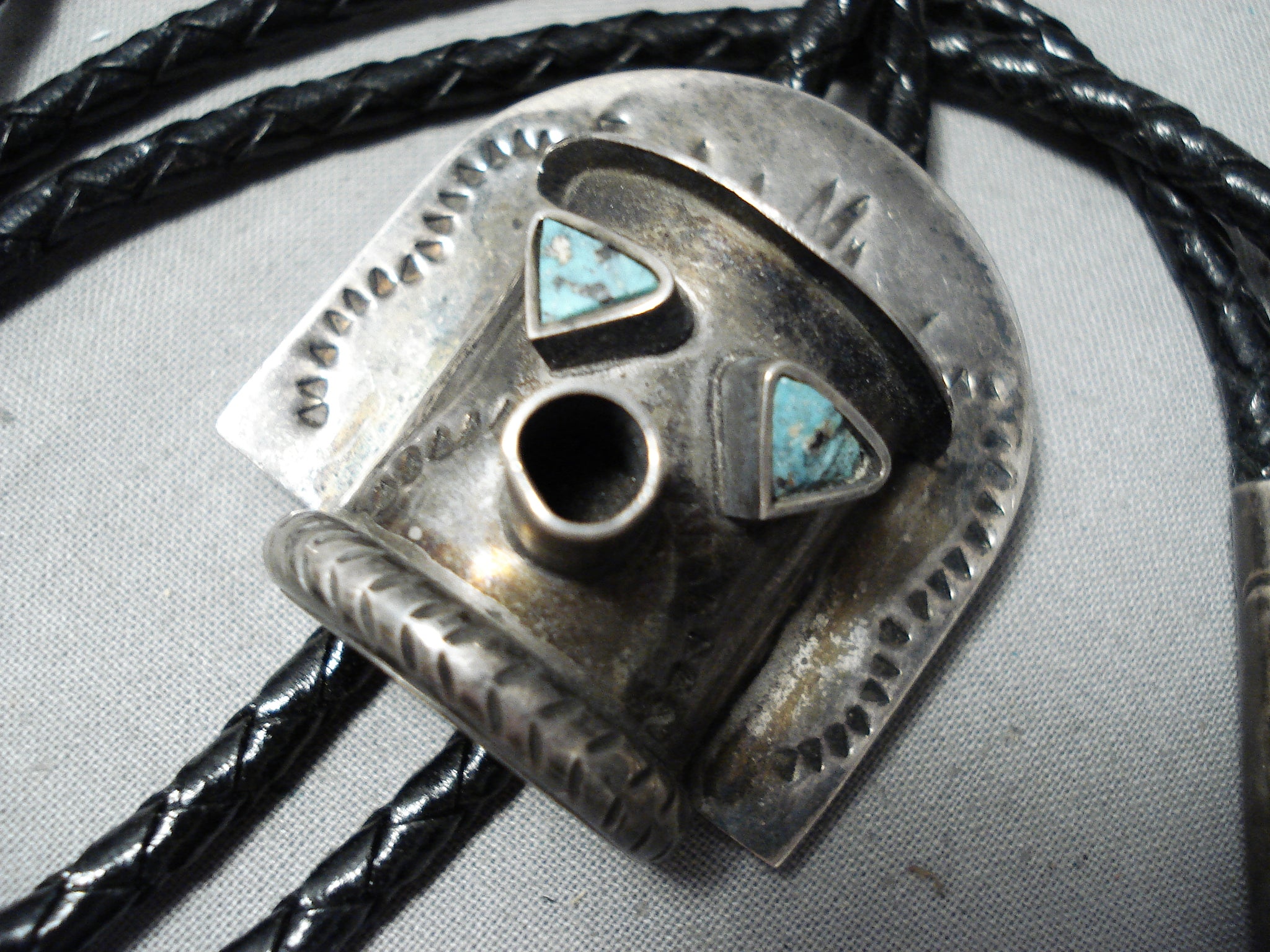 Magnificent Vintage Native American Zuni Turquoise Sterling Silver Kachina Bolo Old