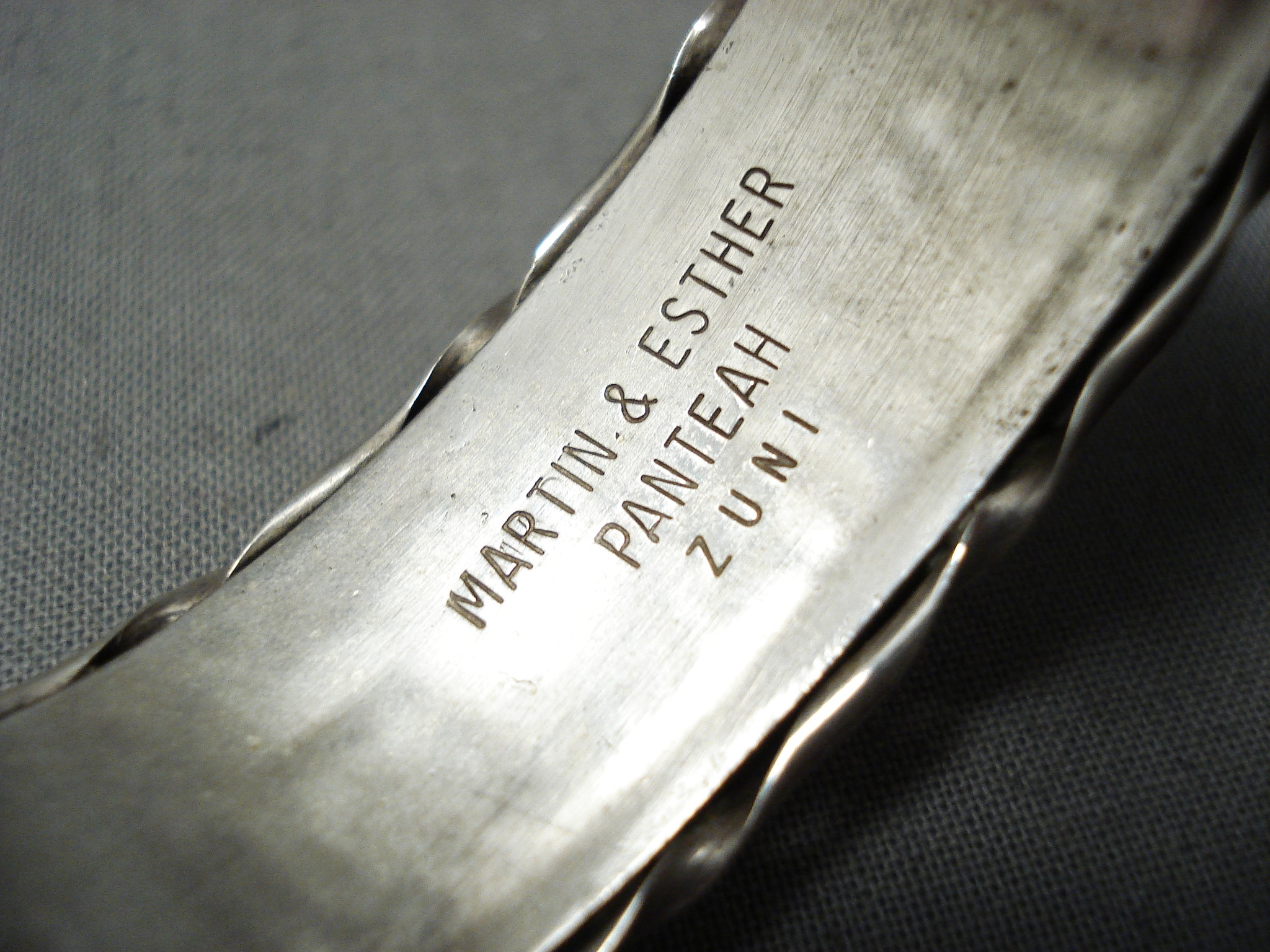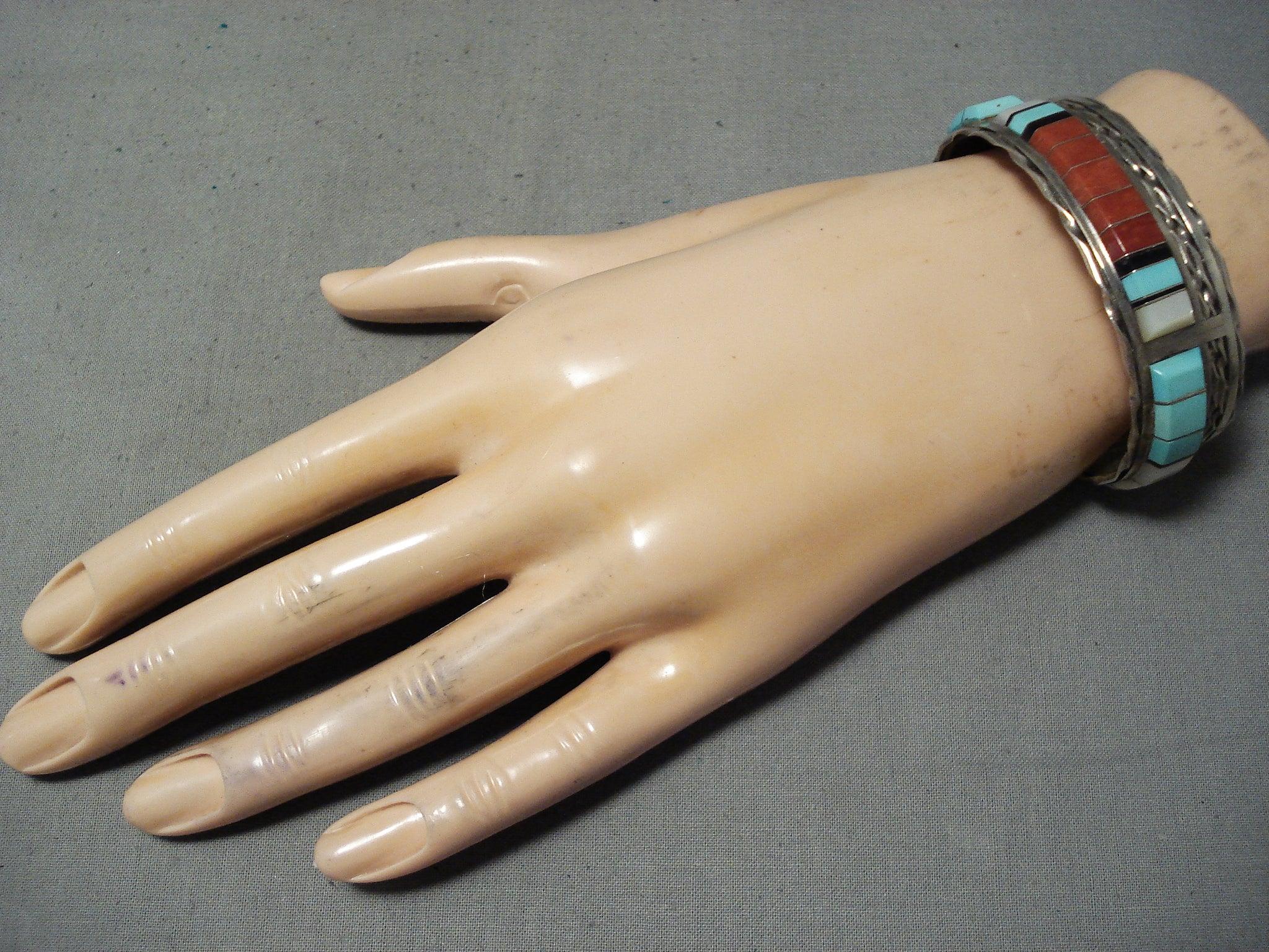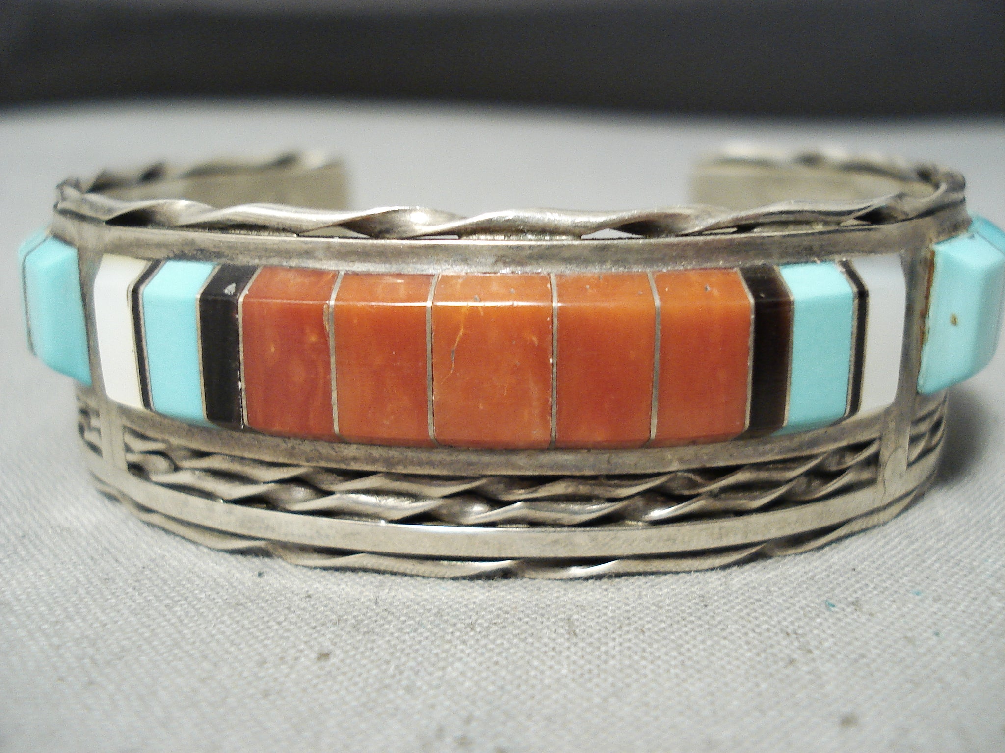 Martin And Esther Panteah Turquoise Coral Sterling Silver Native American Zuni Bracelet
