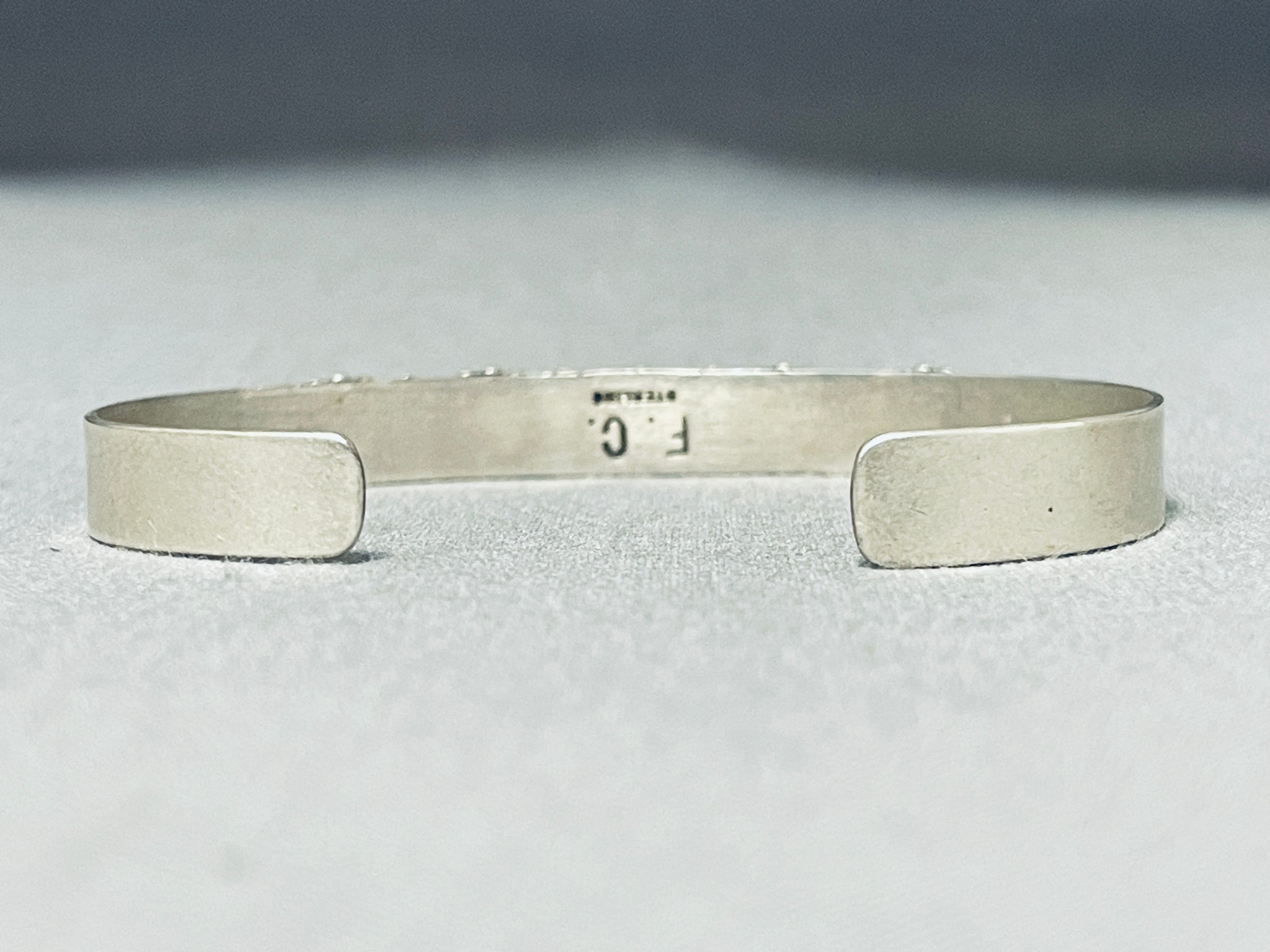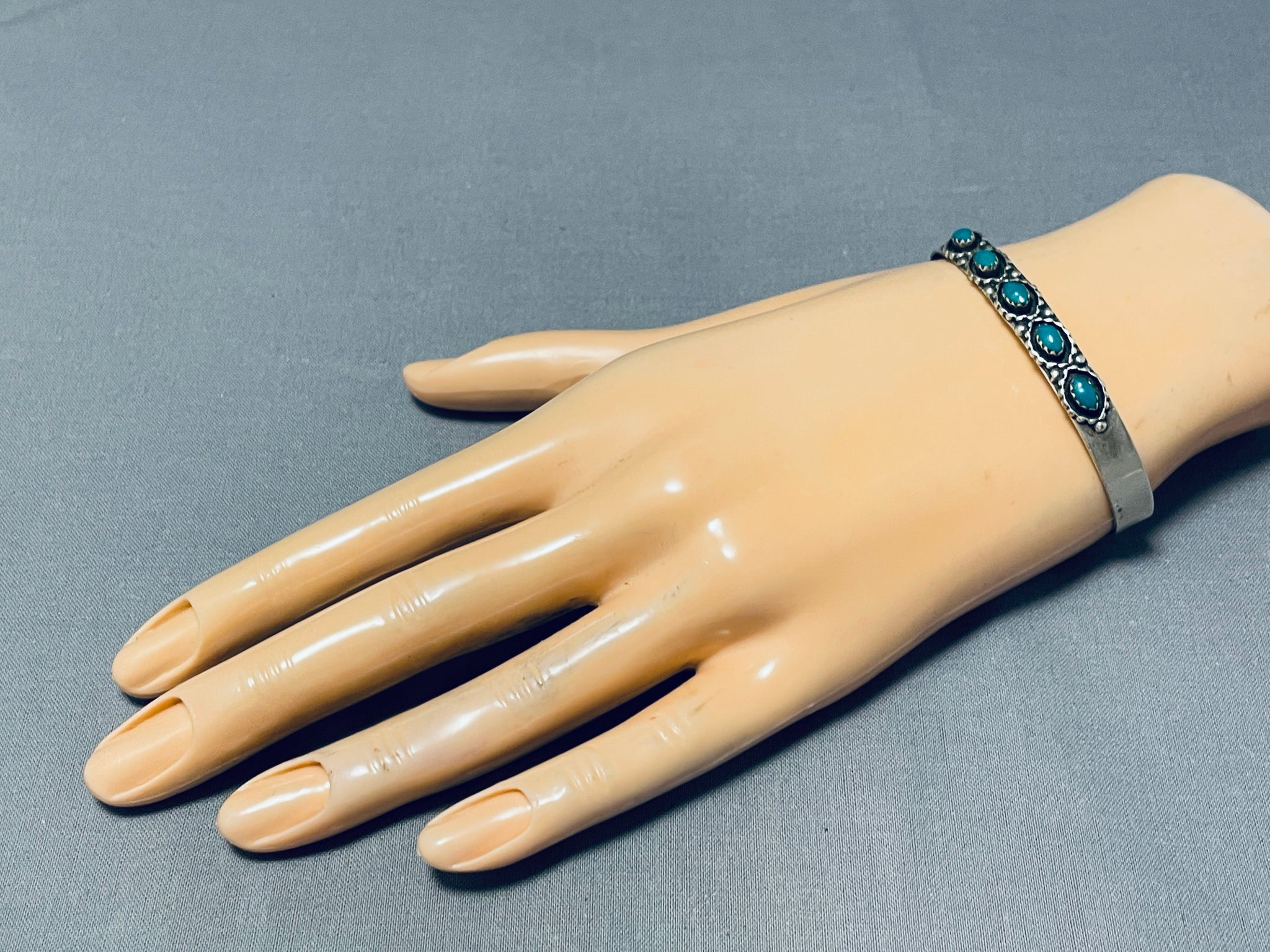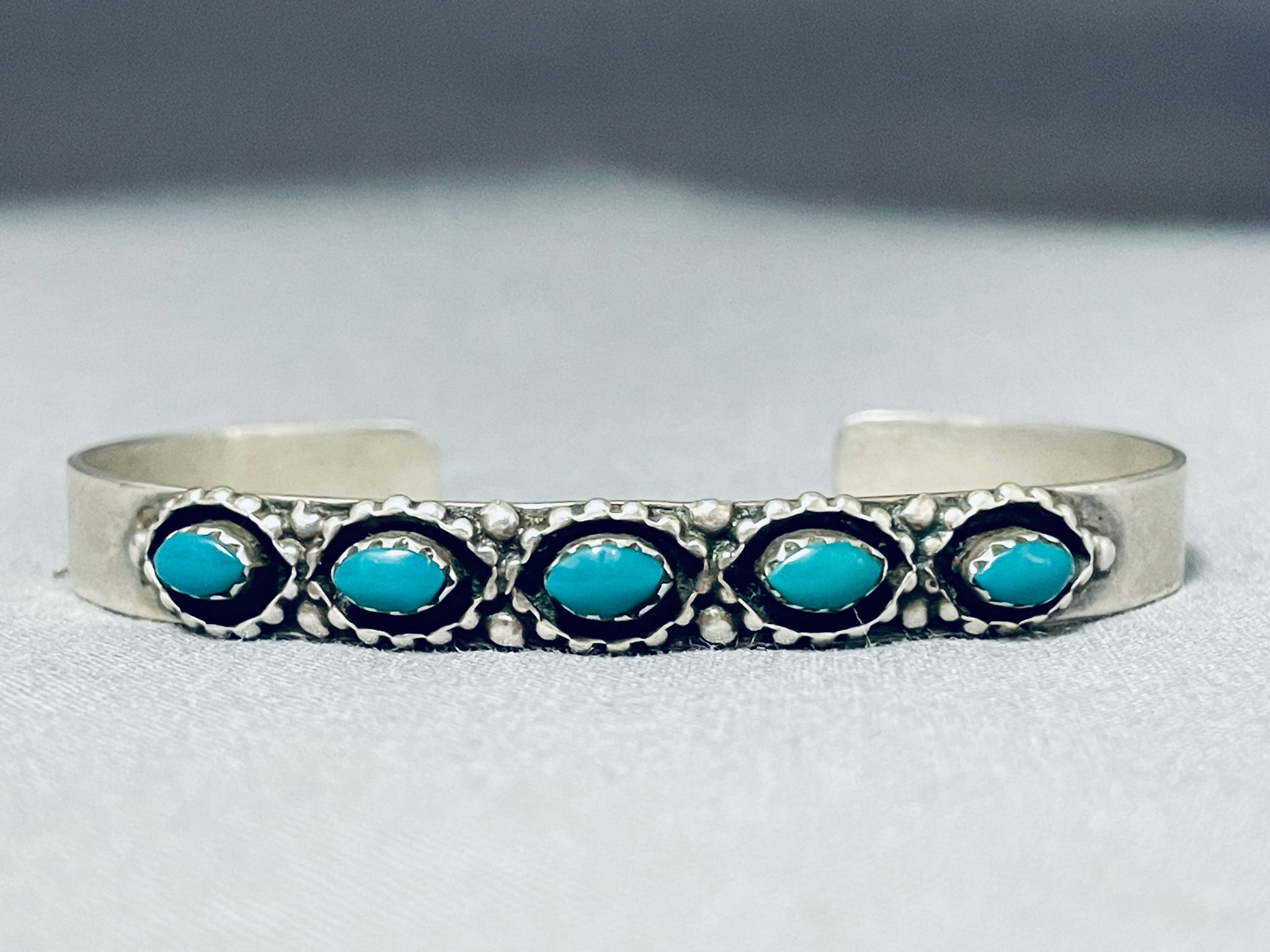 Marvelous Vintage Native American Laguna Blue Gem Turquoise Sterling Silver Bracelet Signed