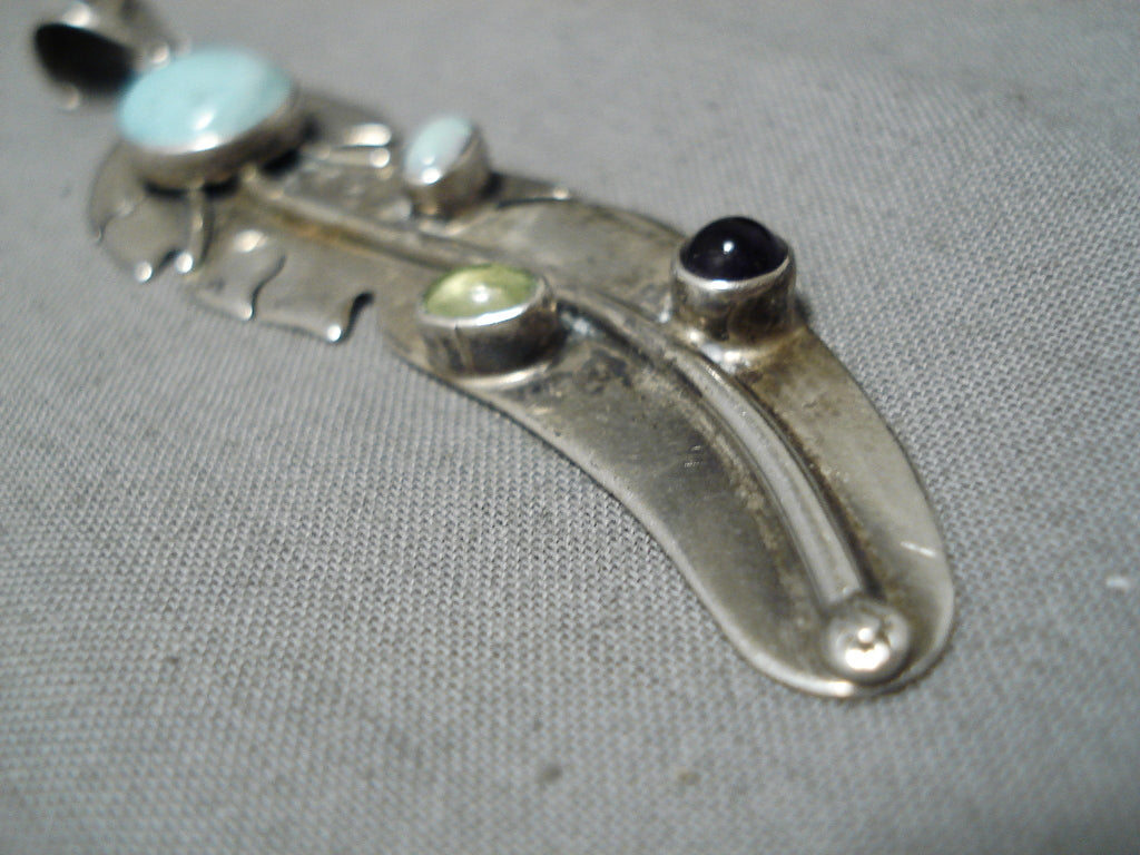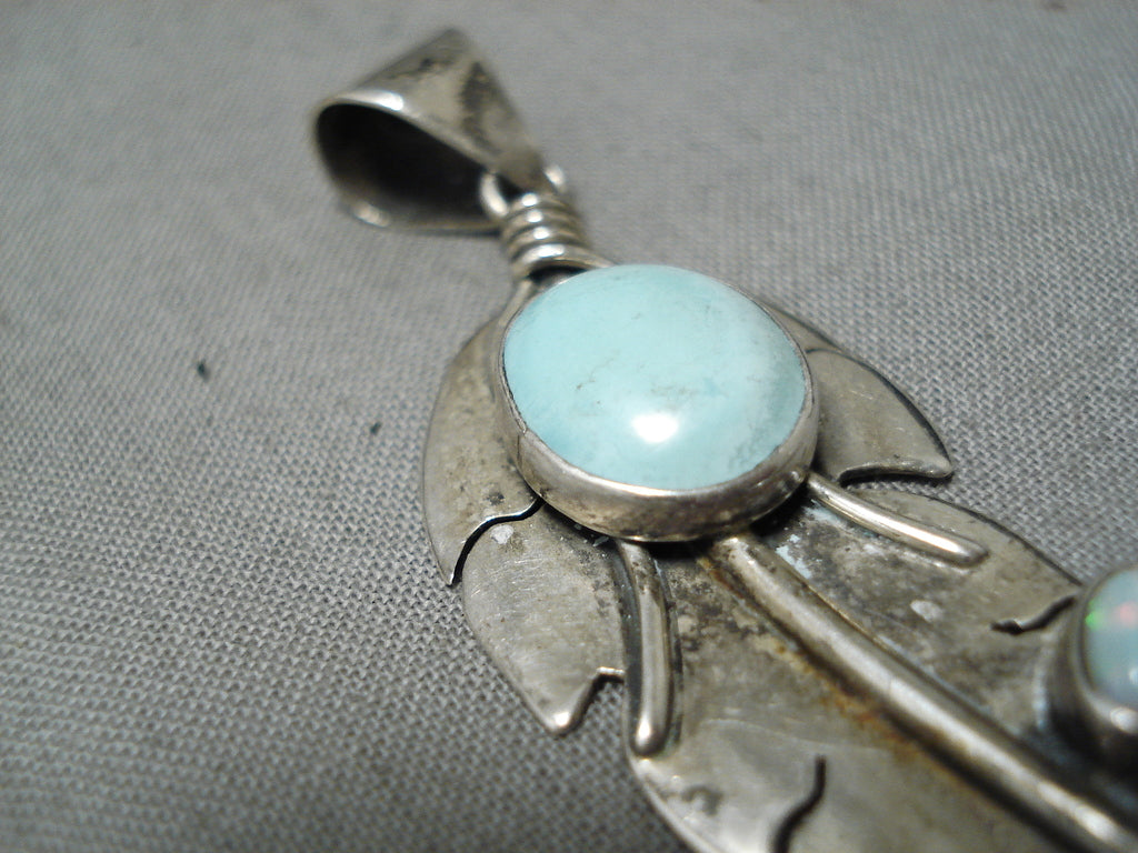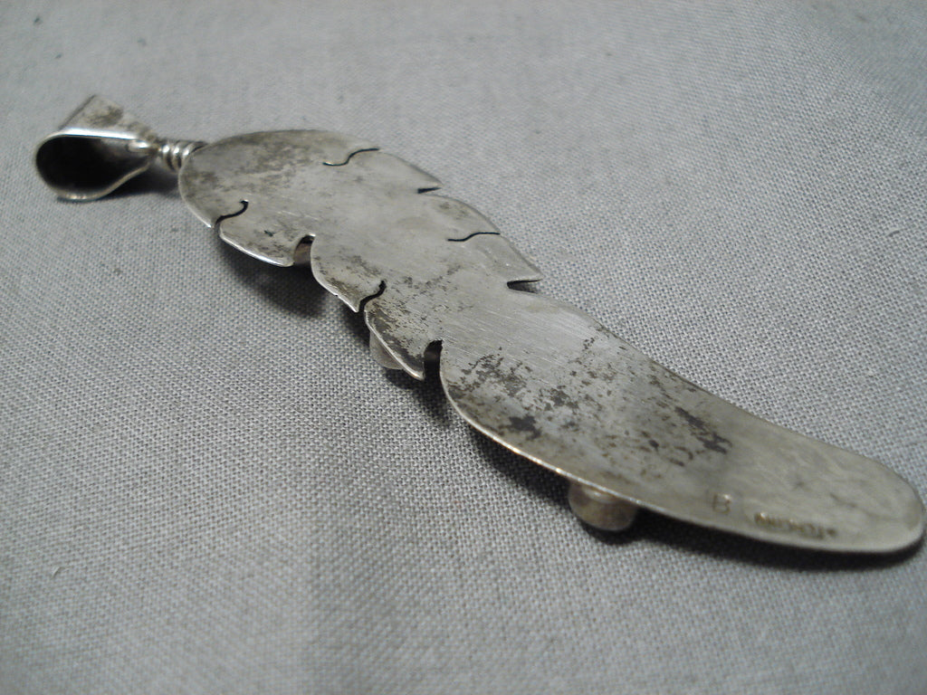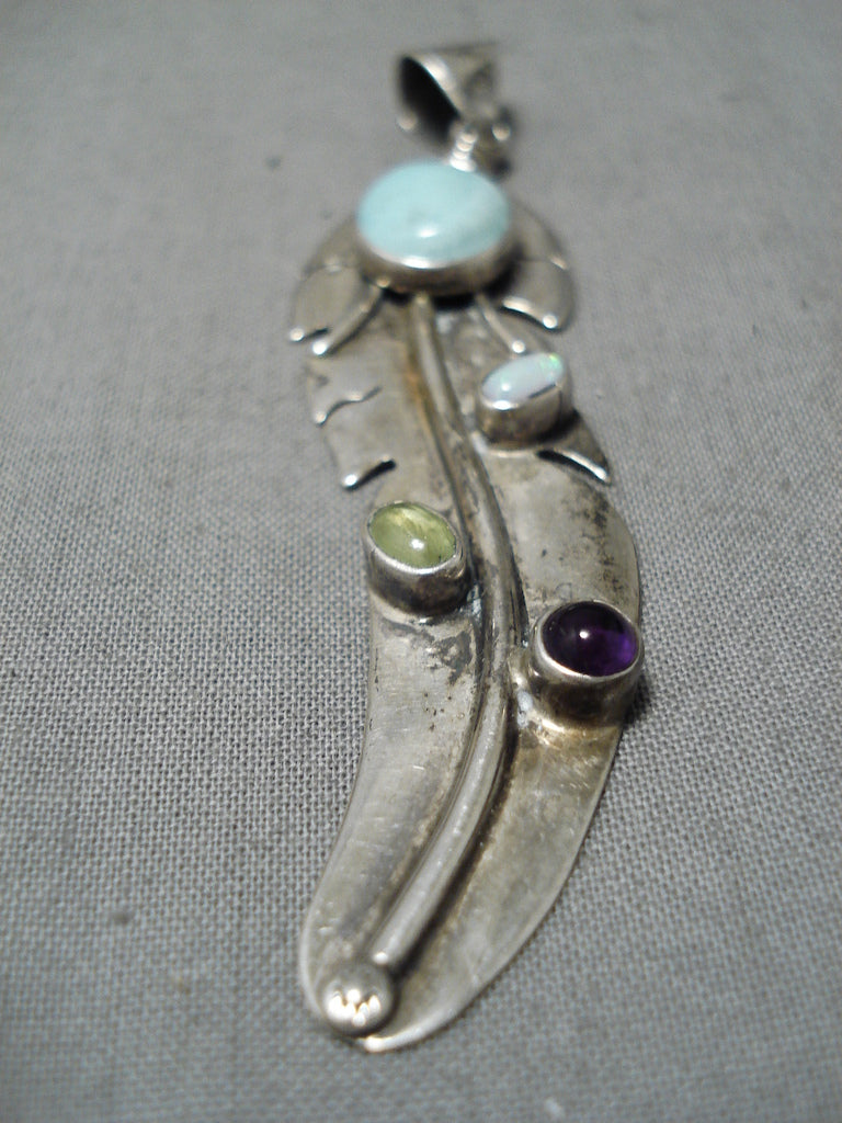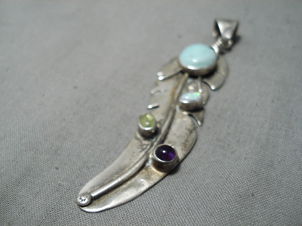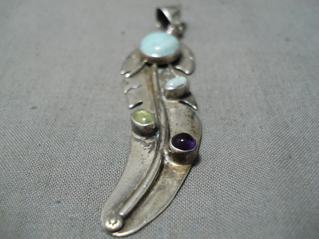 Marvelous Vintage Native American Navajo Amethyst Opal Sterling Silver Feather Pendant