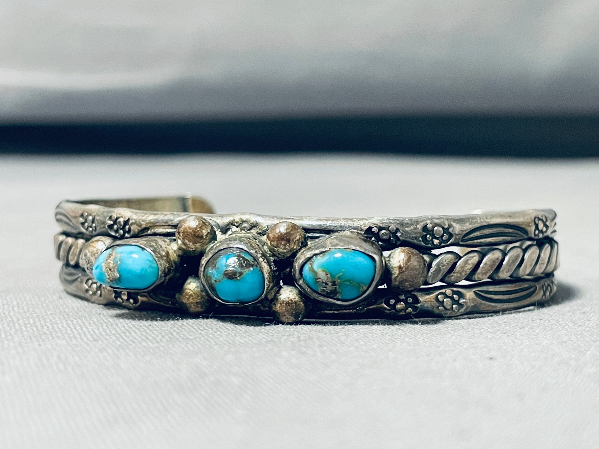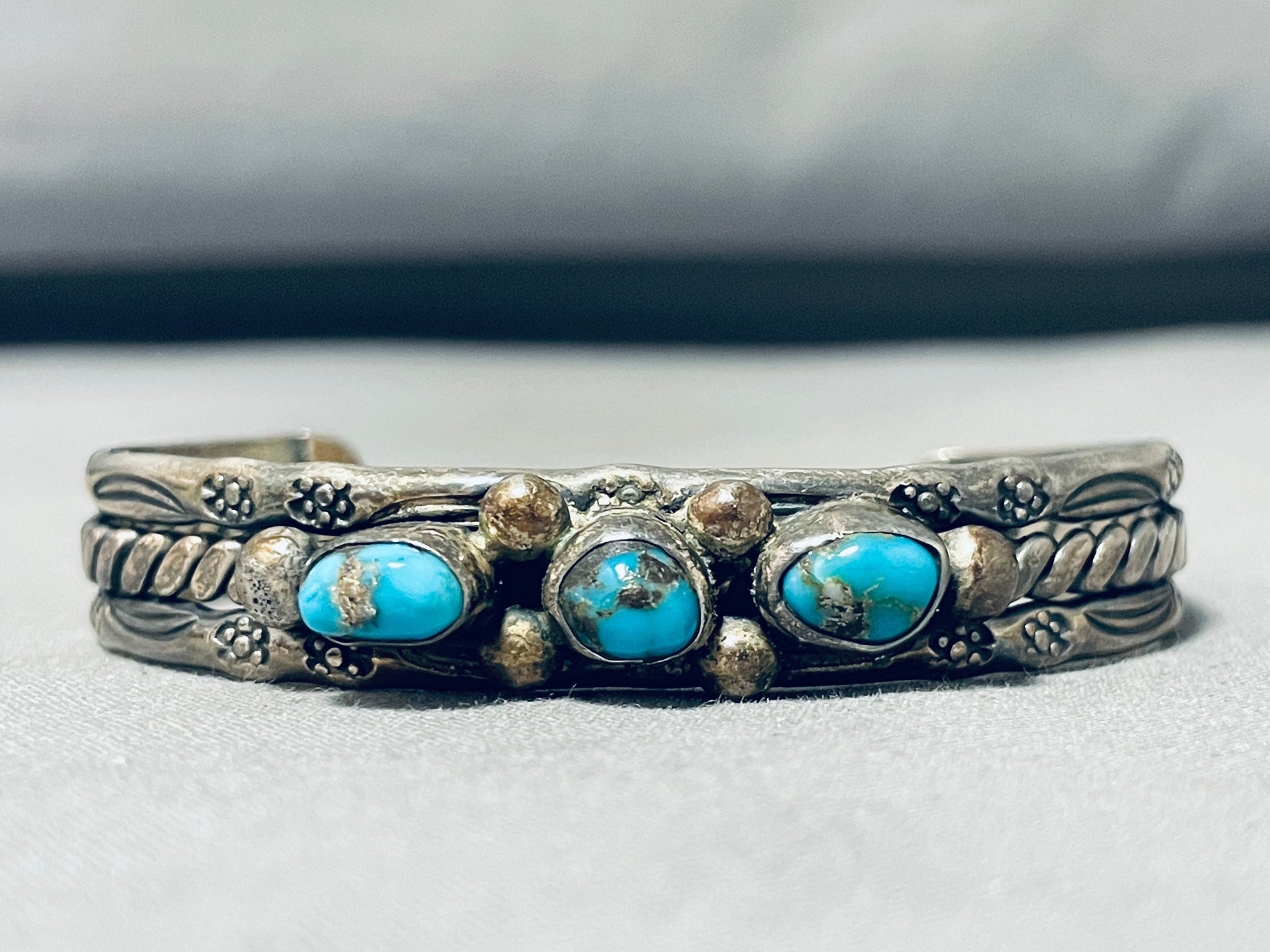 Marvelous Vintage Native American Navajo Bisbee Turquoise Sterling Silver Bracelet