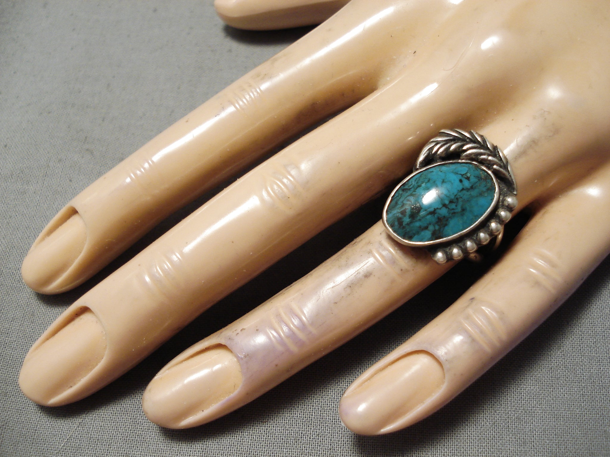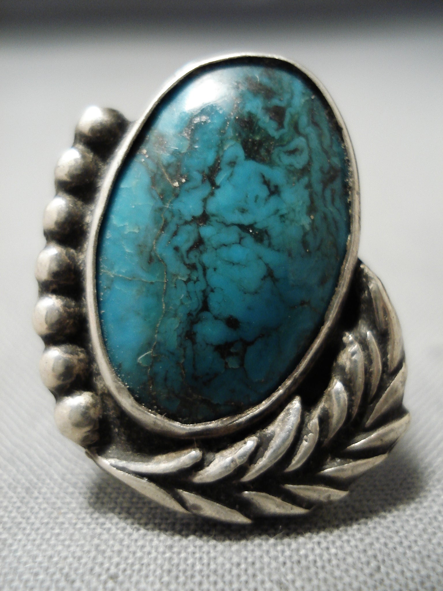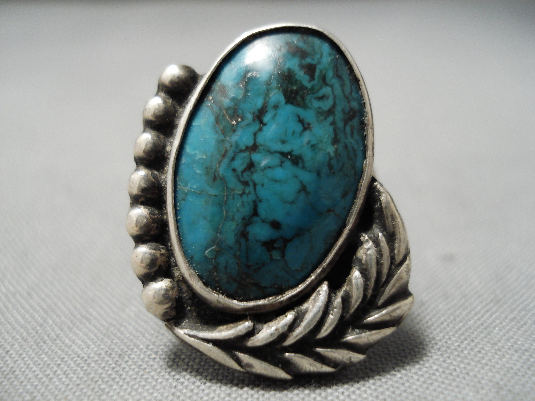 Marvelous Vintage Native American Navajo Blue Diamond Turquoise Sterling Silver Ring Old