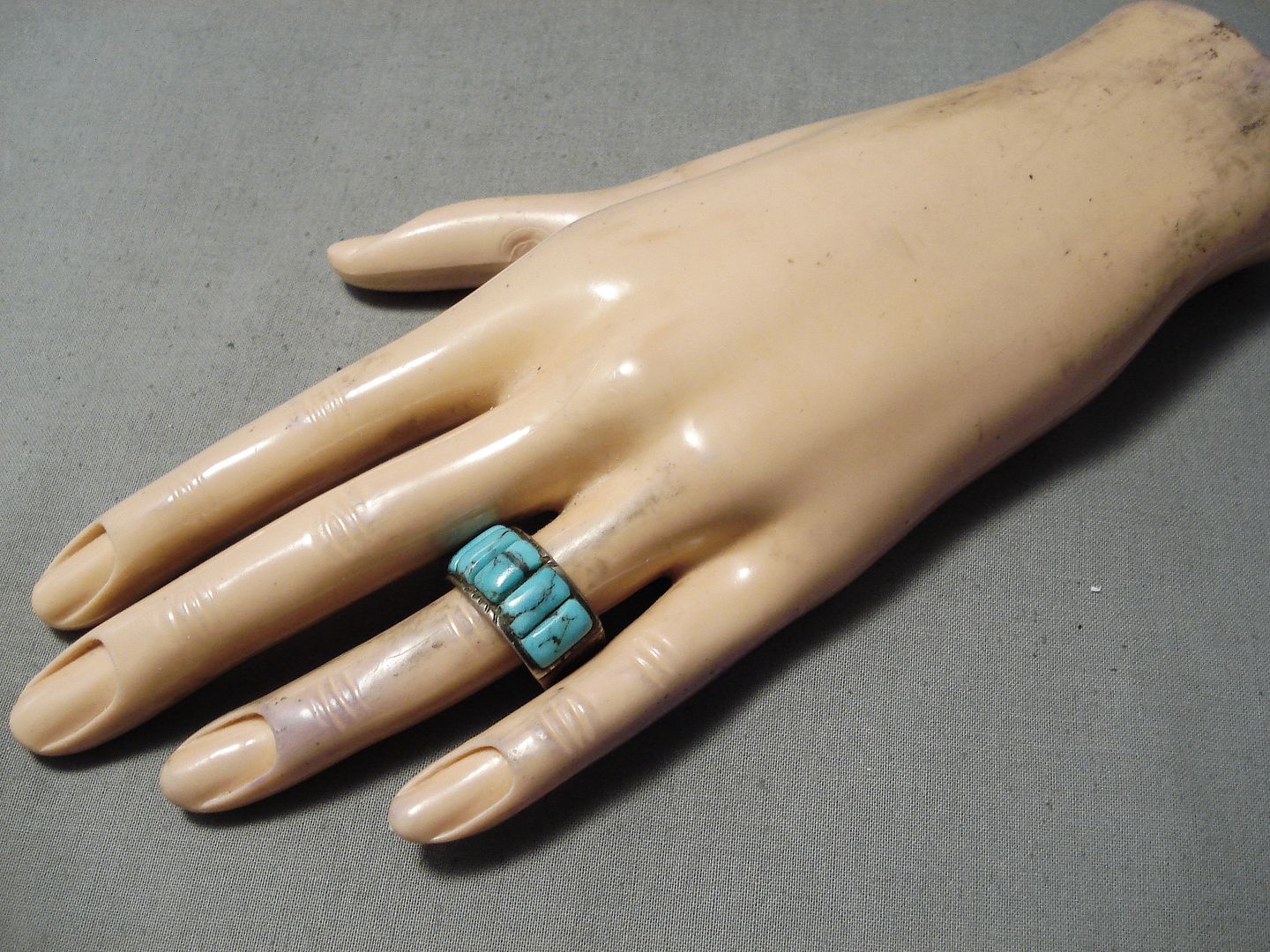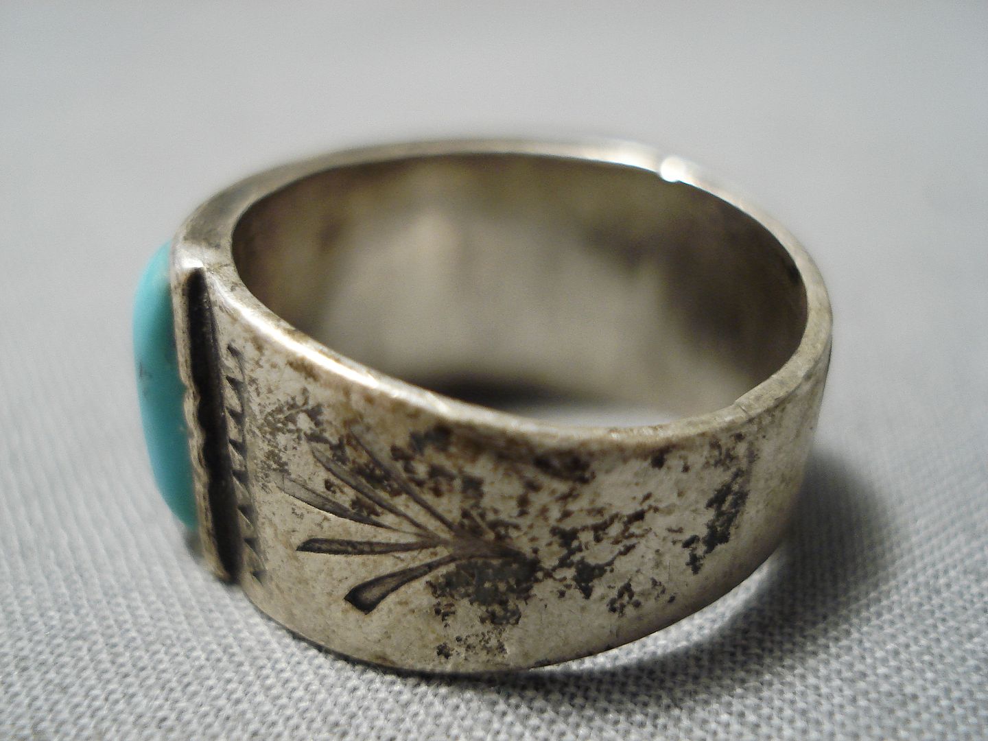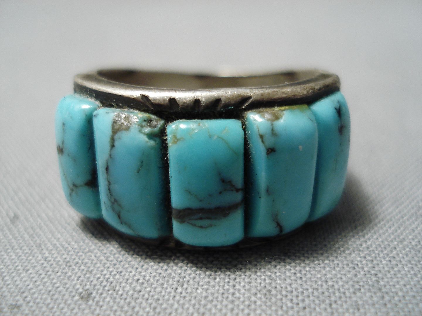 Marvelous Vintage Native American Navajo Blue Diamond Turquoise Sterling Silver Ring Old