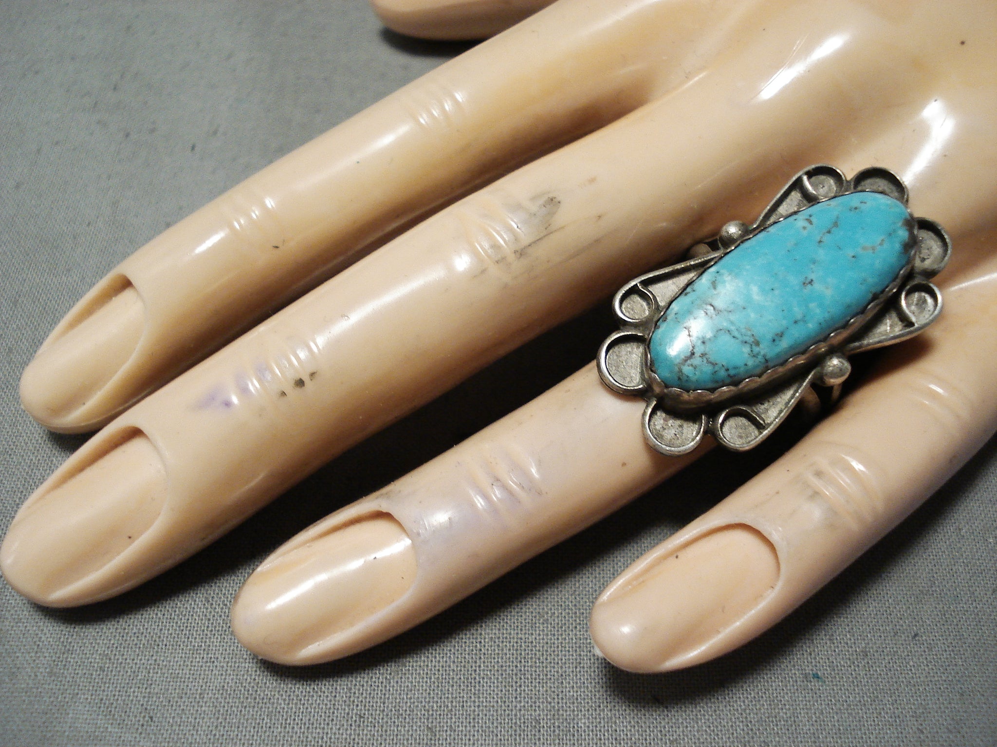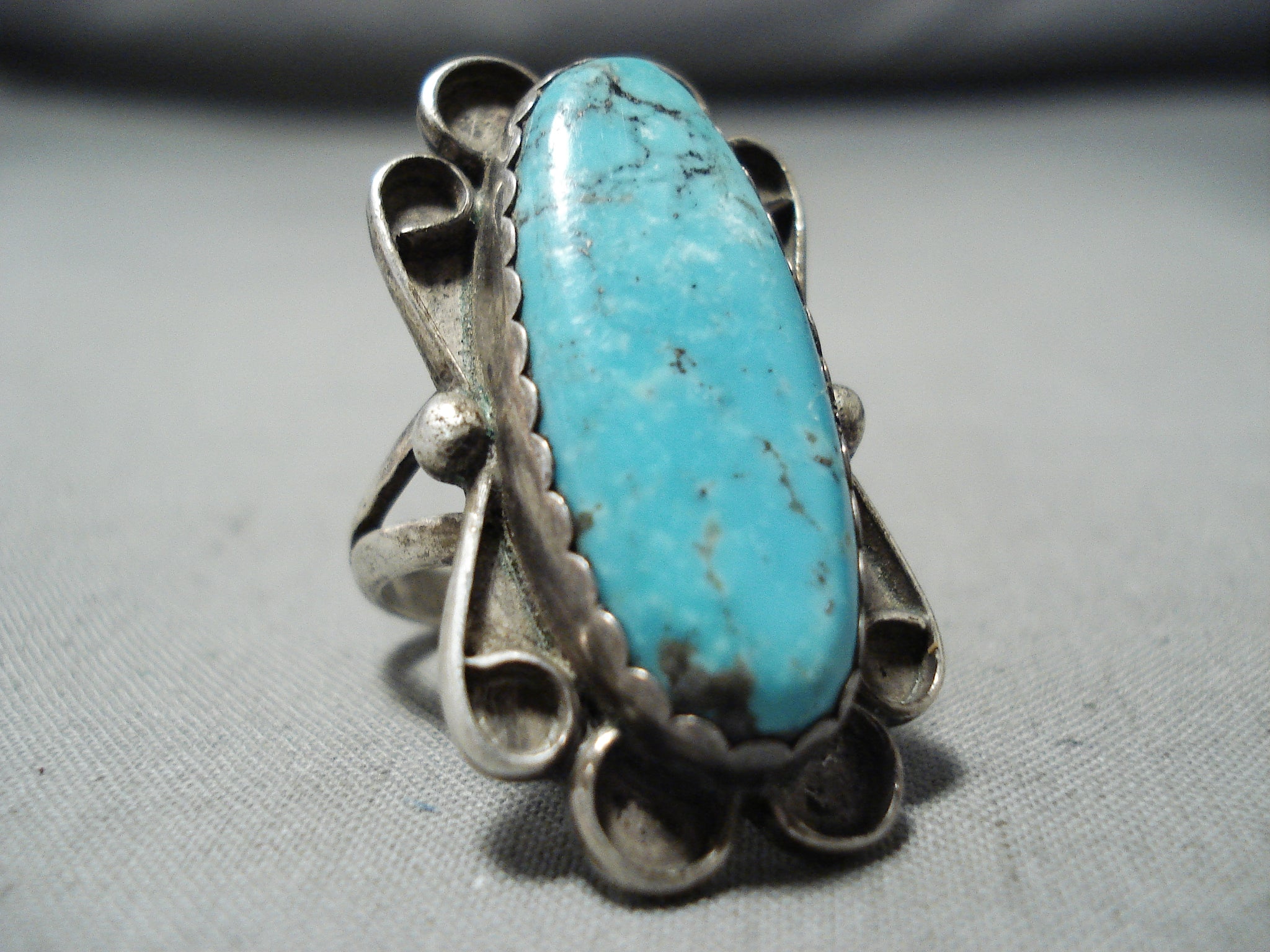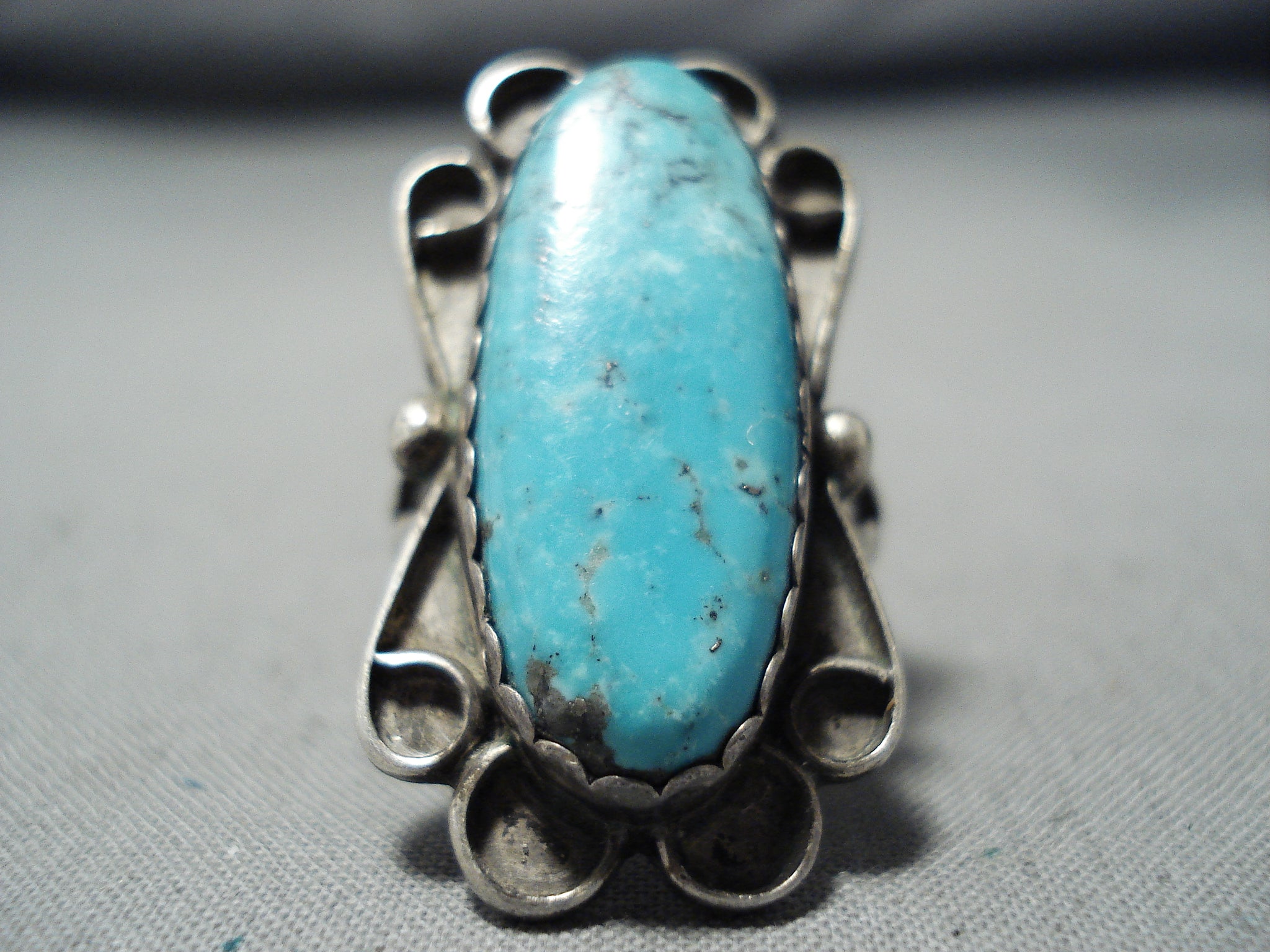 Marvelous Vintage Native American Navajo Blue Diamond Turquoise Sterling Silver Ring Old