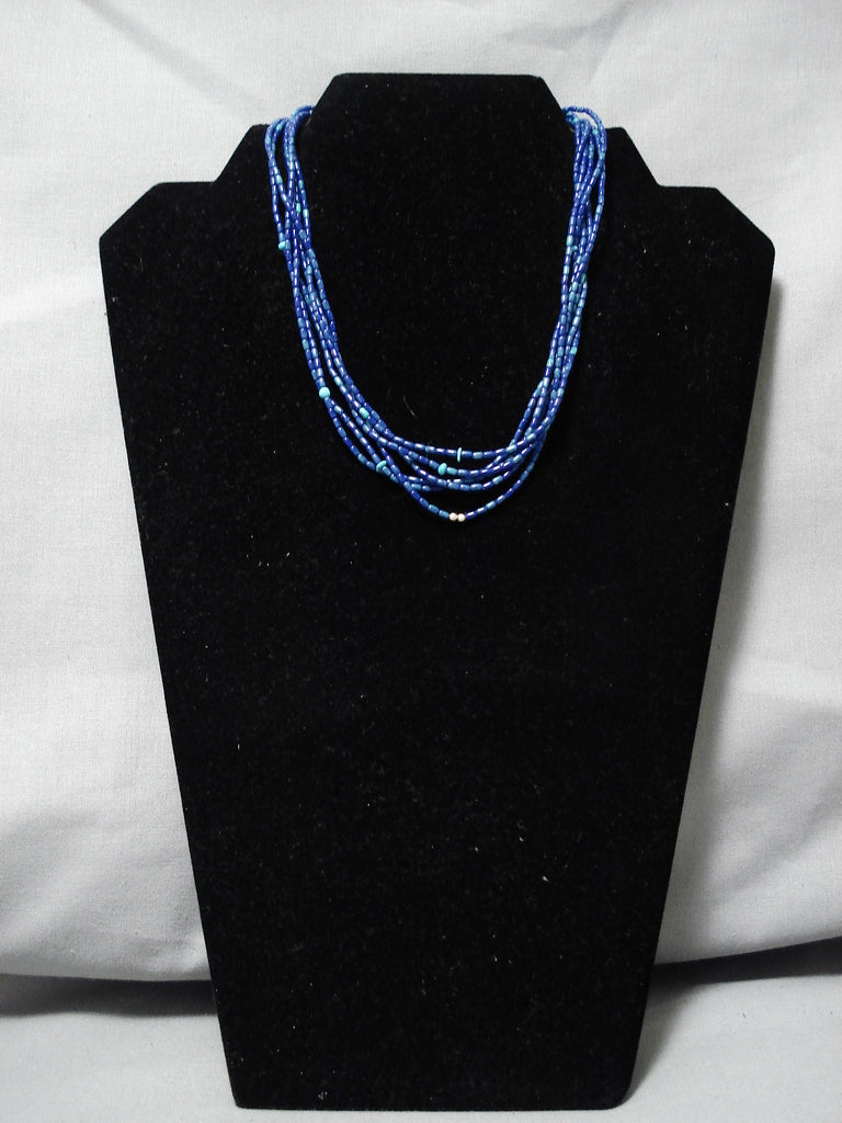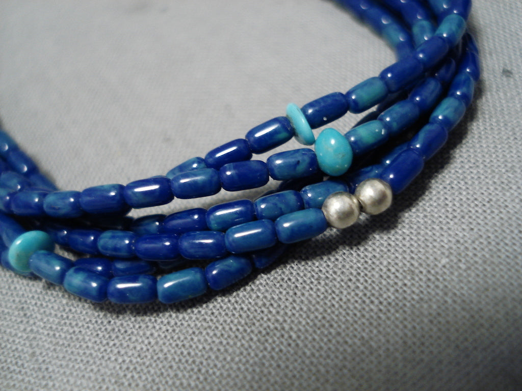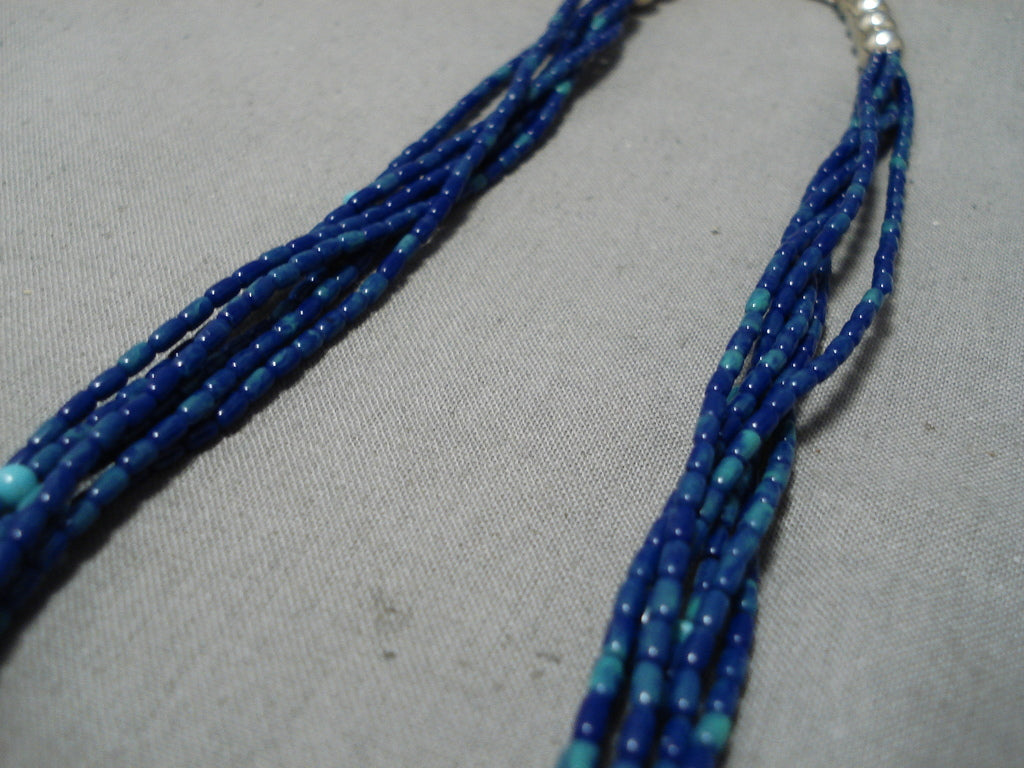 Marvelous Vintage Native American Navajo Choker Lapis Turquoise Sterling Silver Necklace Old