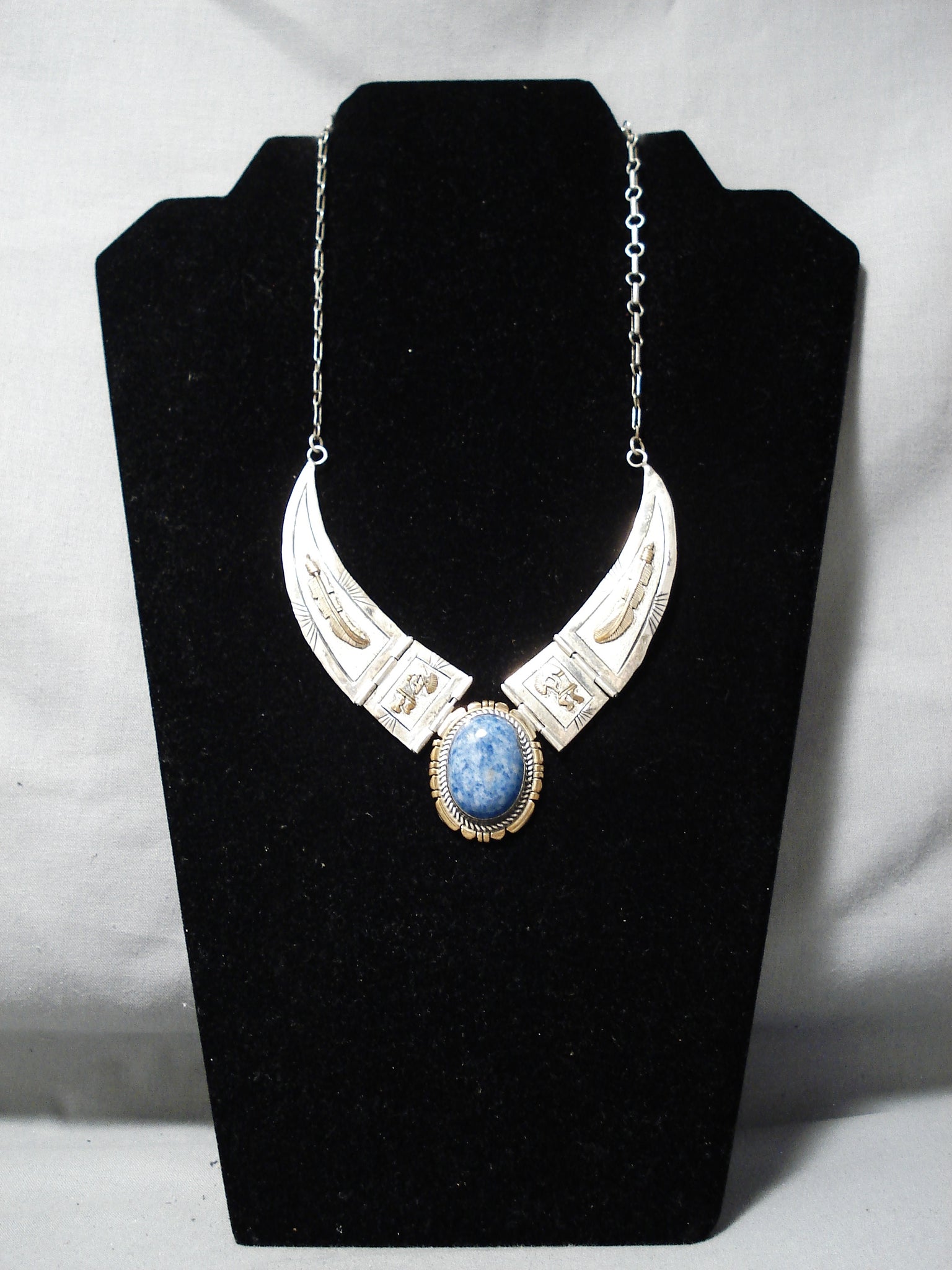 Marvelous Vintage Native American Navajo Denim Lapis Sterling Silver Necklace