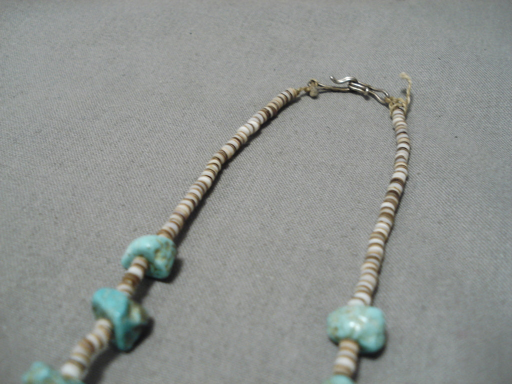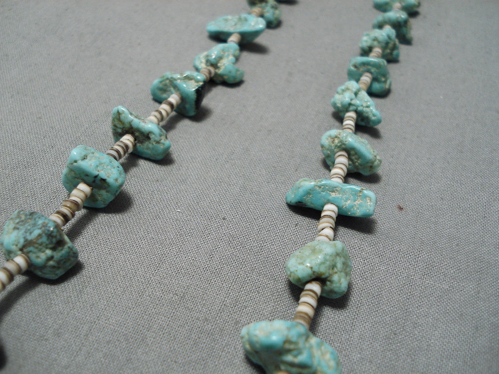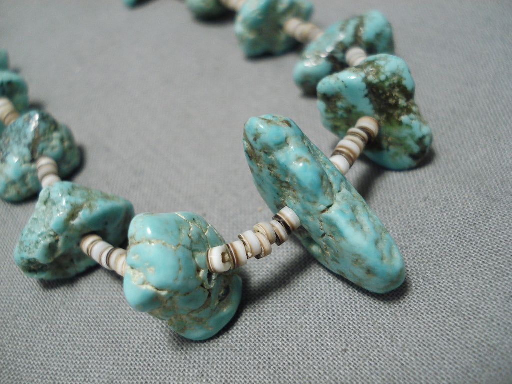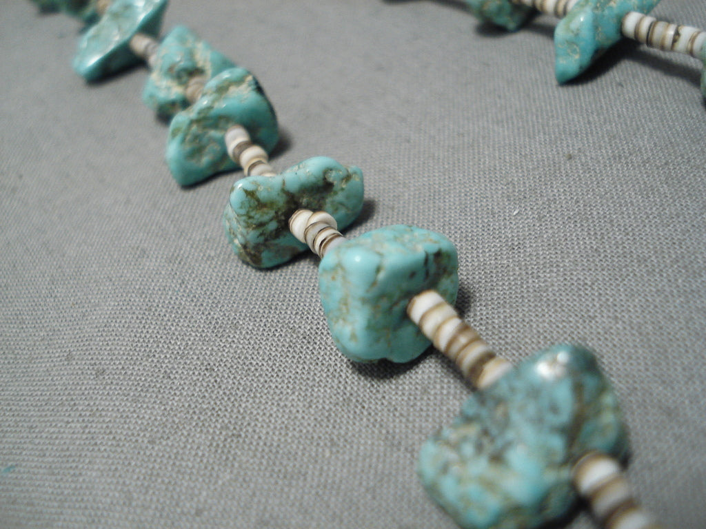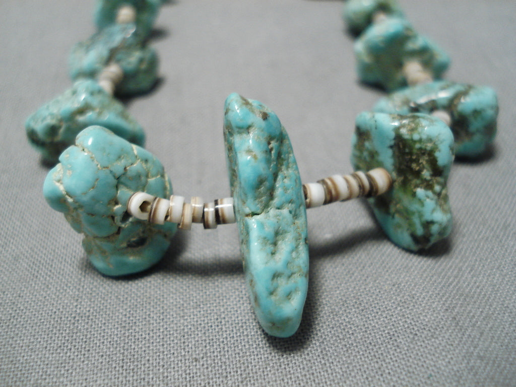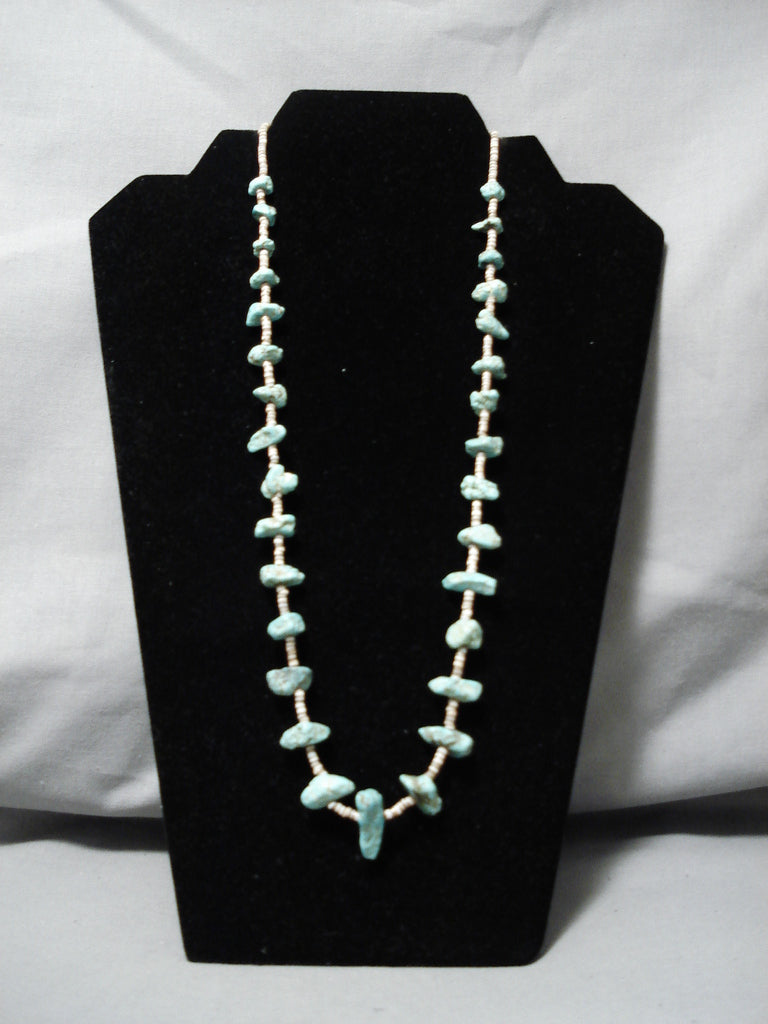 Marvelous Vintage Native American Navajo Graduating Turquoise Nugget Sterling Silver Necklace