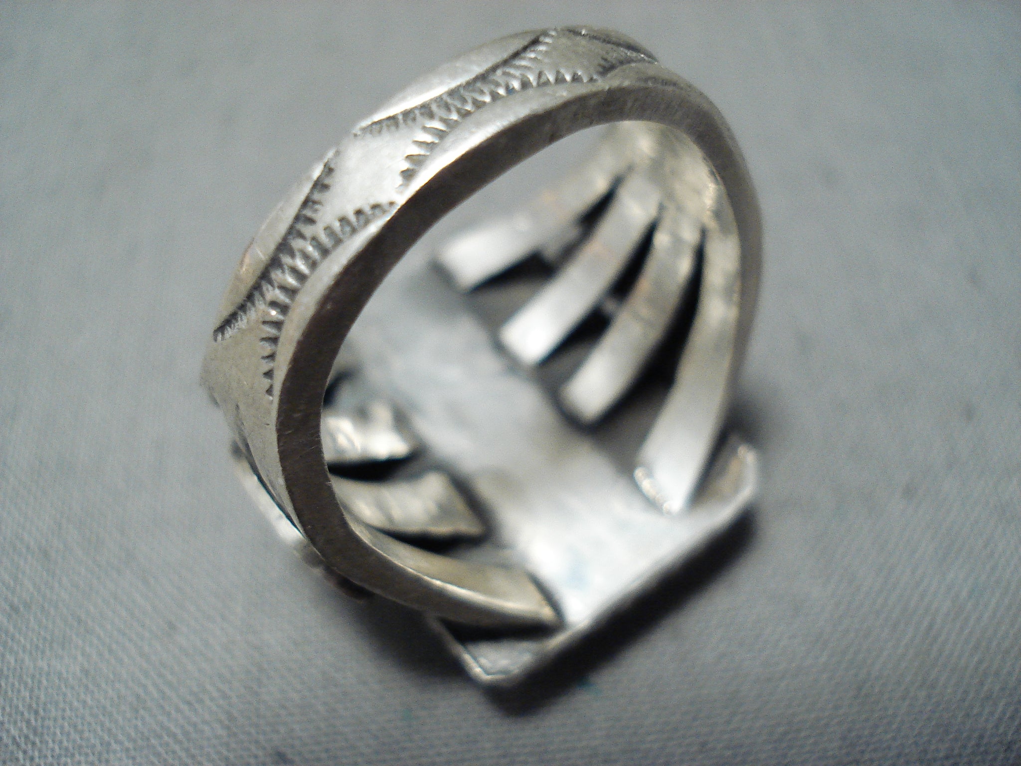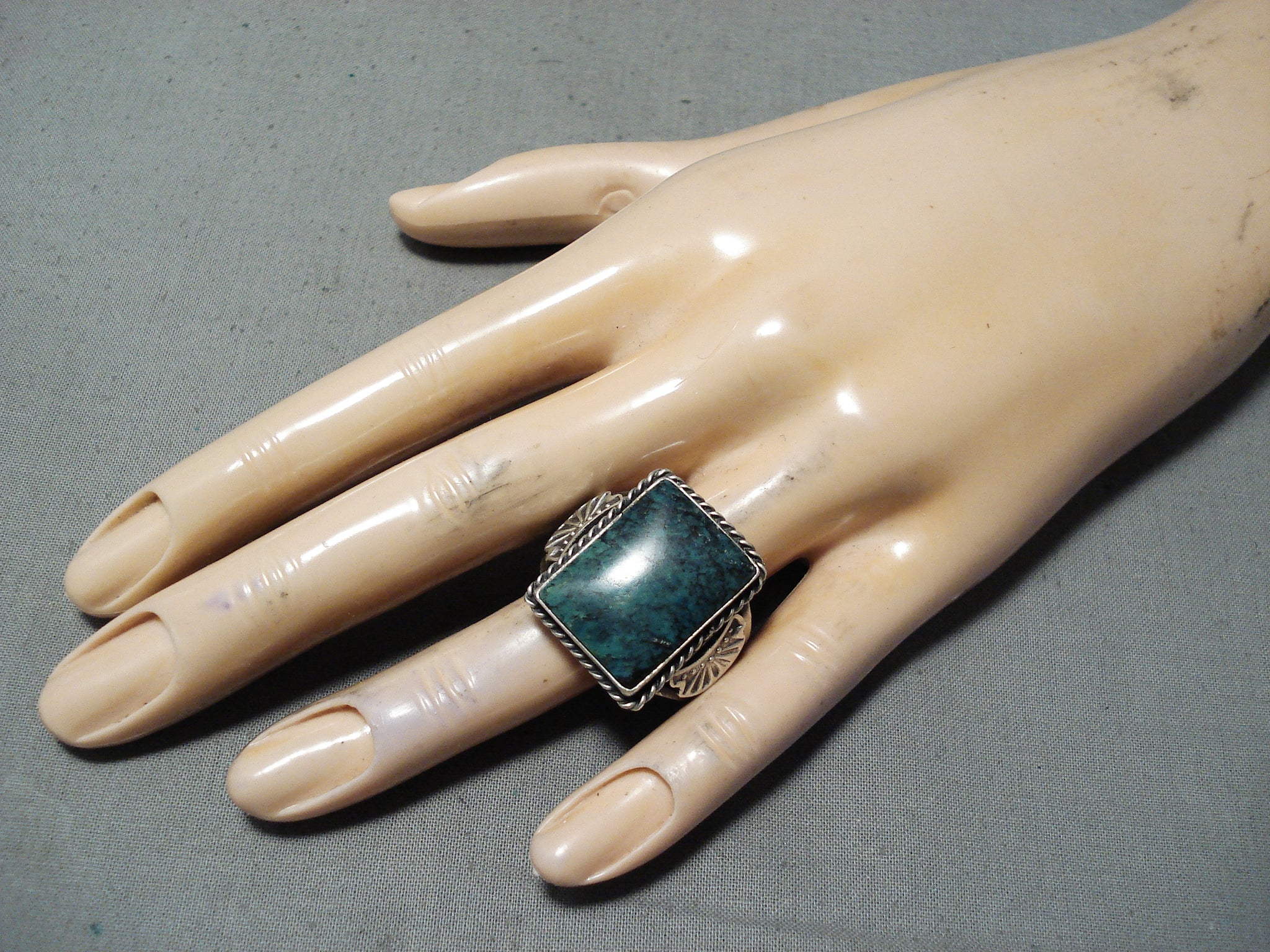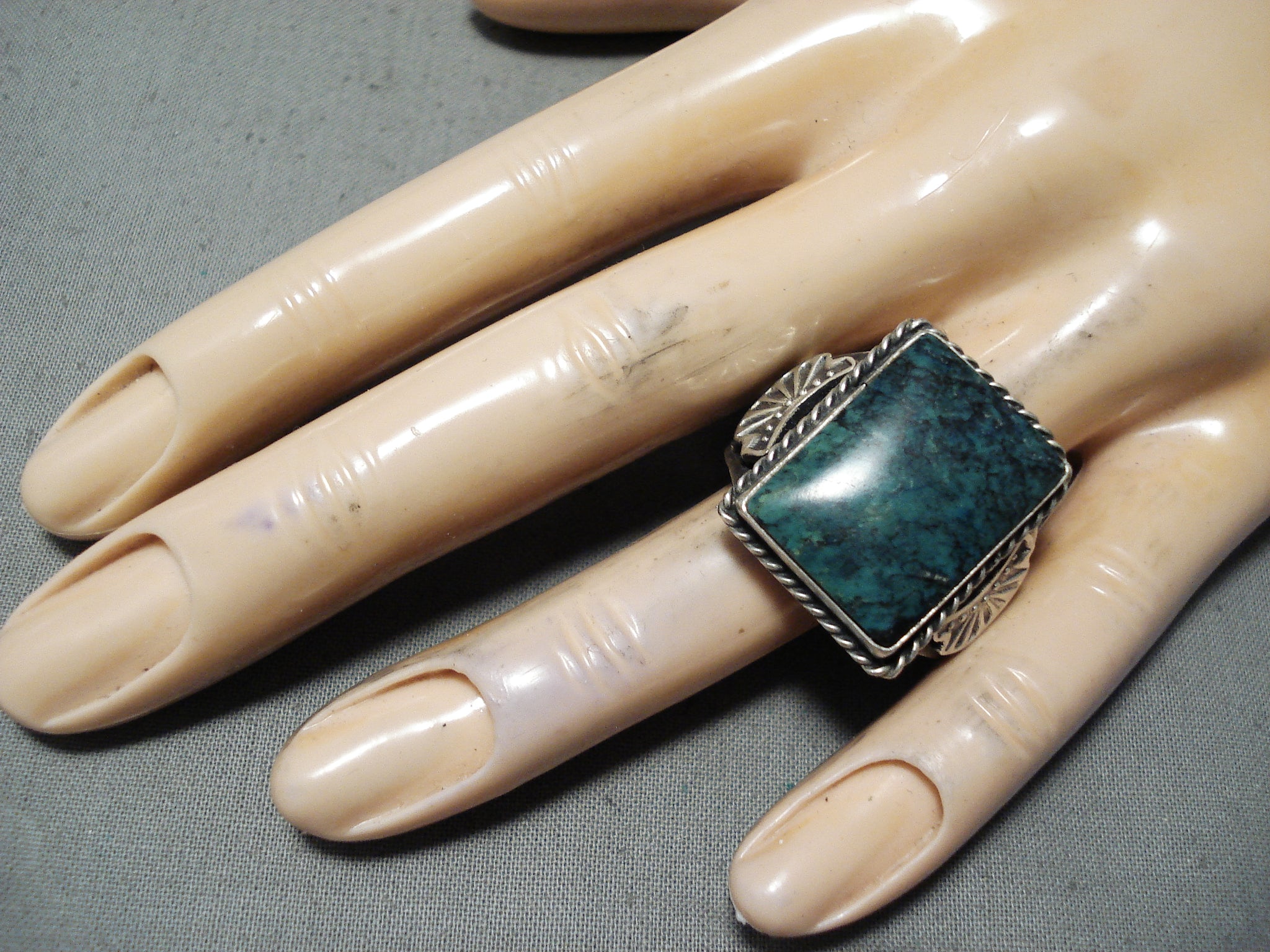 Marvelous Vintage Native American Navajo Green Spiderweb Sterling Silver Ring