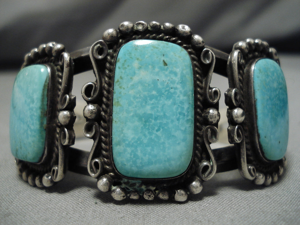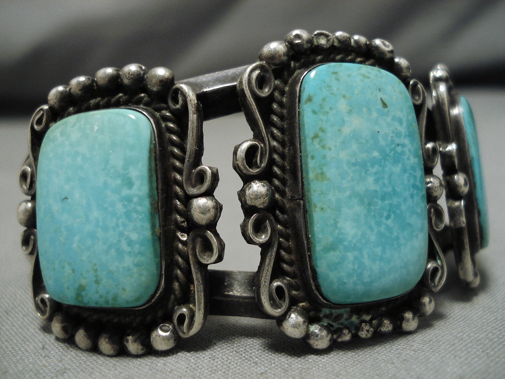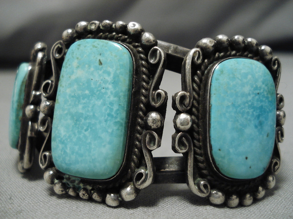 Marvelous Vintage Native American Navajo Carico Lake Turquoise Sterling Silver Bracelet