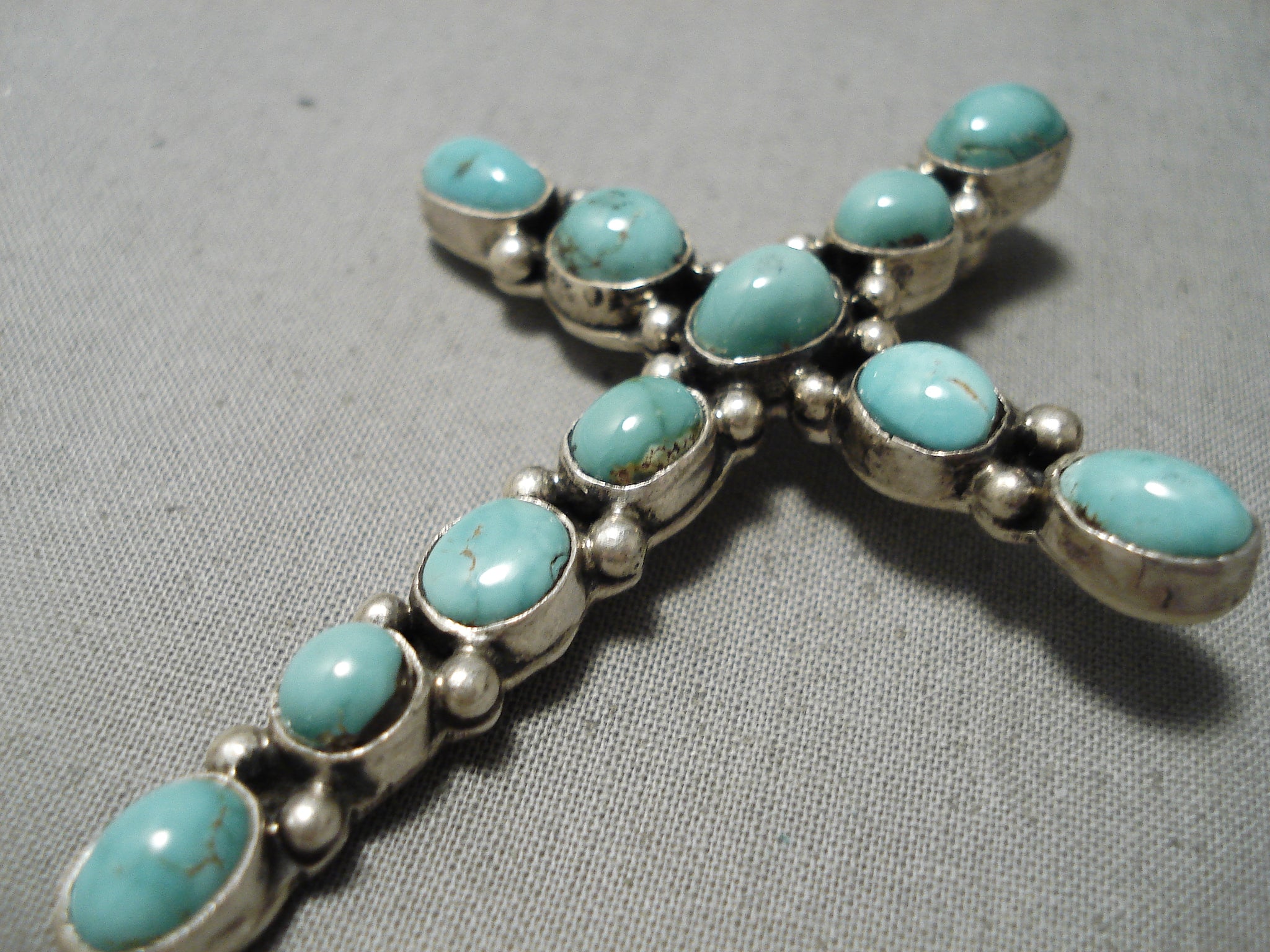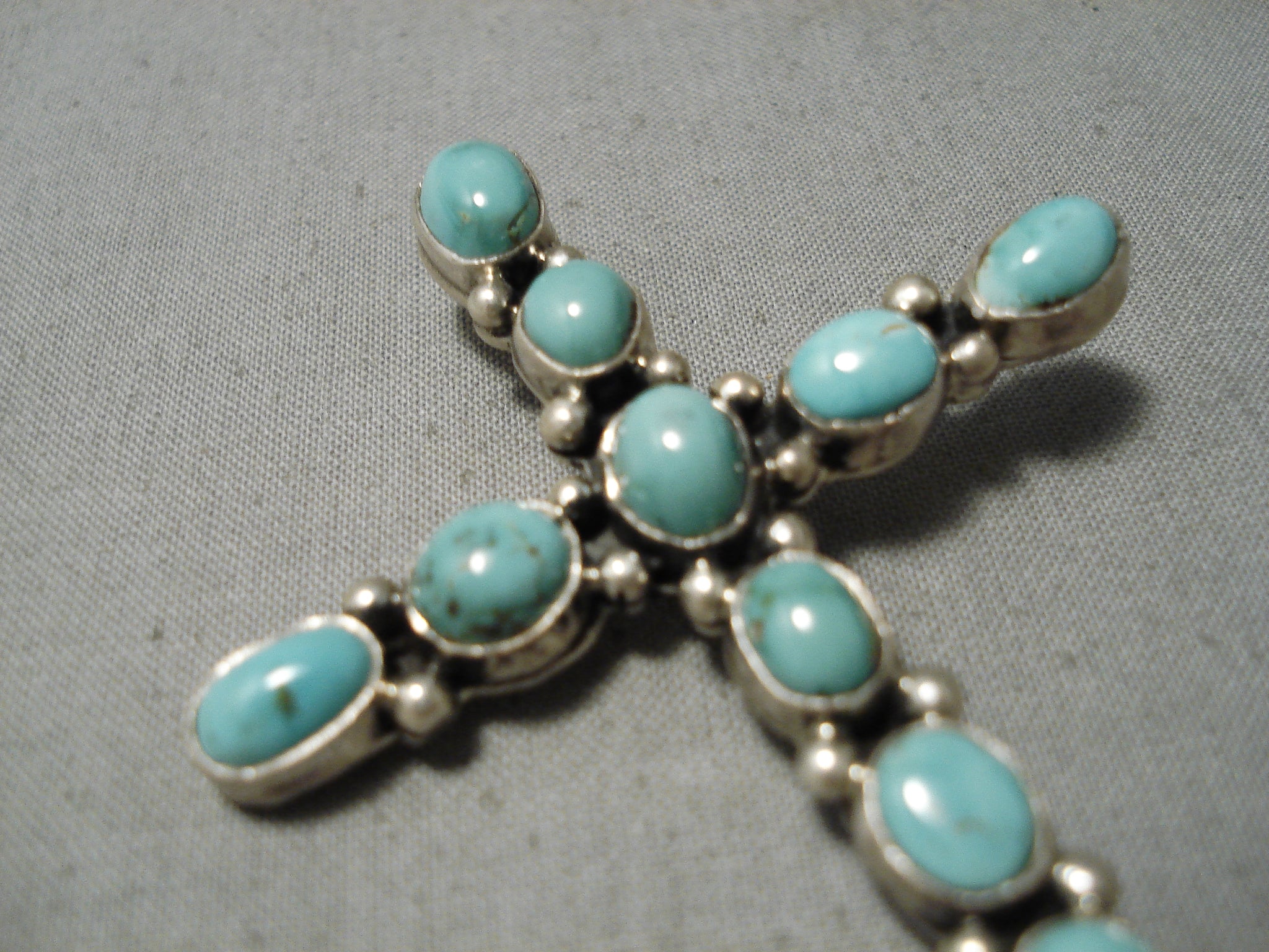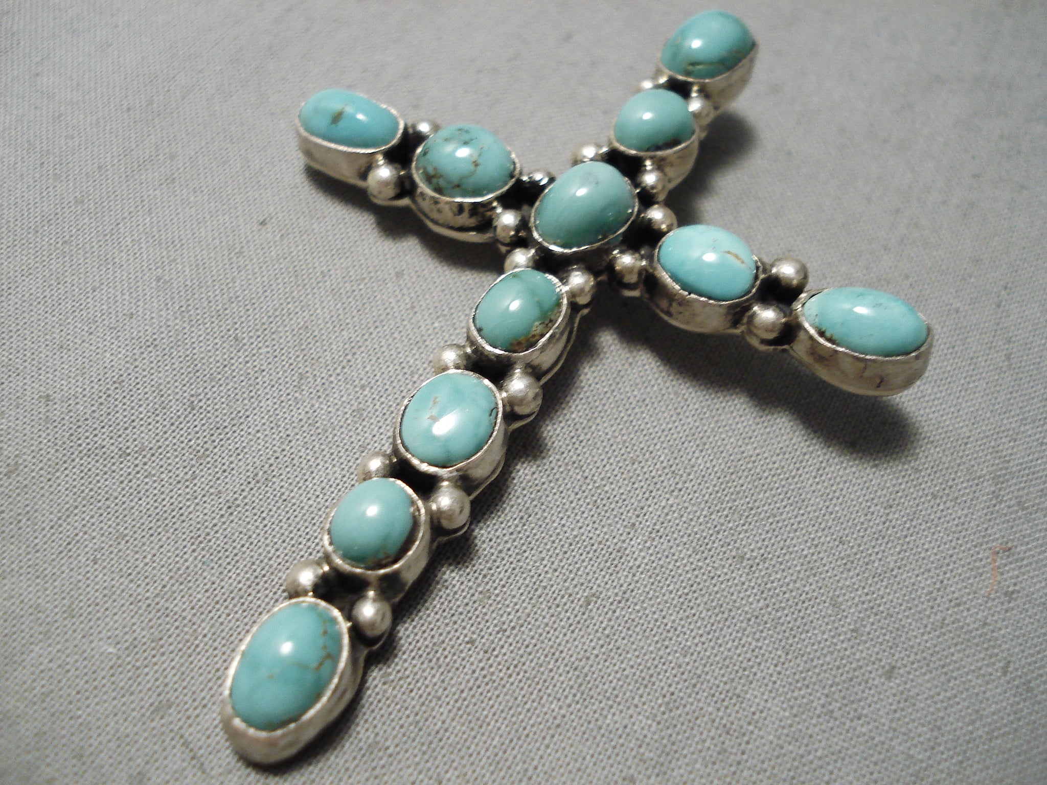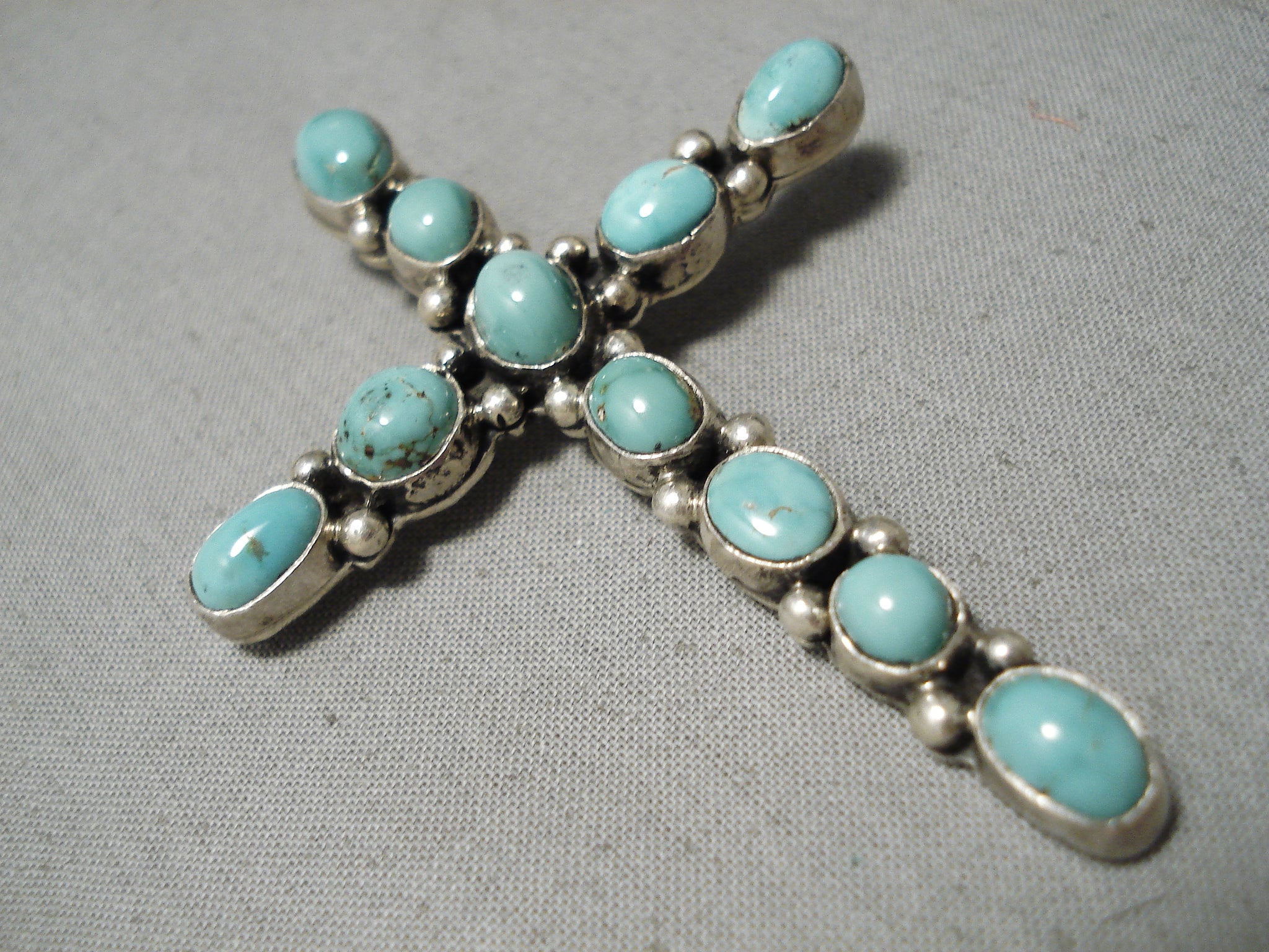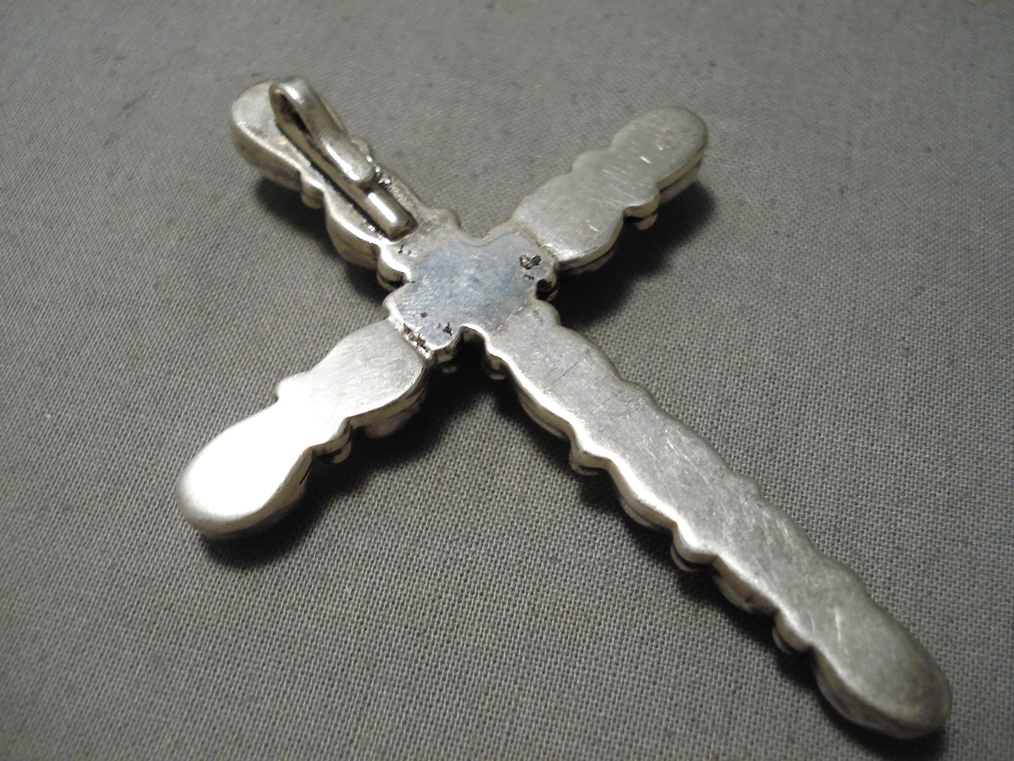 Marvelous Vintage Native American Navajo Green Turquoise Sterling Silver Cross Pendant