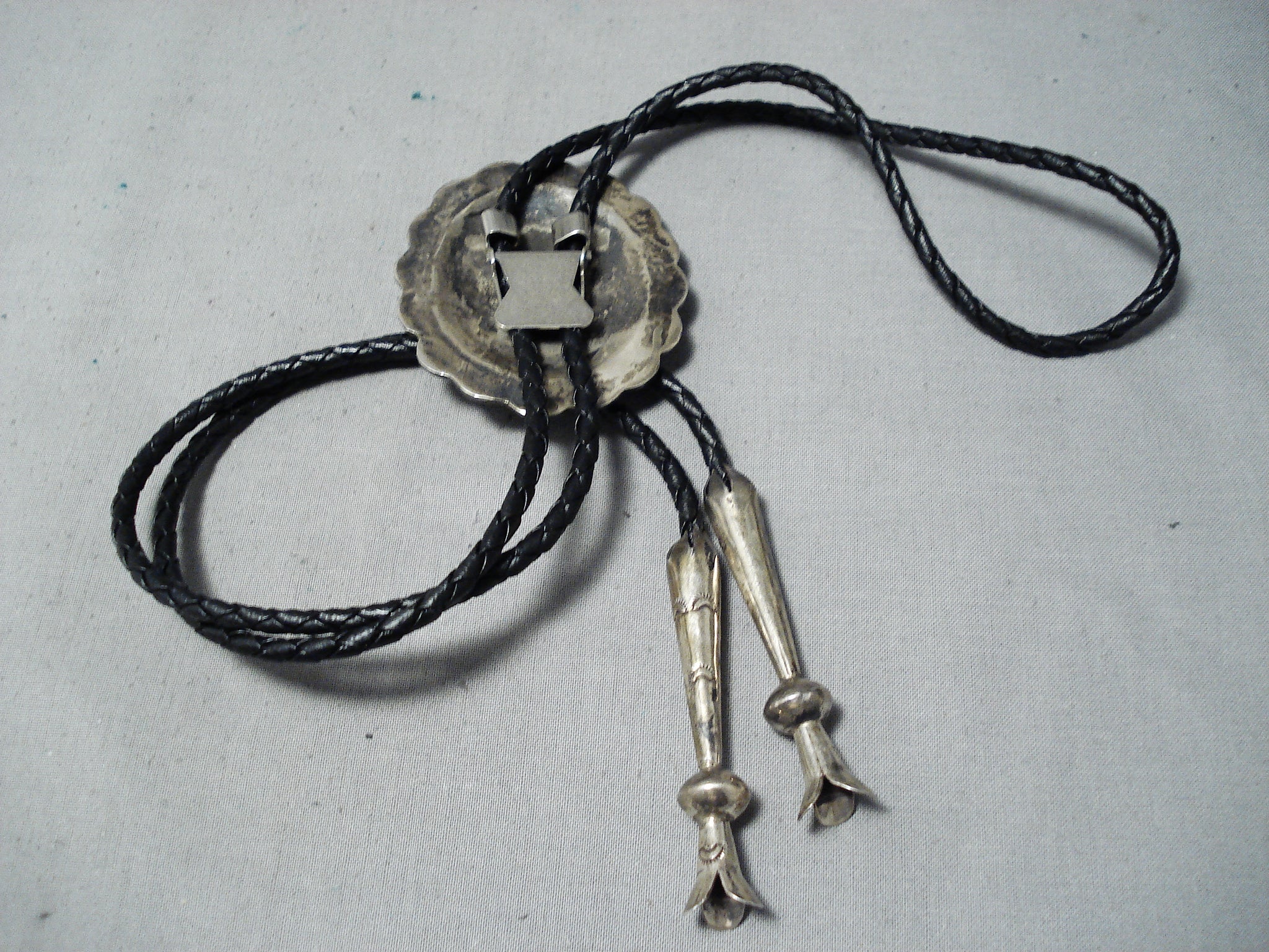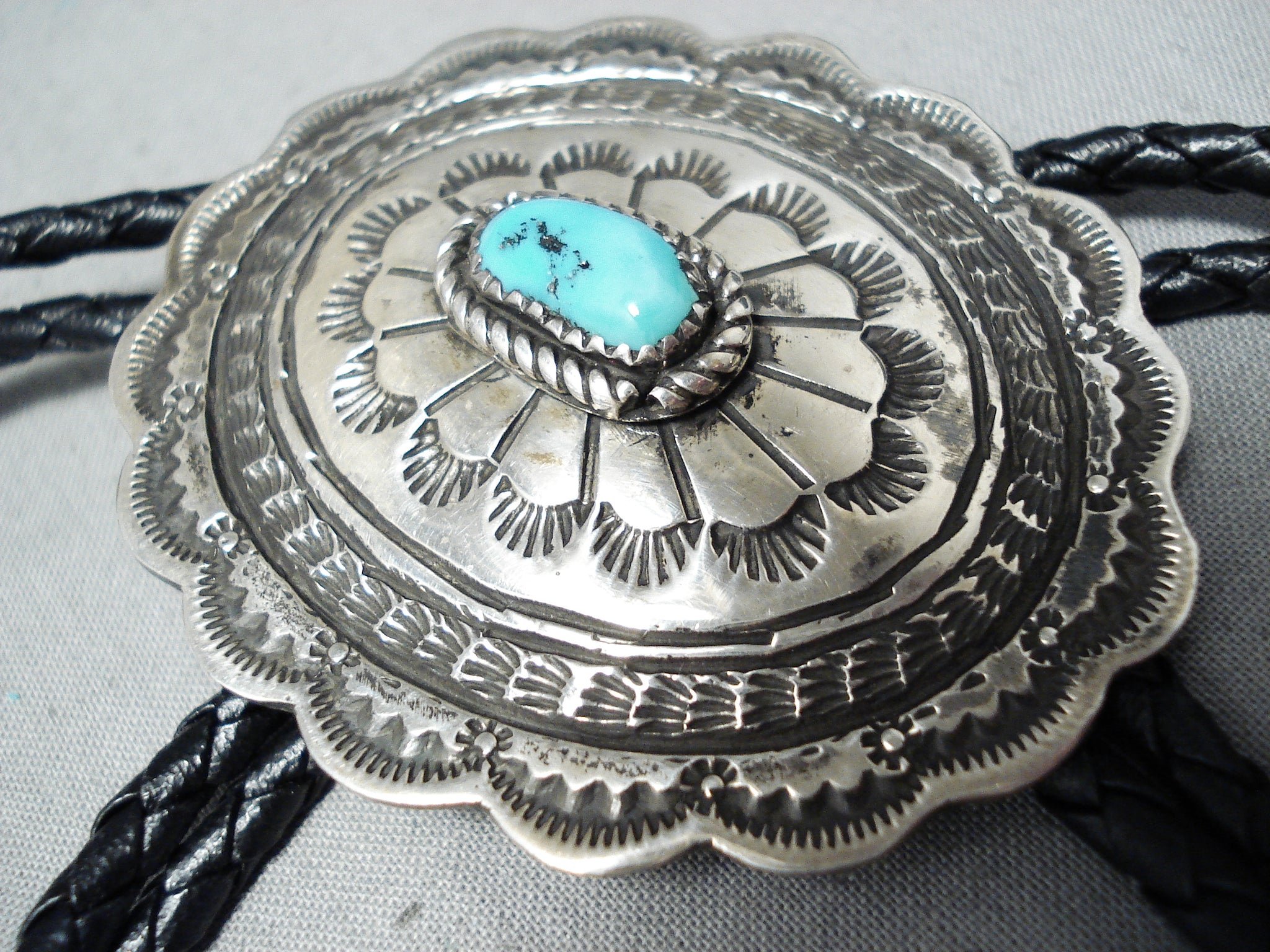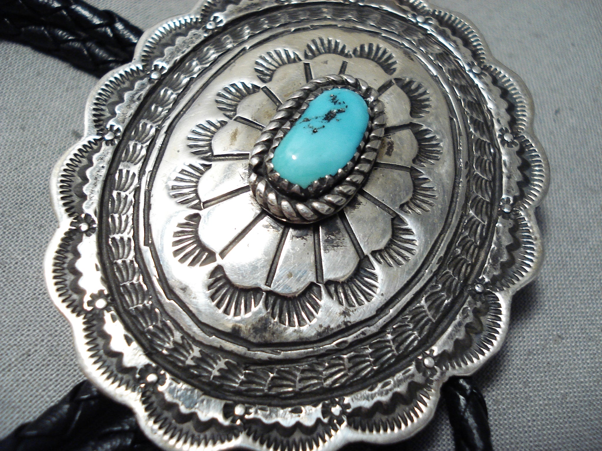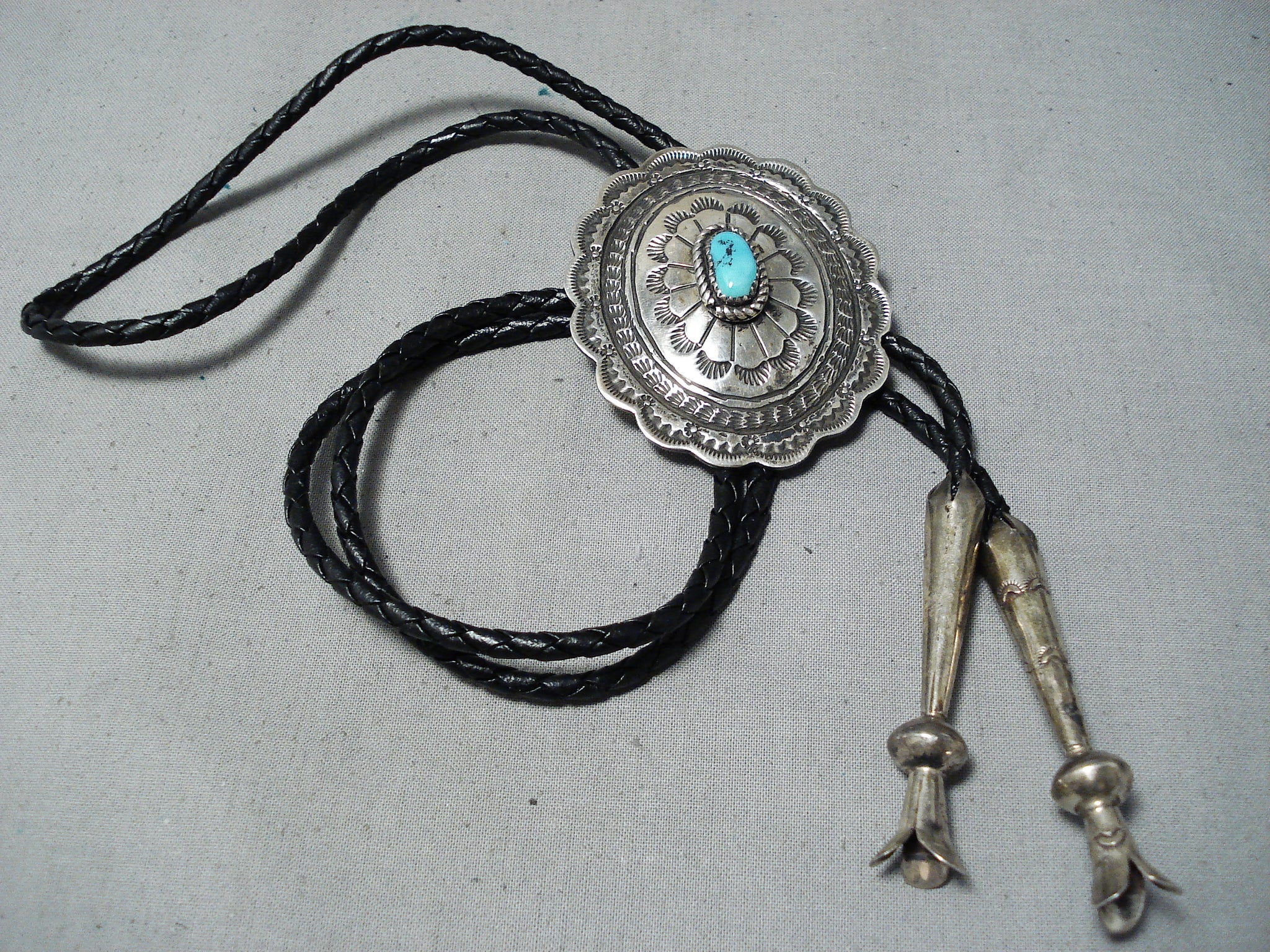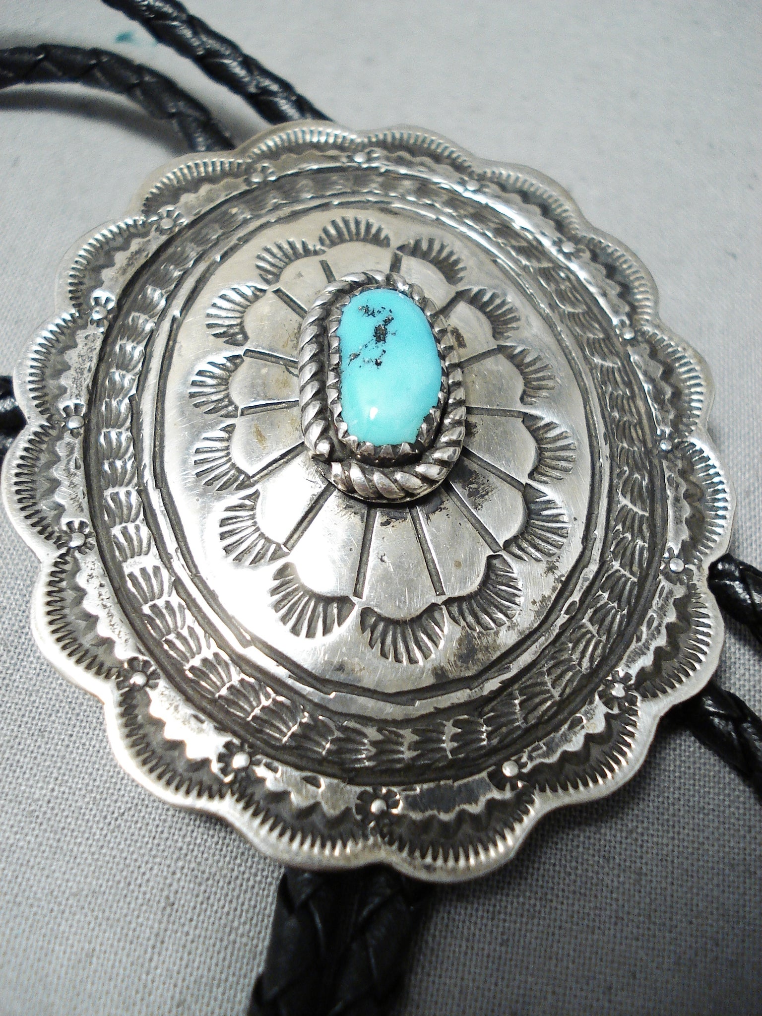 Marvelous Vintage Native American Navajo Sleeping Beauty Turquoise Sterling Silver Bolo Tie Old