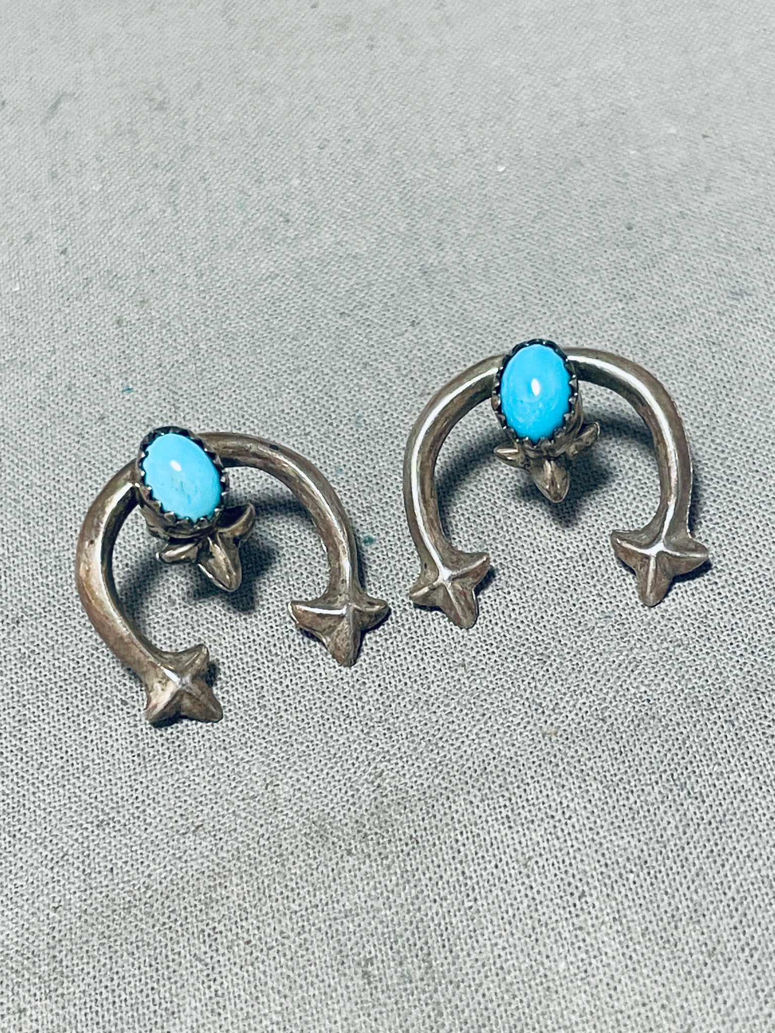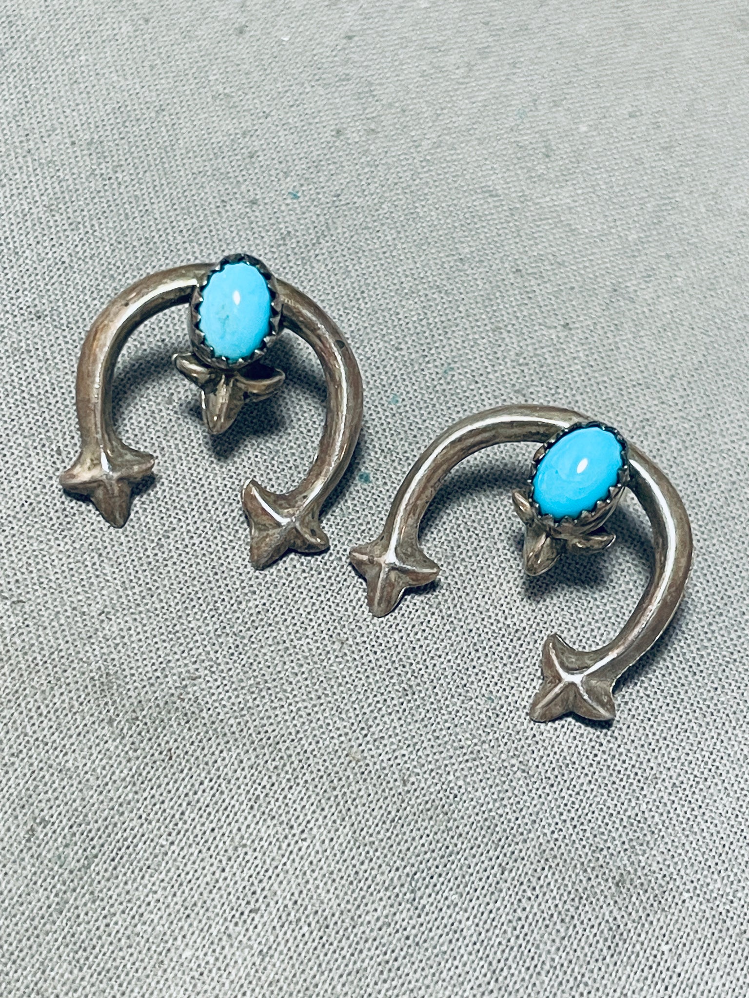 Marvelous Vintage Native American Navajo Sleeping Beauty Turquoise Sterling Silver Earrings