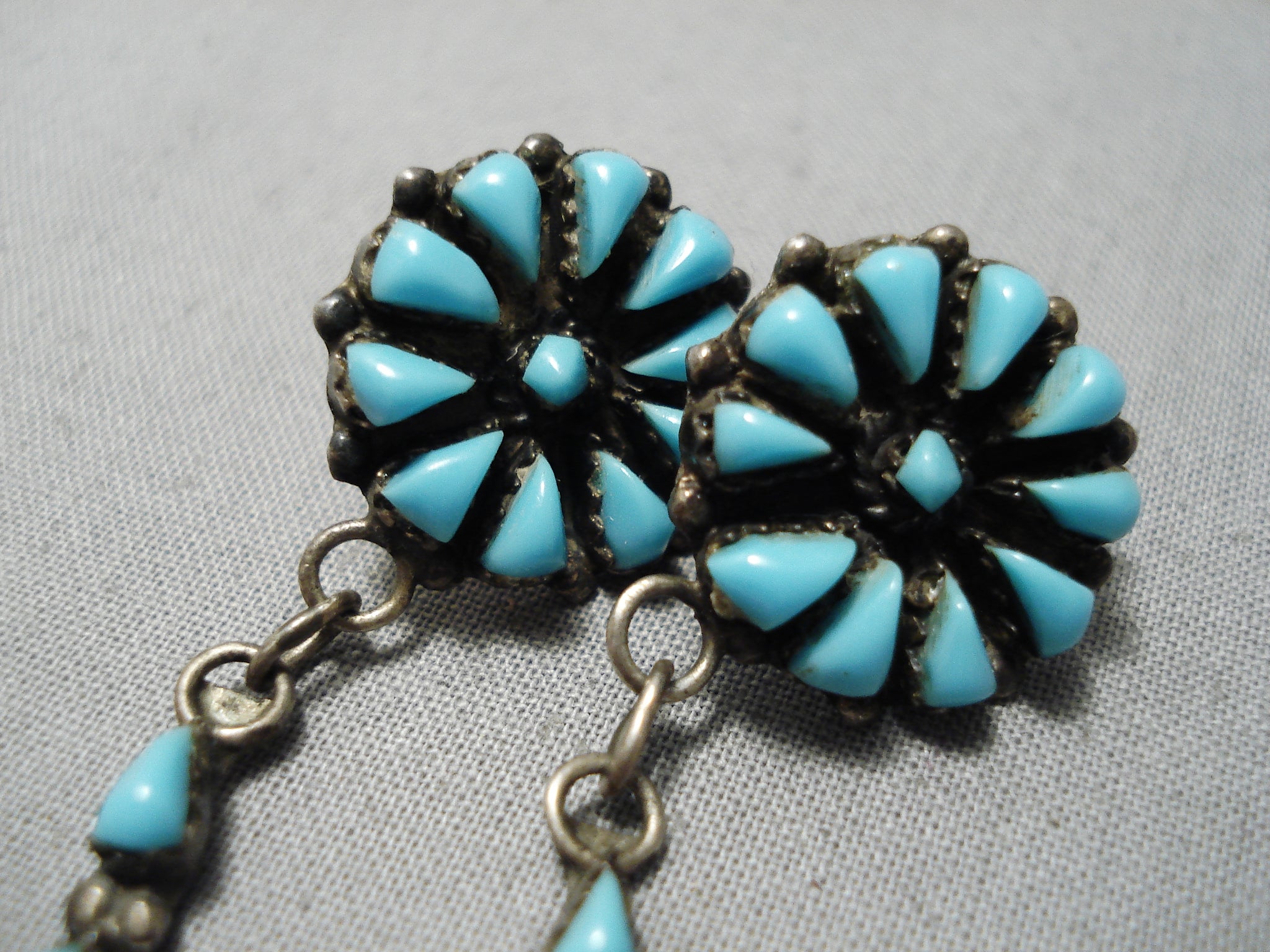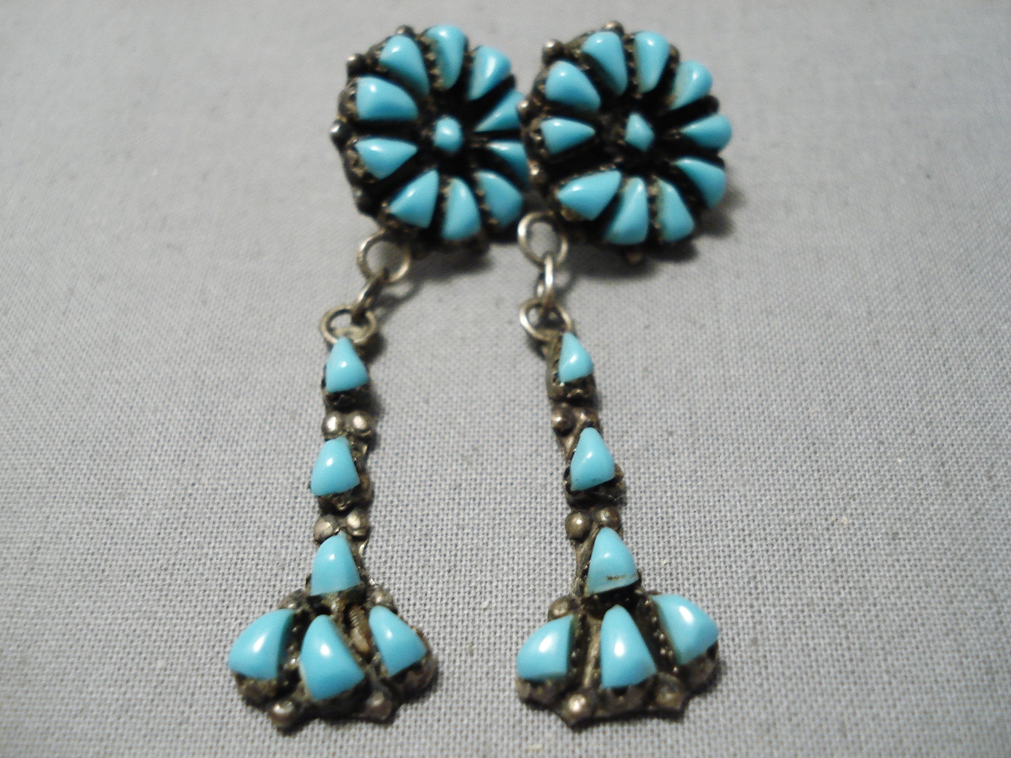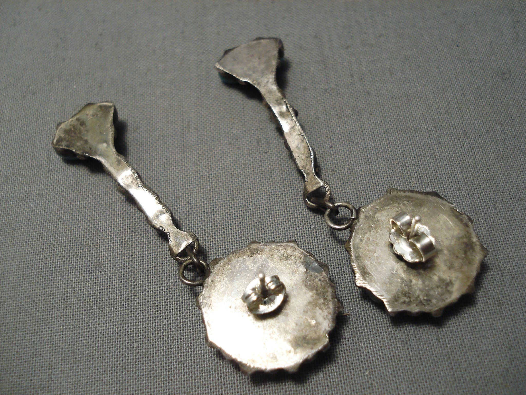 Marvelous Vintage Native American Navajo Teardrop Turquoise Sterling Silver Earrings Old