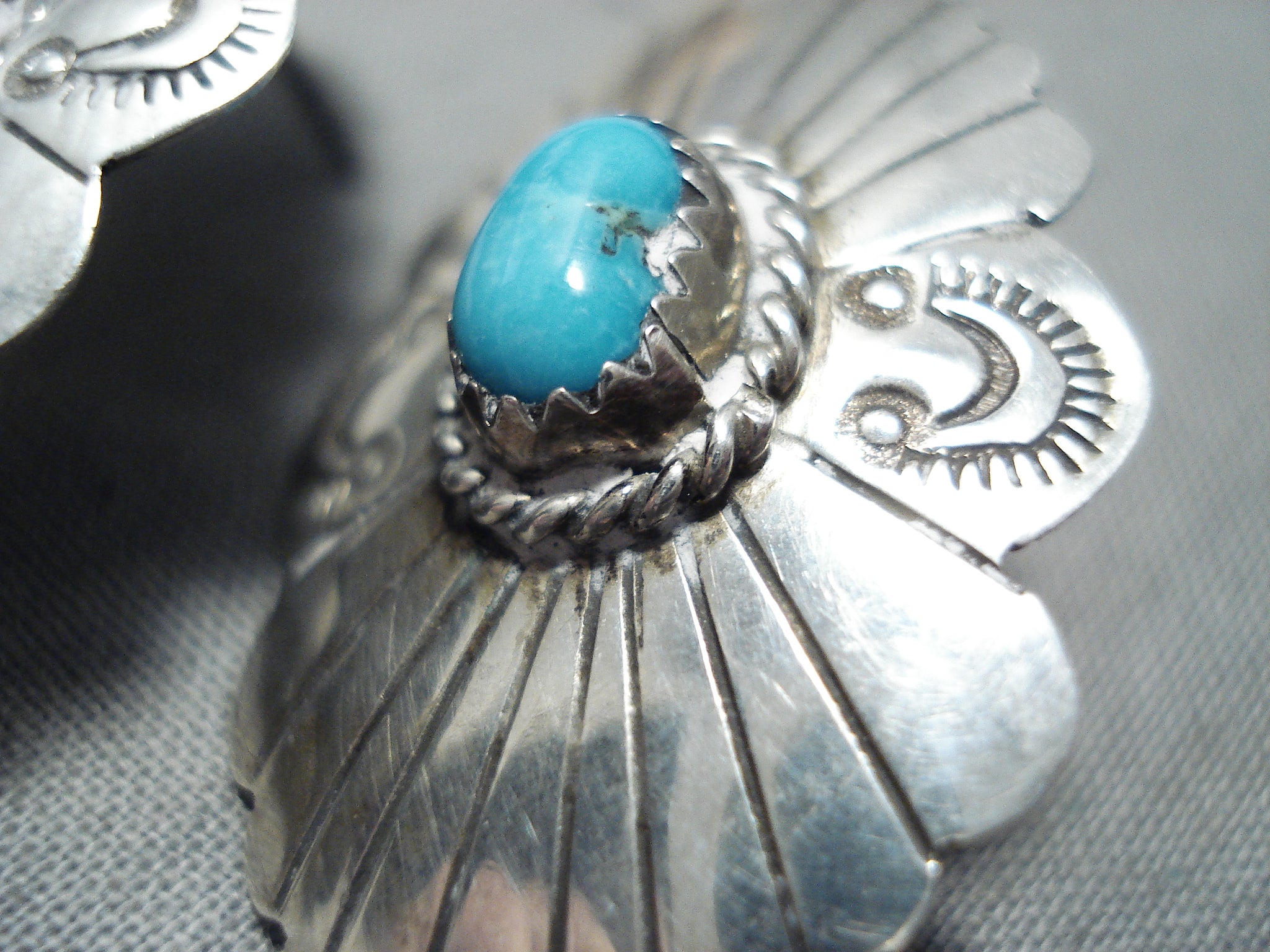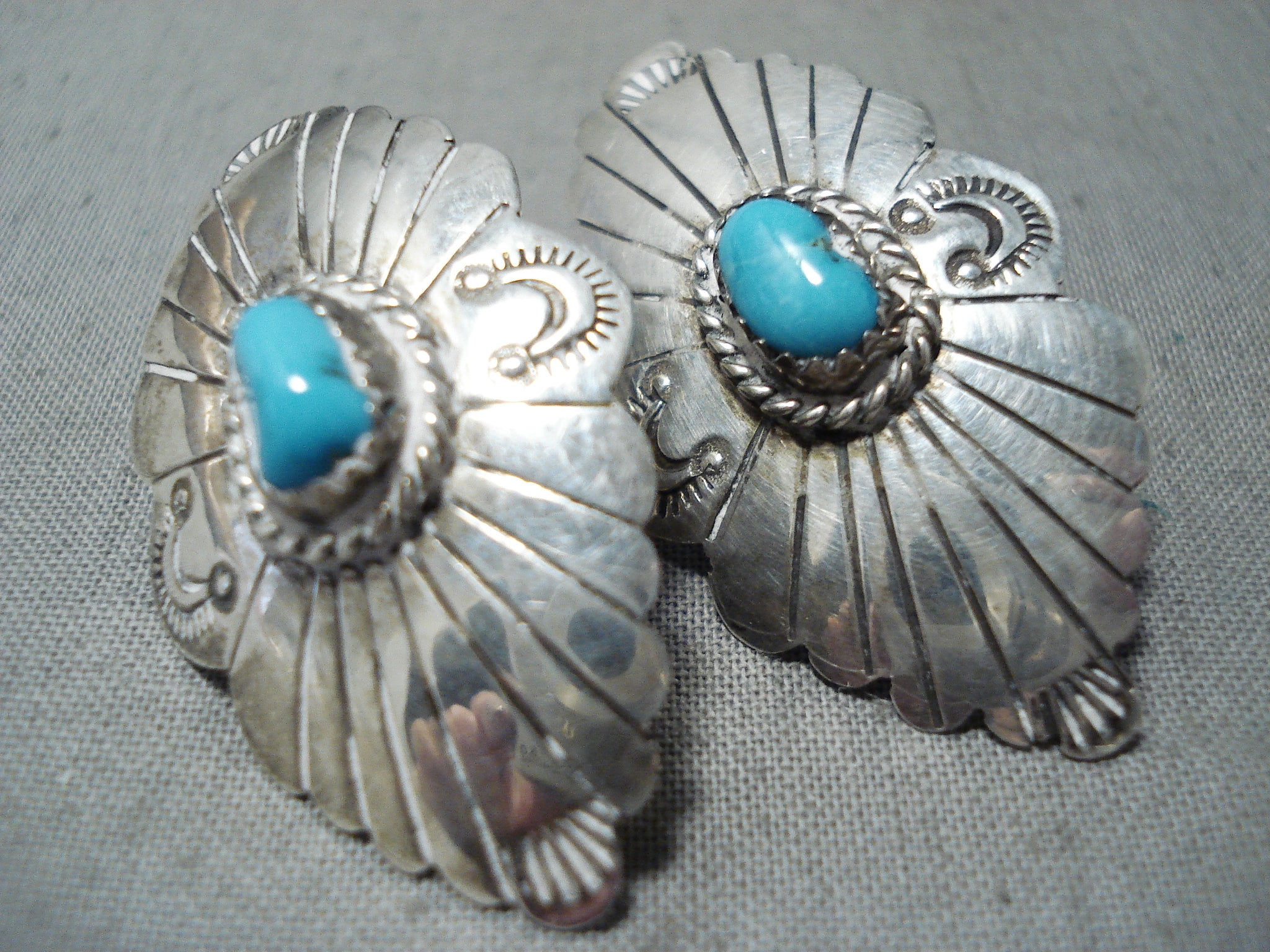 Marvelous Vintage Native American Navajo Turquoise Sterling Silver Earrings