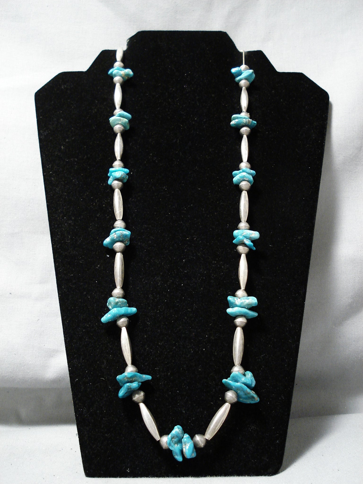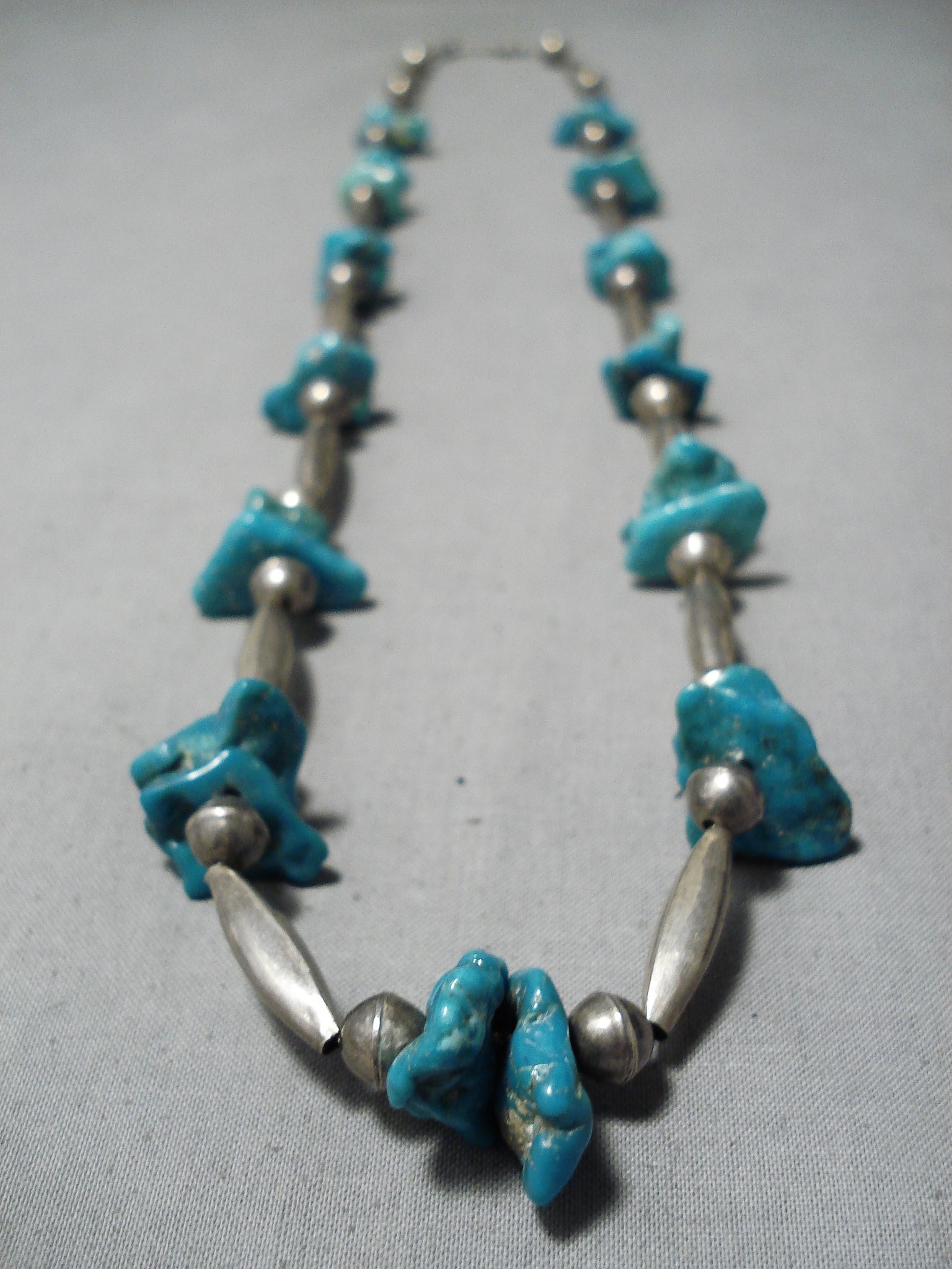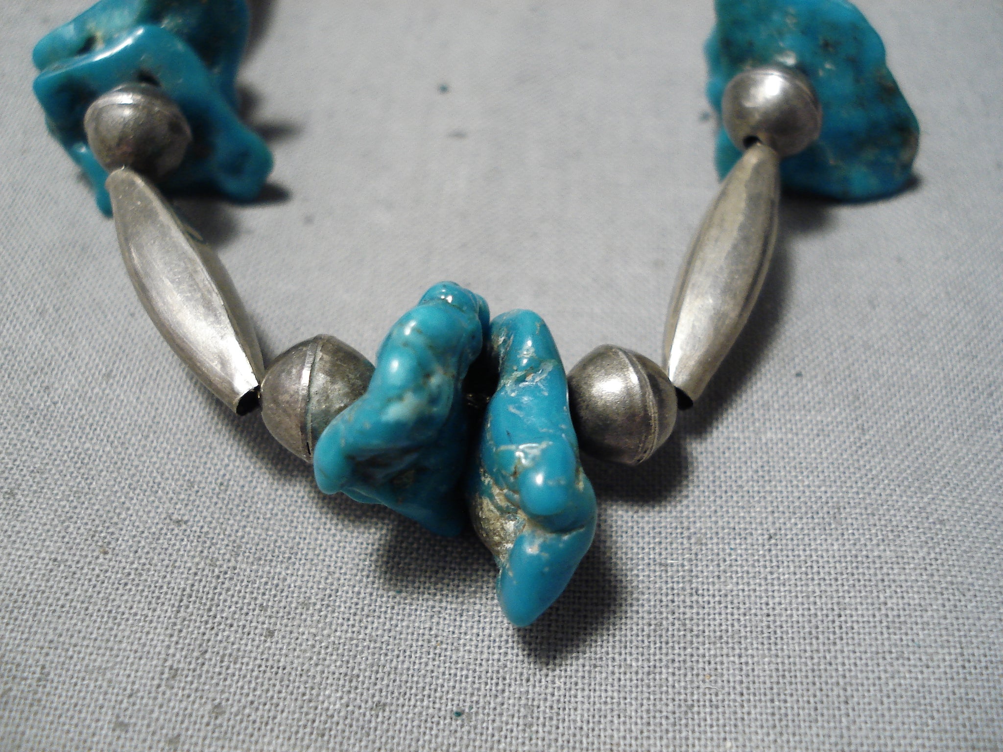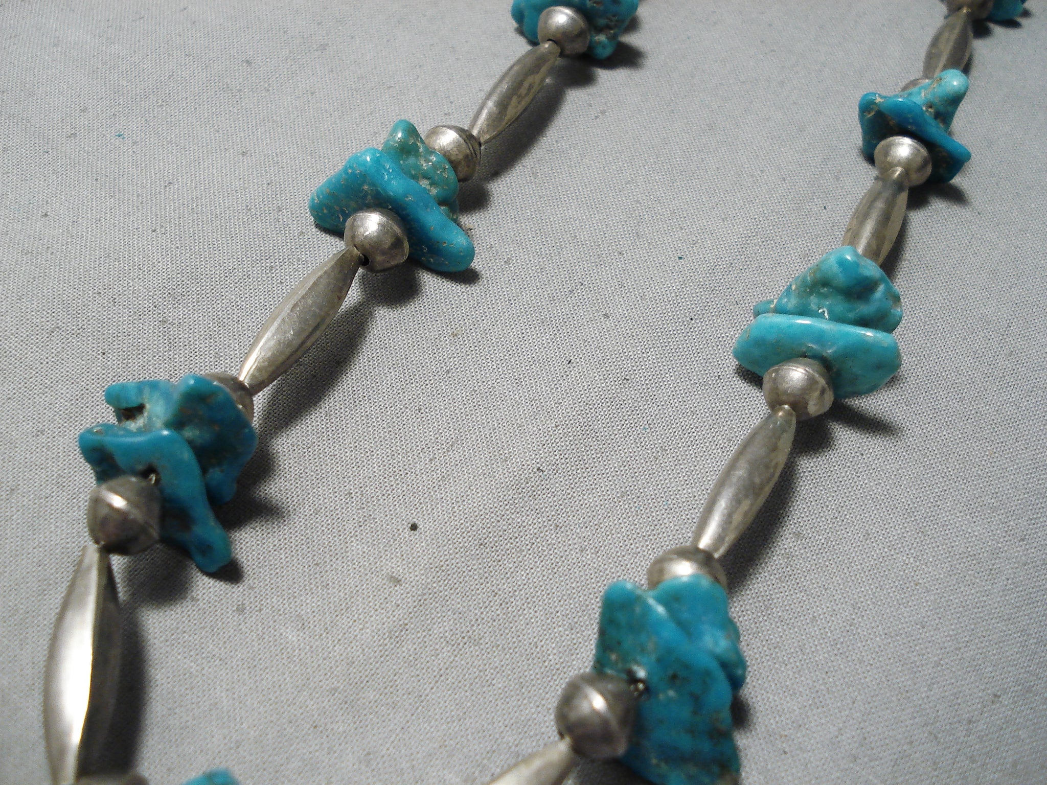 Marvelous Vintage Native American Navajo Turquoise Sterling Silver Necklace Old