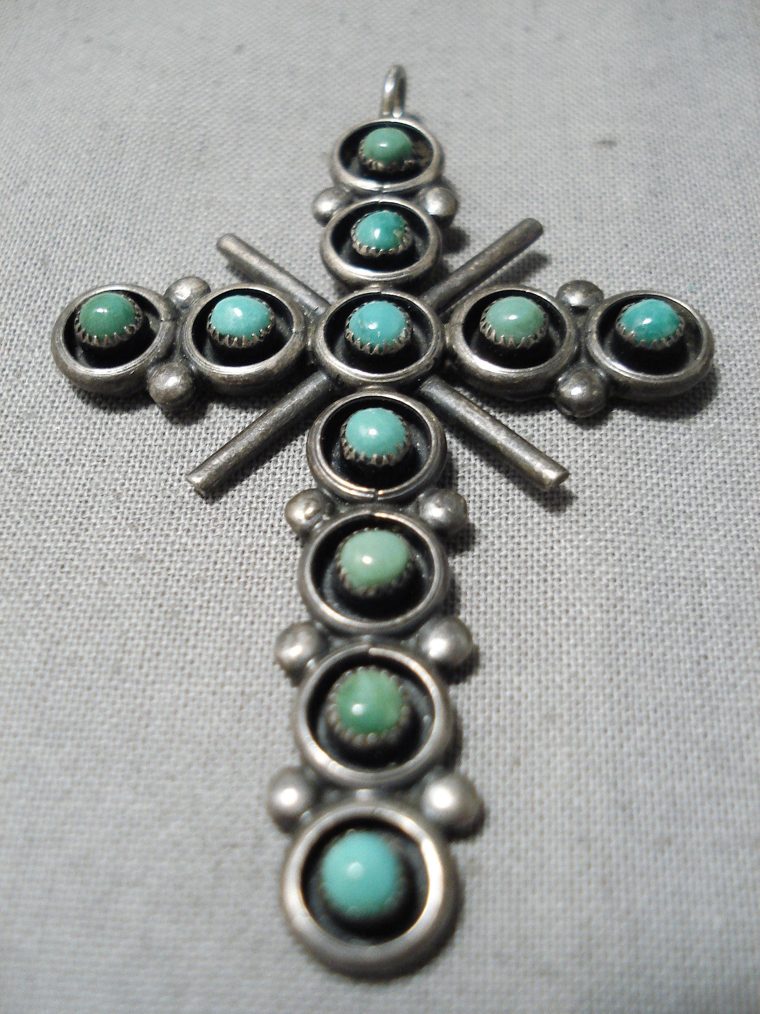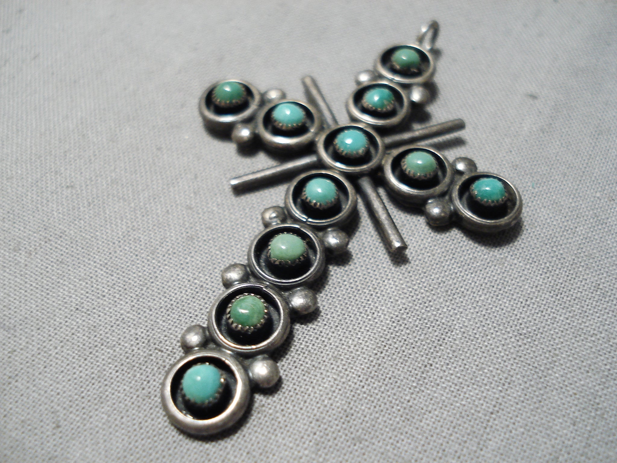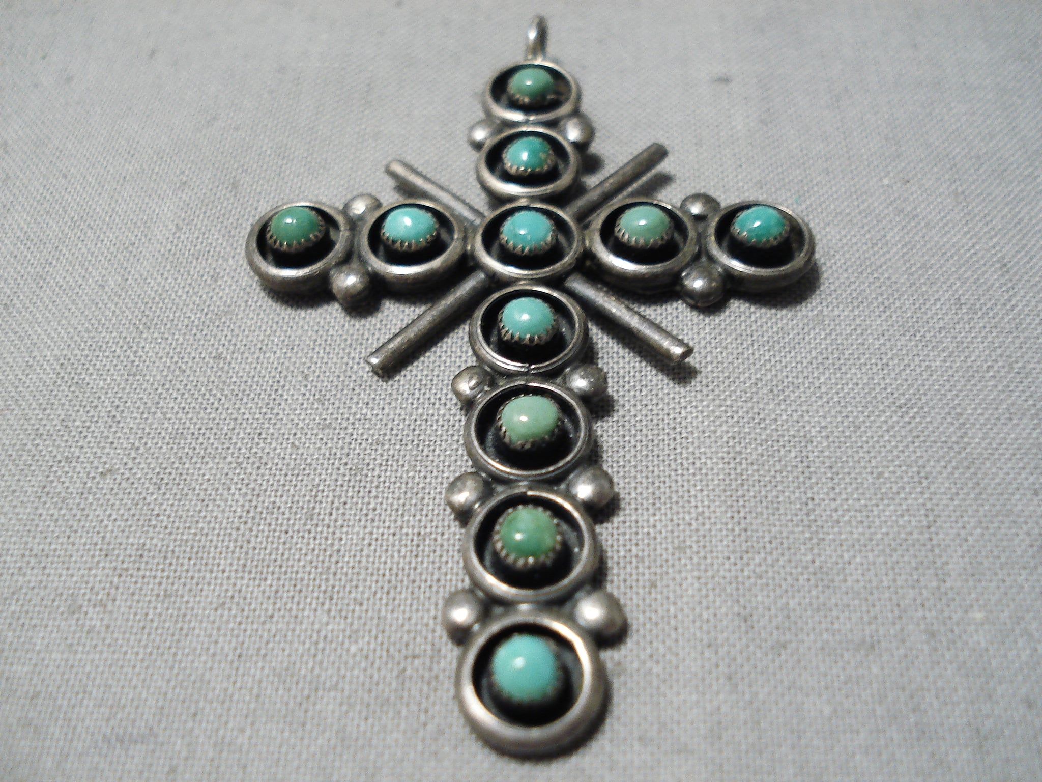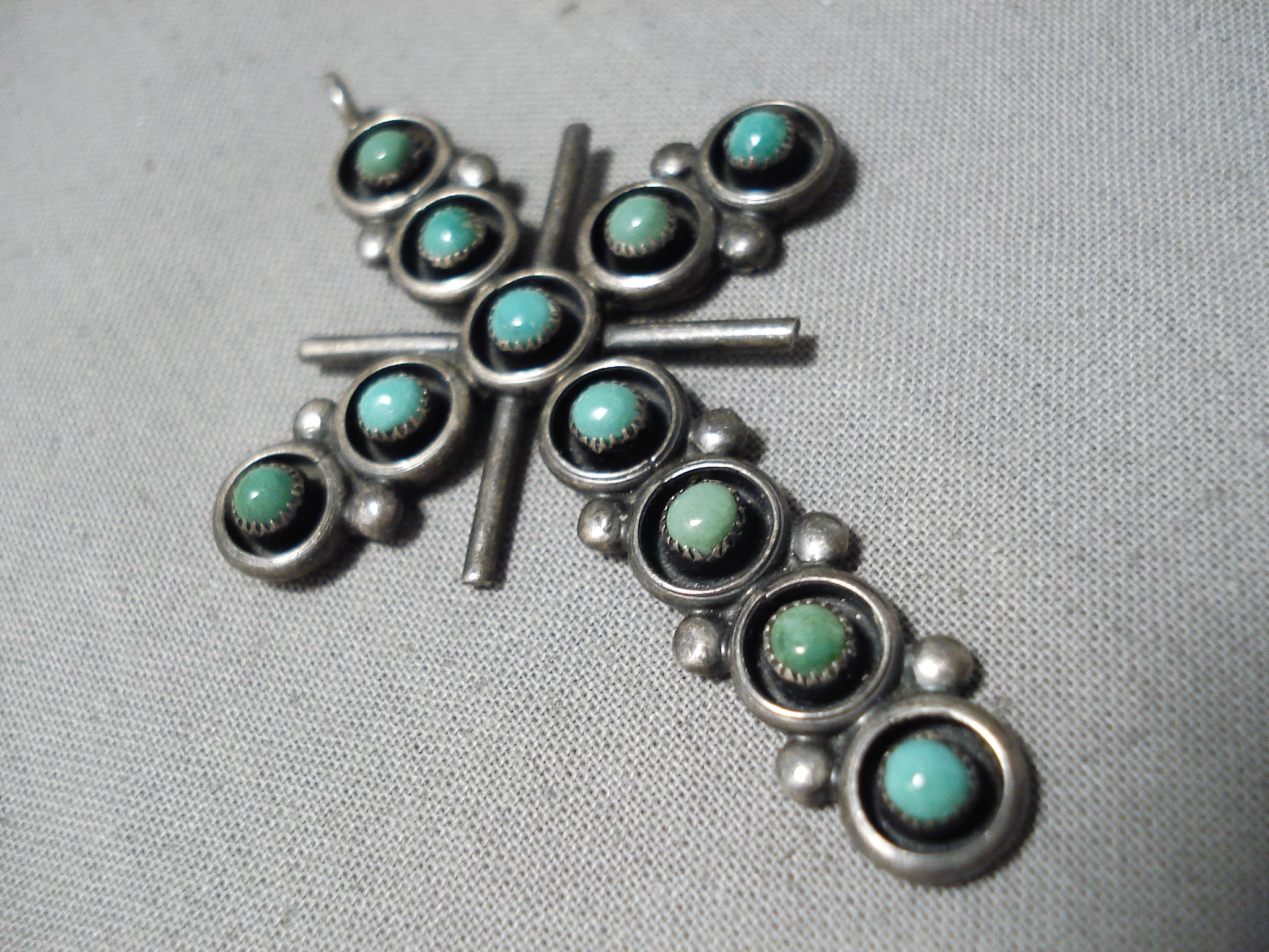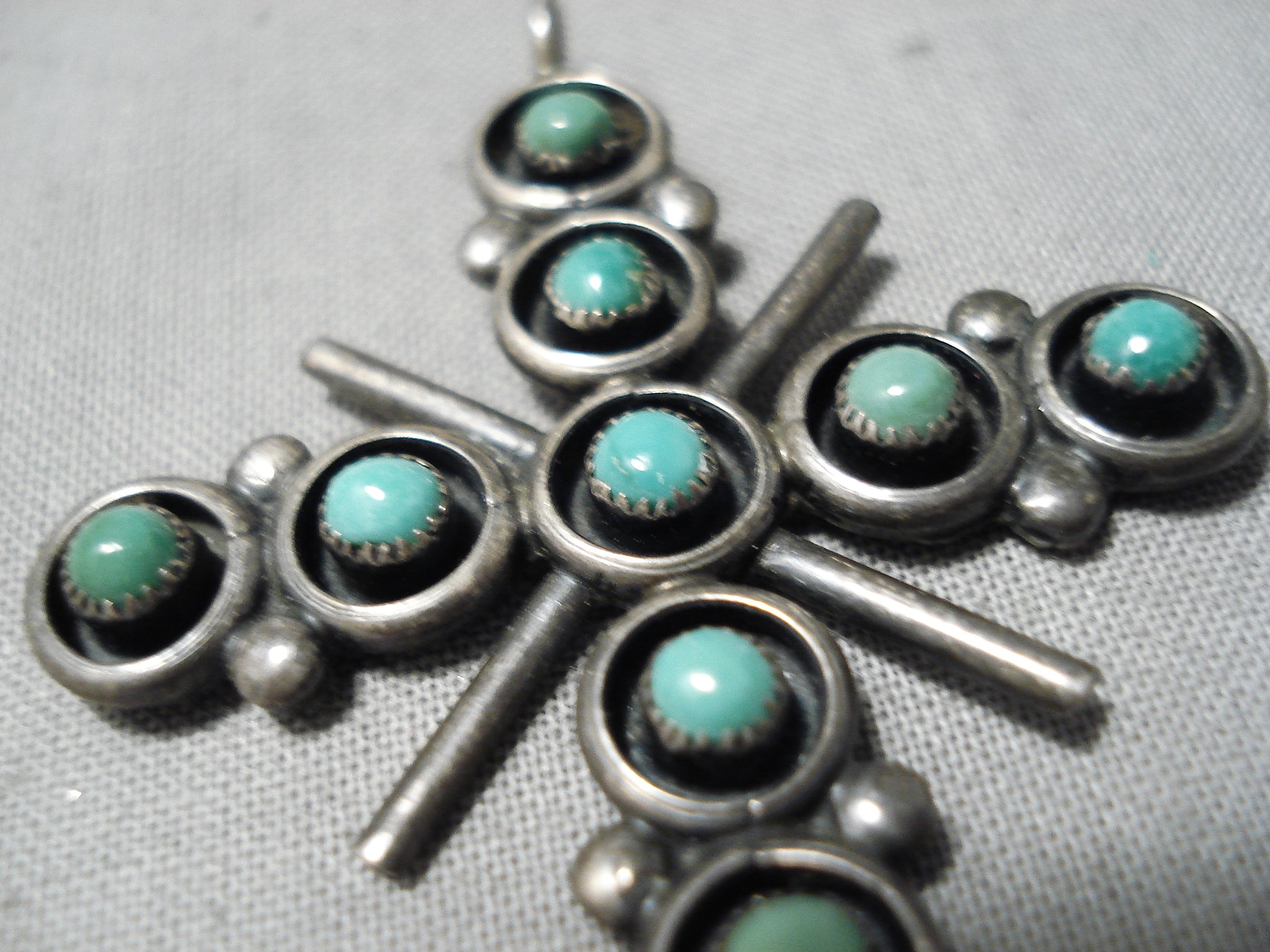 Marvelous Vintage Zuni Native American Turquoise Sterling Silver Cross Pendant