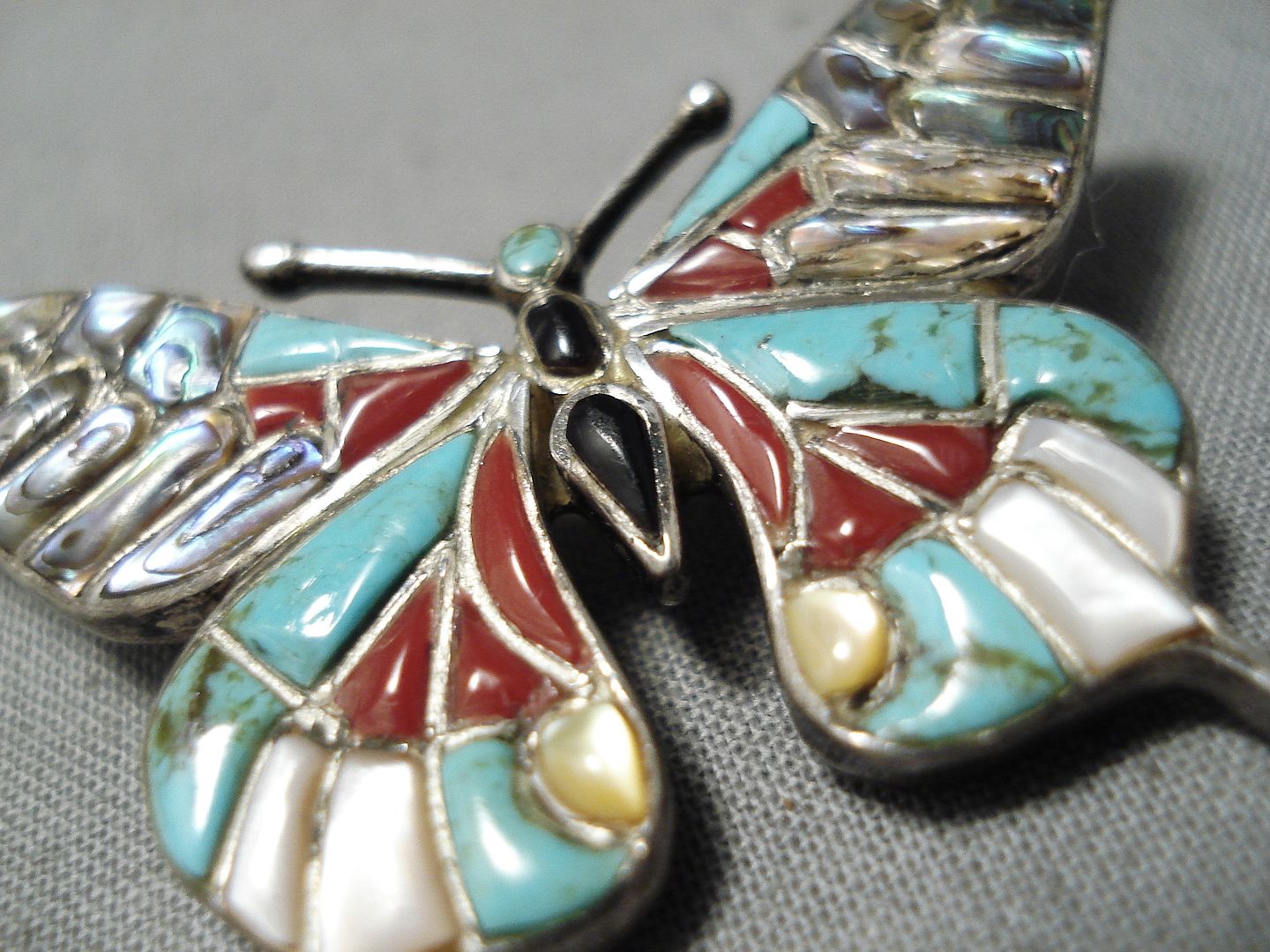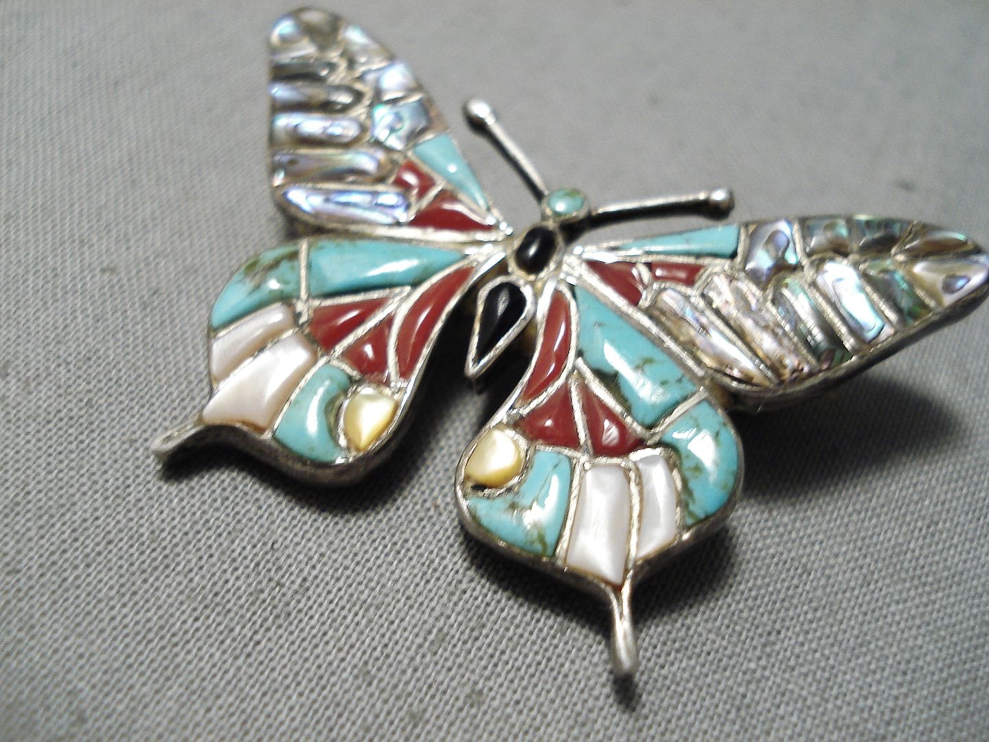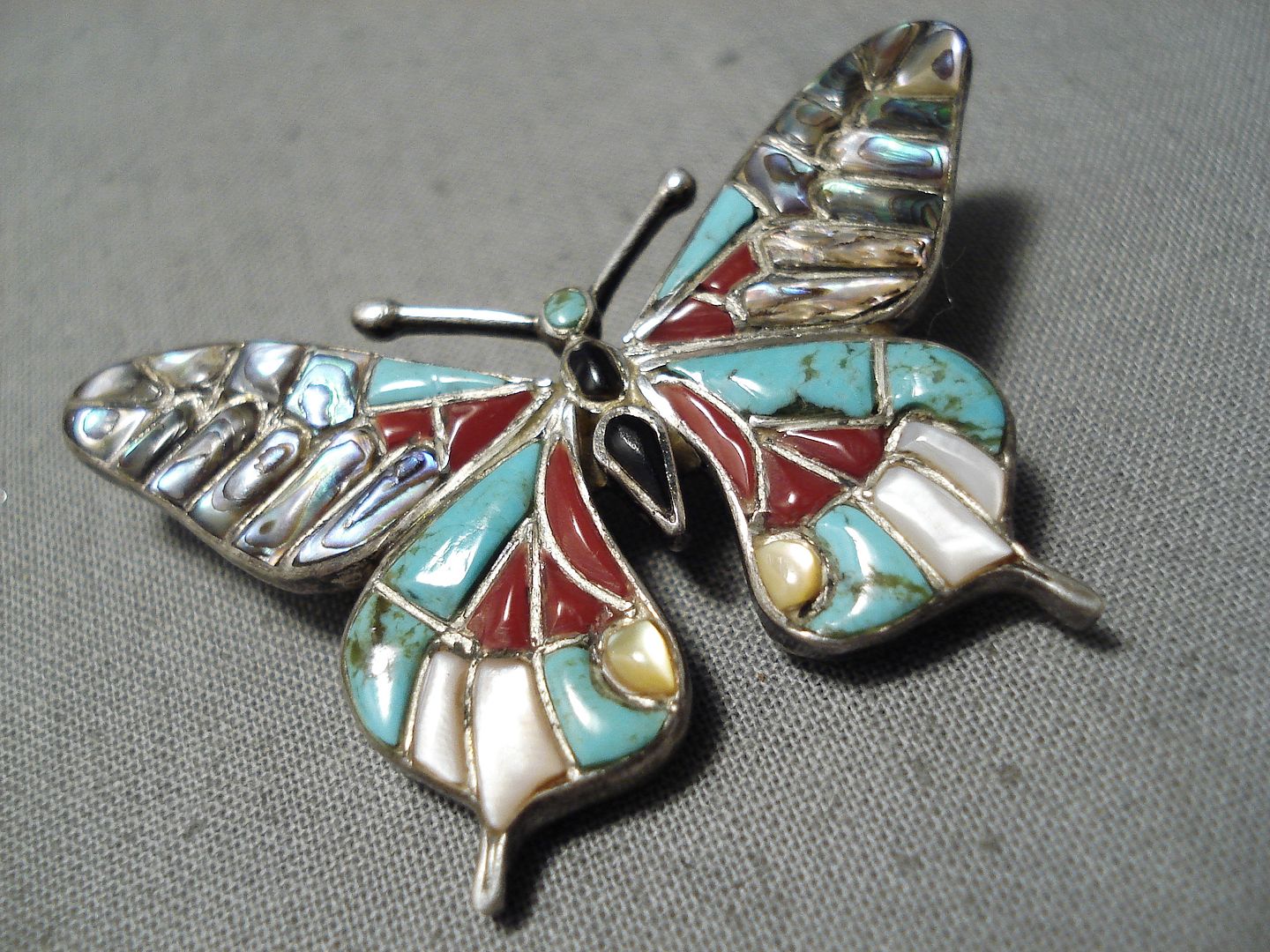 Marvelous Vintage Zuni Native American Turquoise Sterling Silver Pin