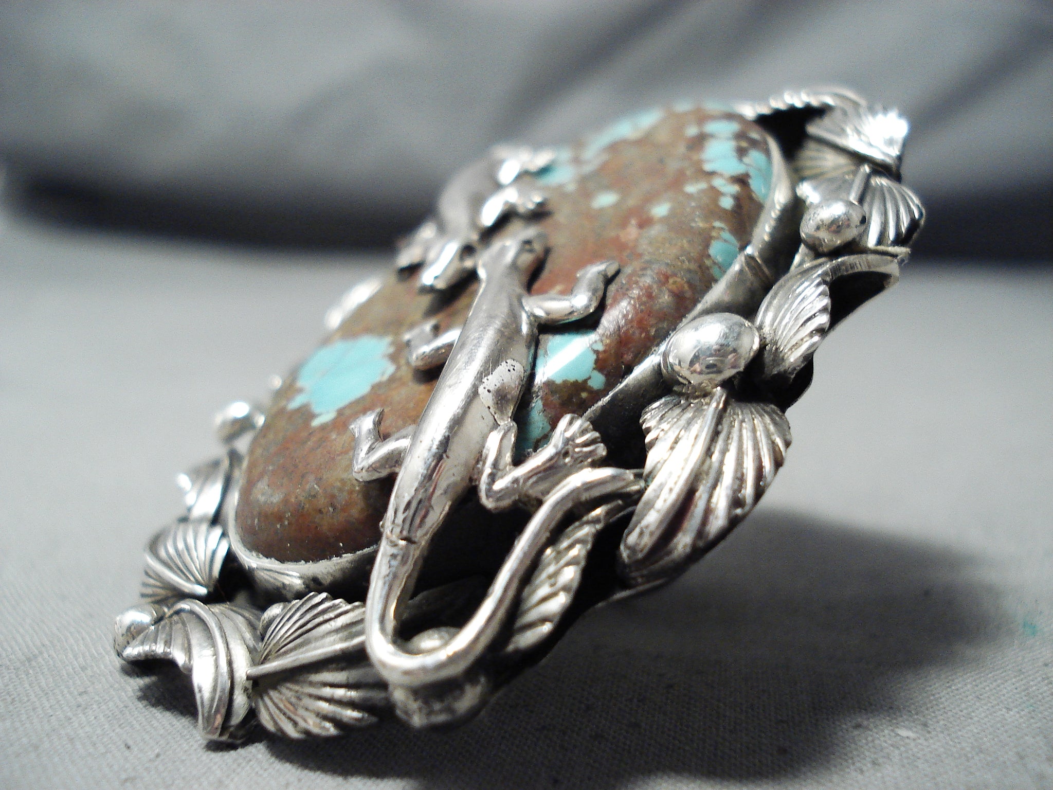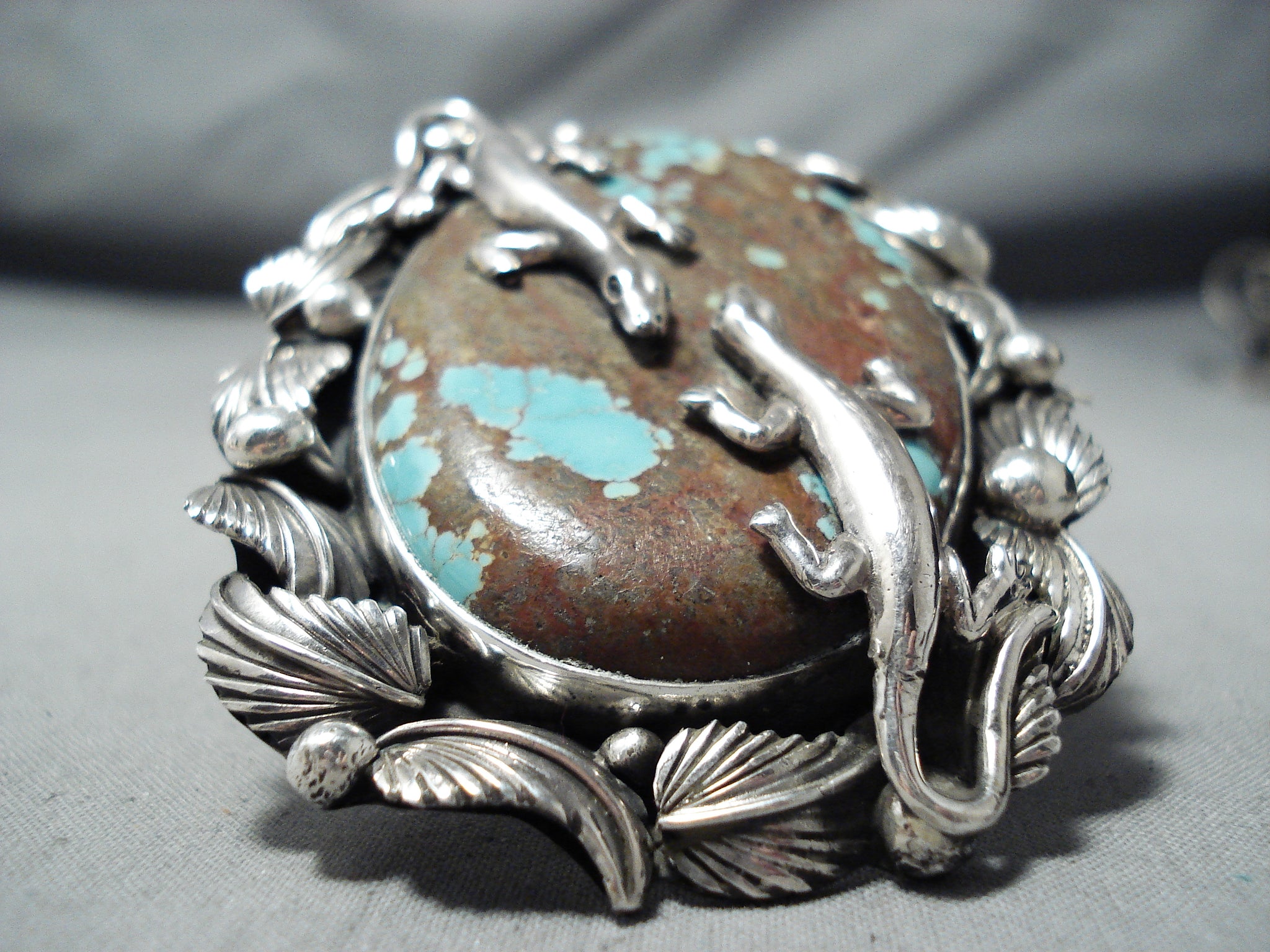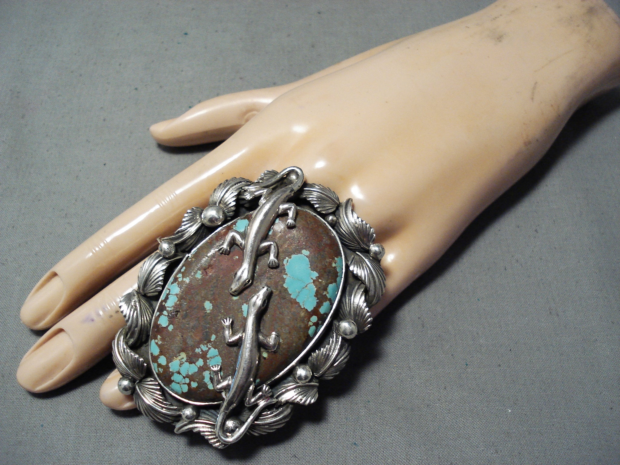 Massive San Felipe Native American 8 Turquoise Sterling Silver Gecko Ring