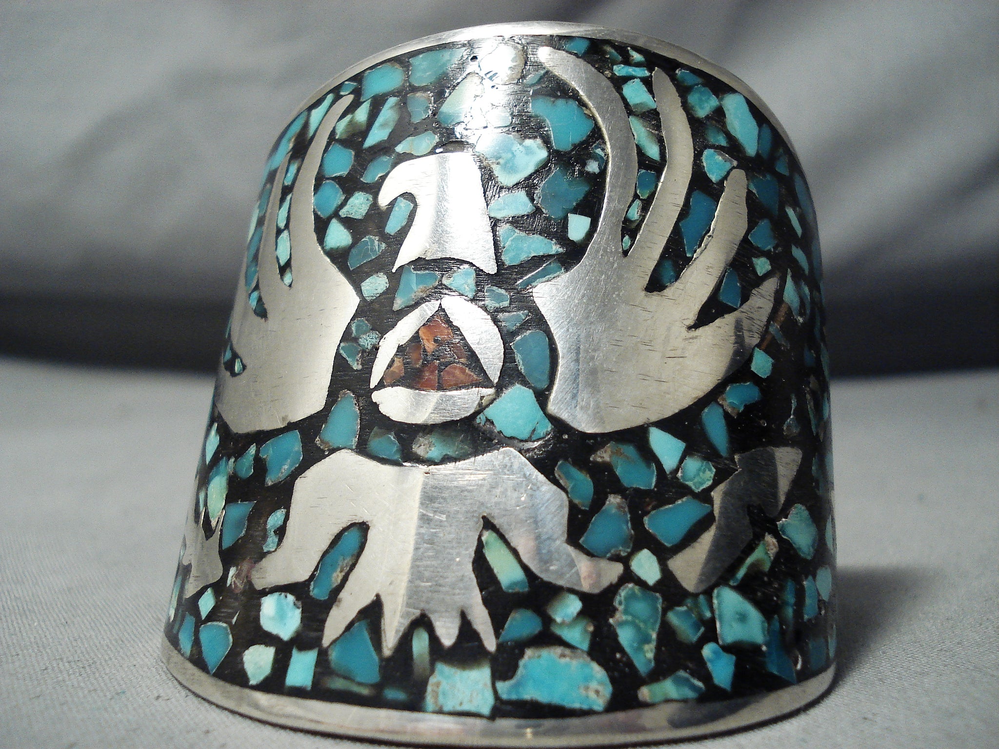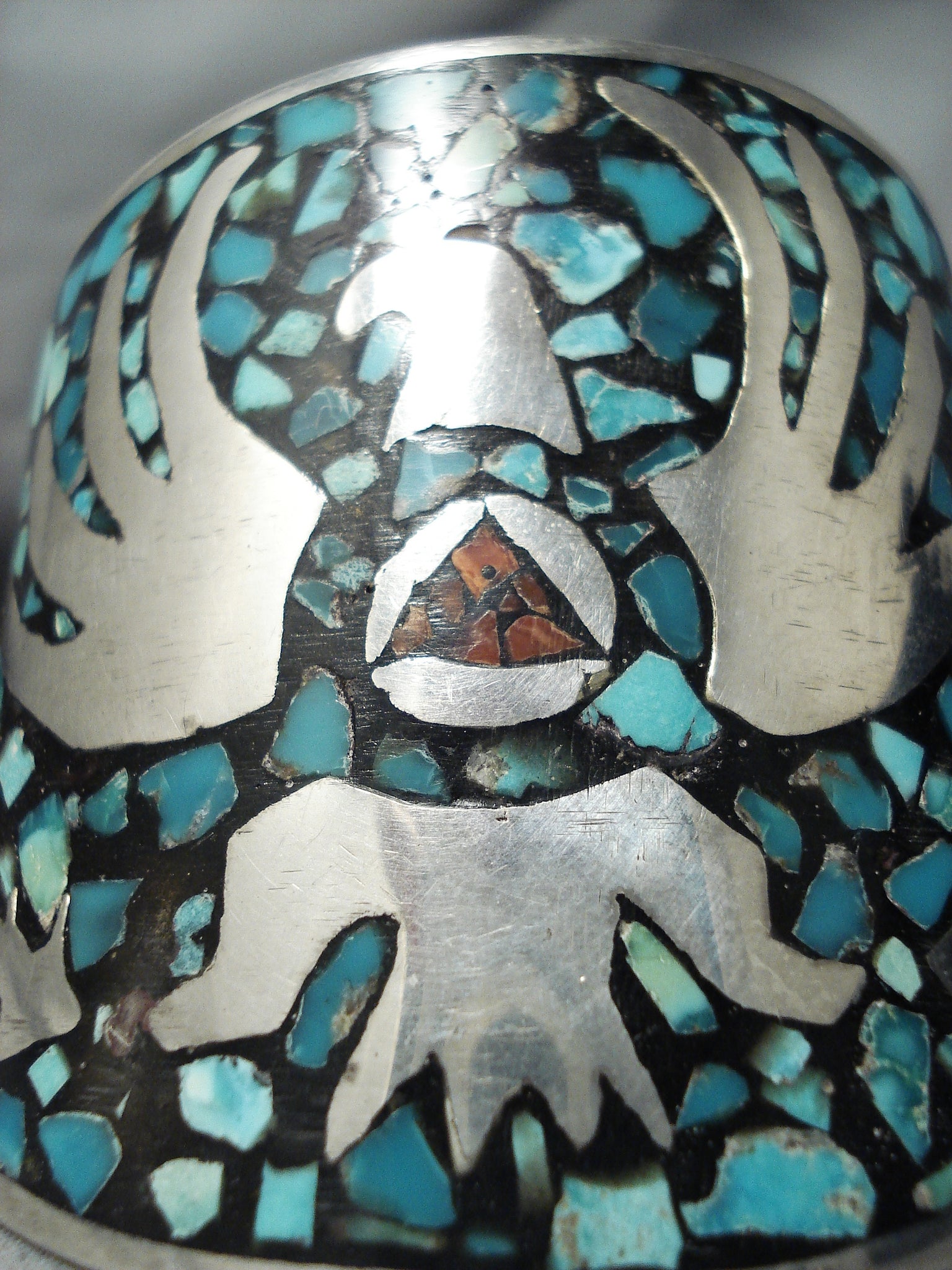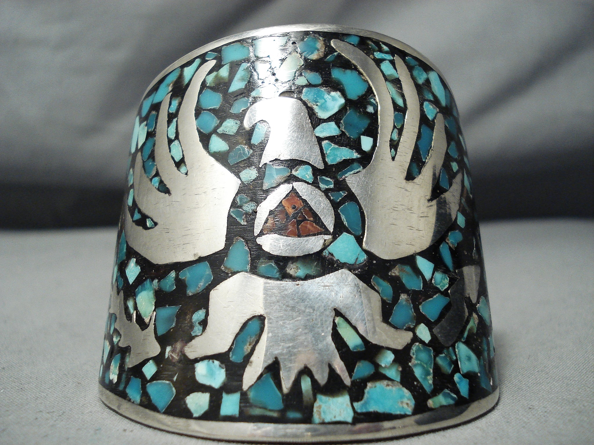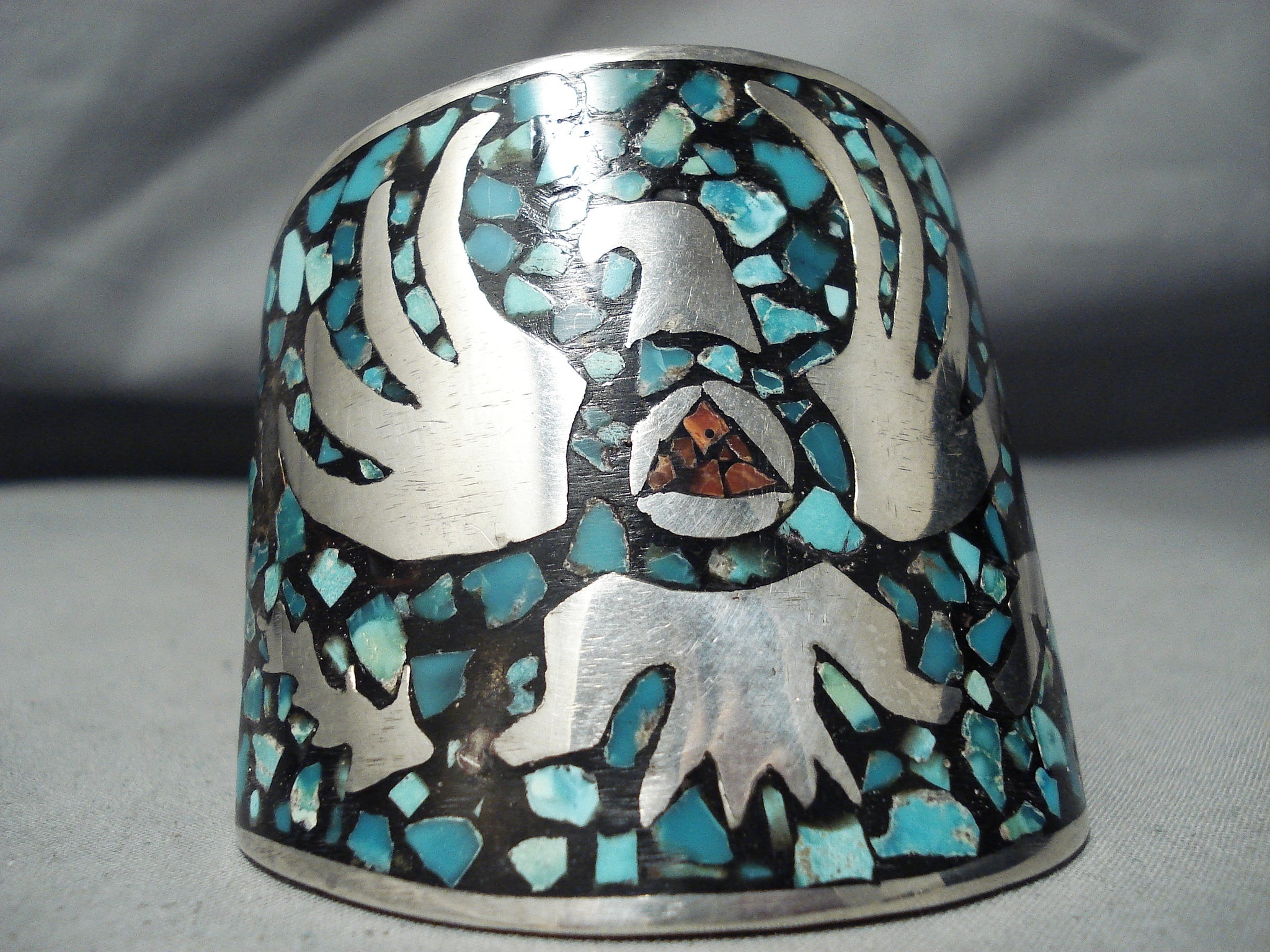 Massive Vintage Native American Navajo Turquoise Inlay Sterling Silver Bracelet