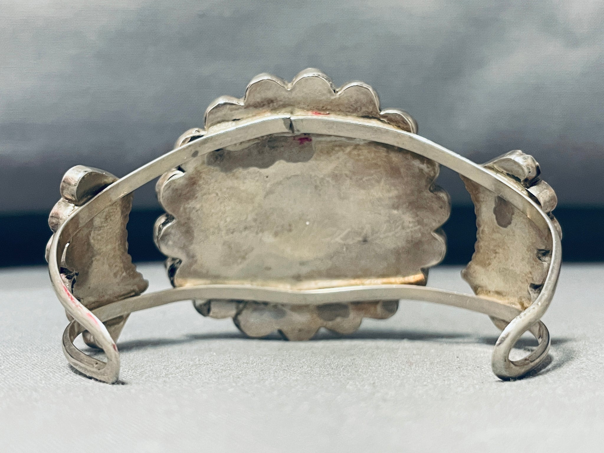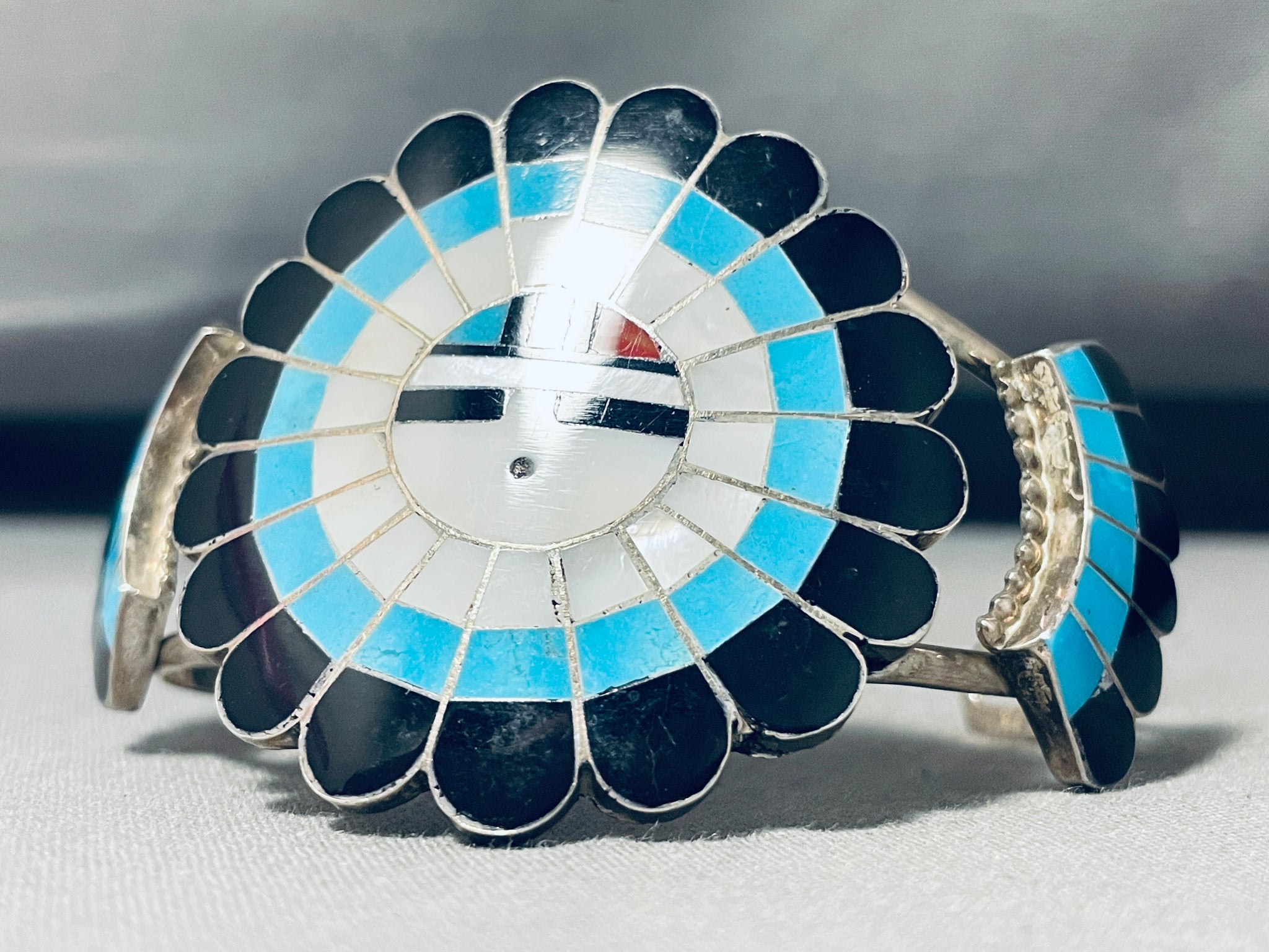 Massive Vintage Native American Zuni Signed Inlay Sunface Turquoise Sterling Silver Bracelet