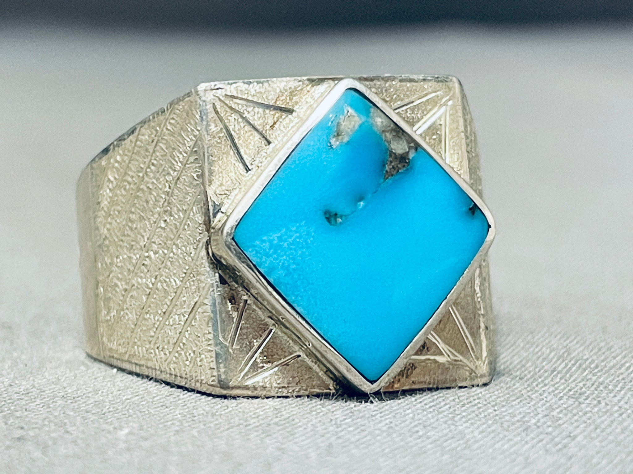 Men's Diamond Shaped Turquoise Vintage Native American Navajo Sterling Silver Ring