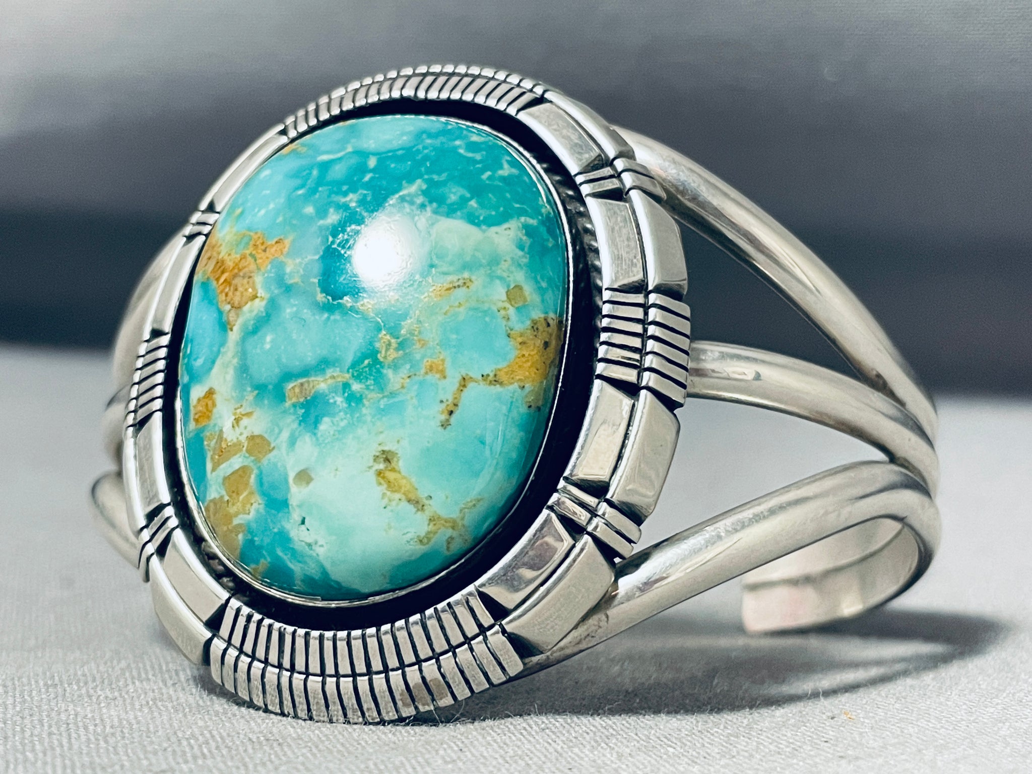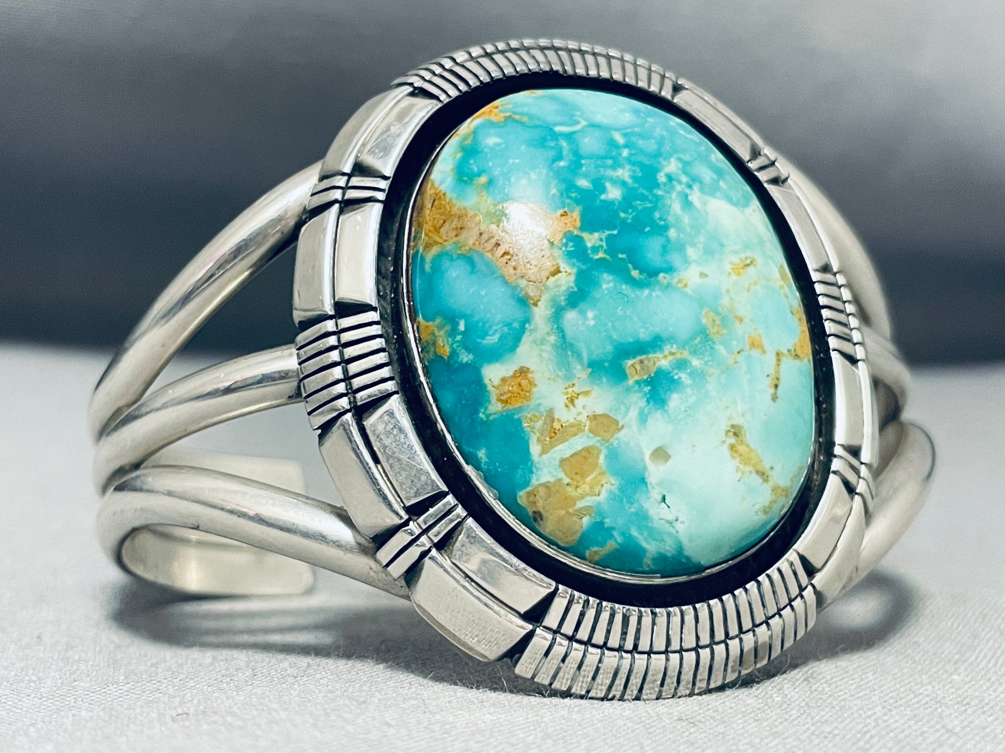 Mesmerizing Native American Navajo Signed Royston Turquoise Sterling Silver Huge Bracelet