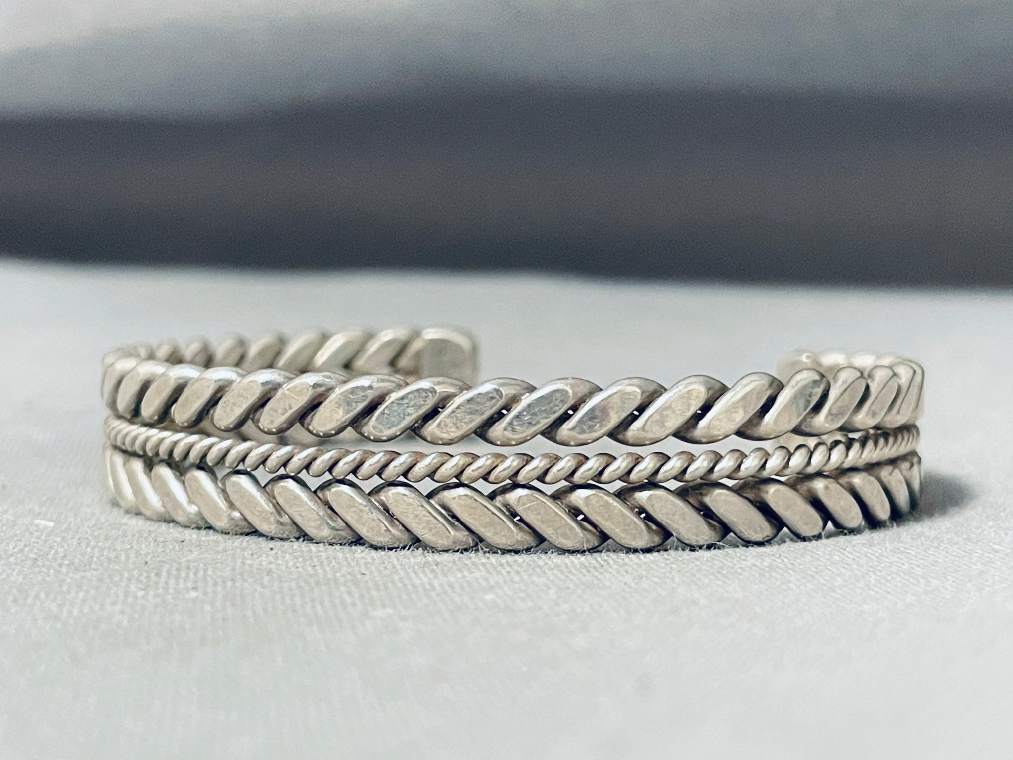 Mesmerizing Vintage Native American Navajo Twisted Sterling Silver Rope Bracelet