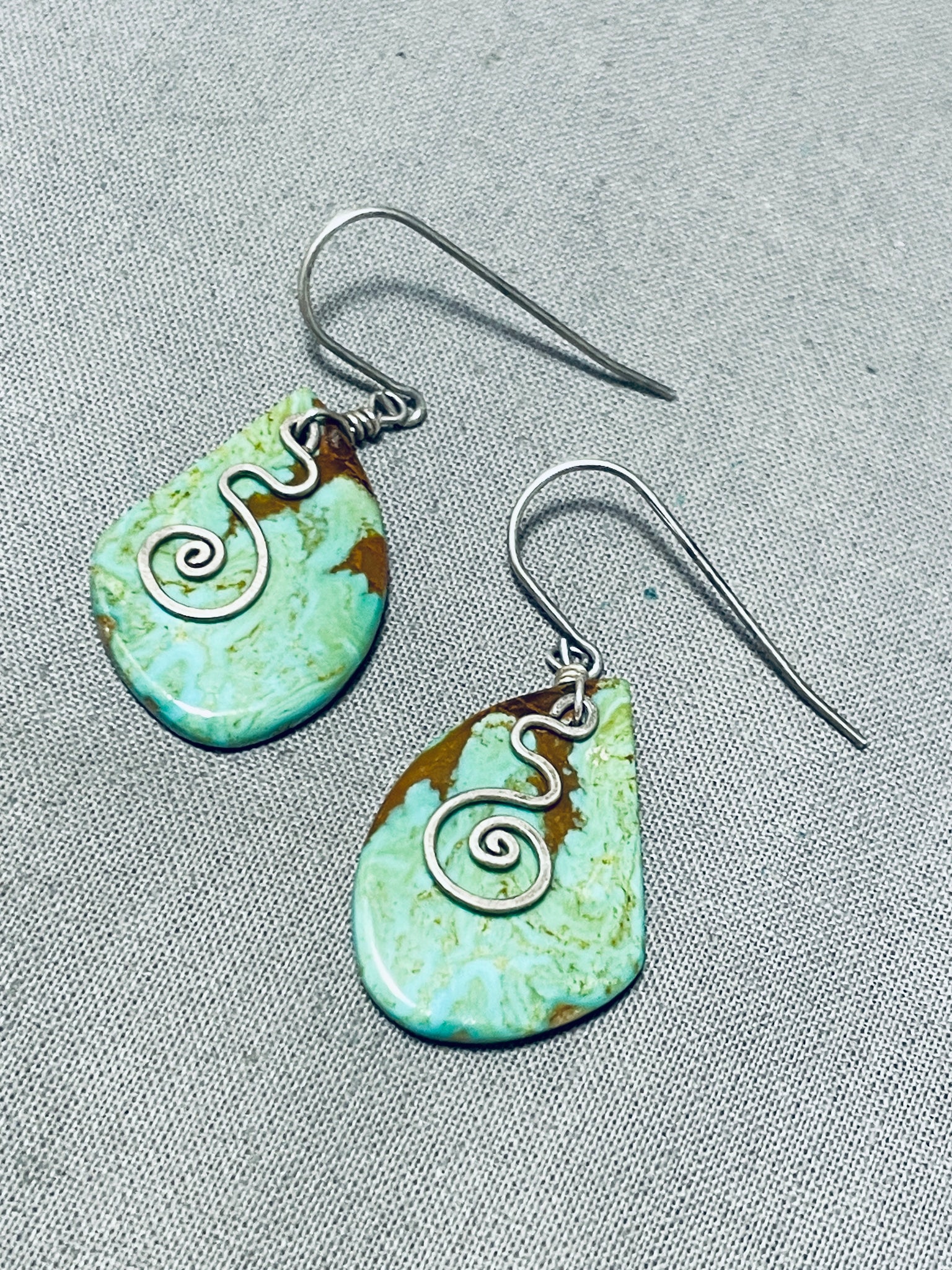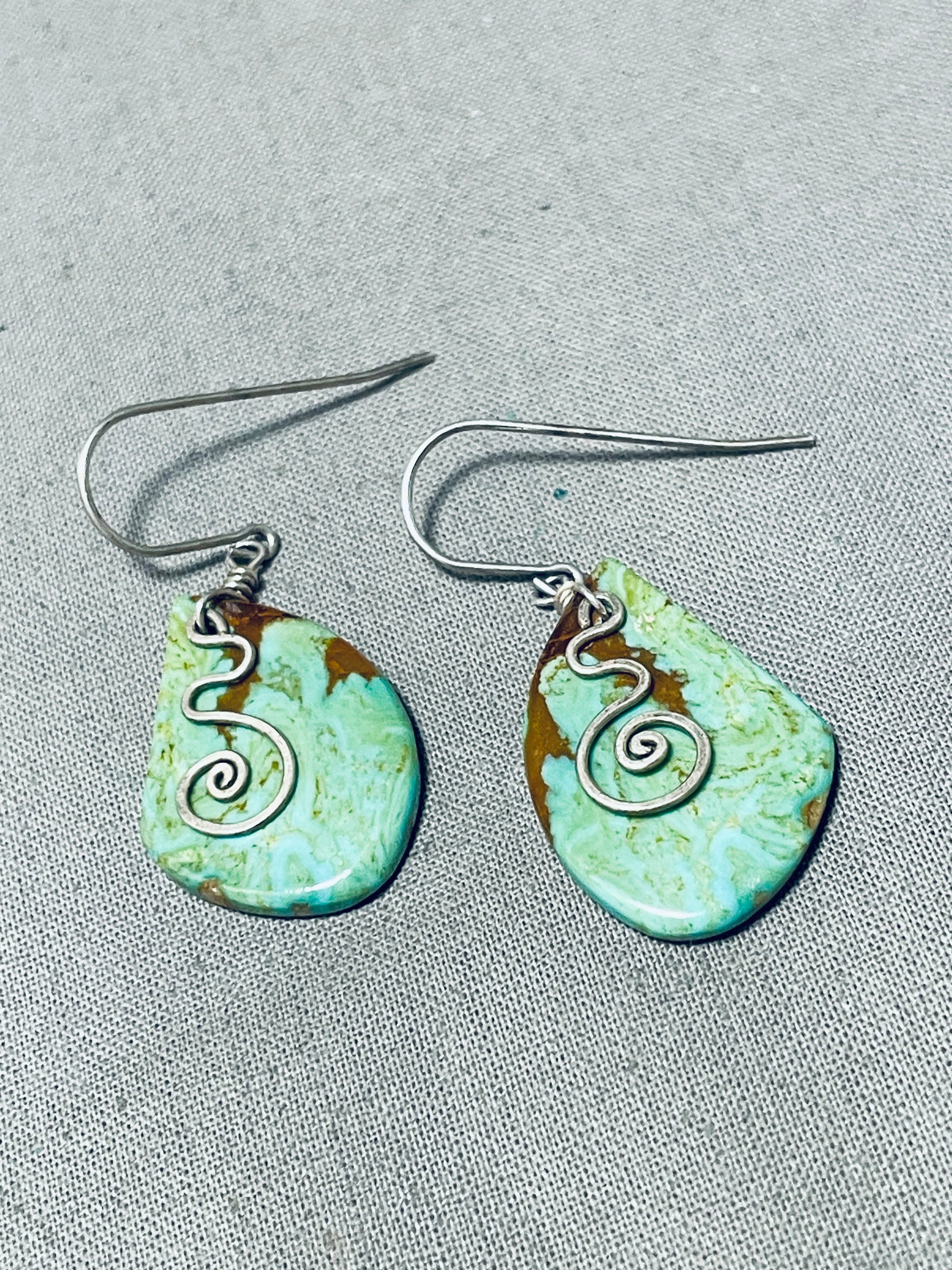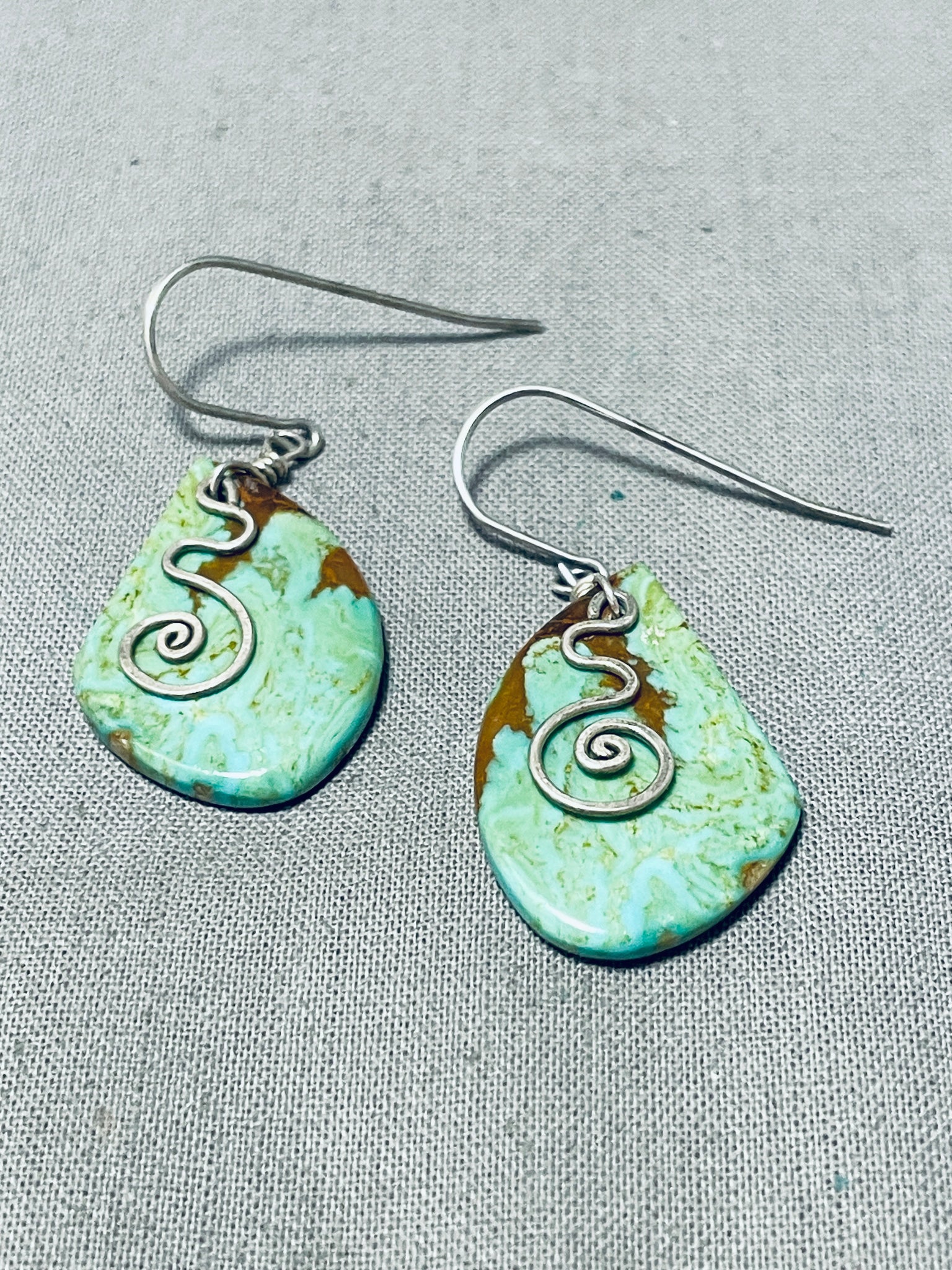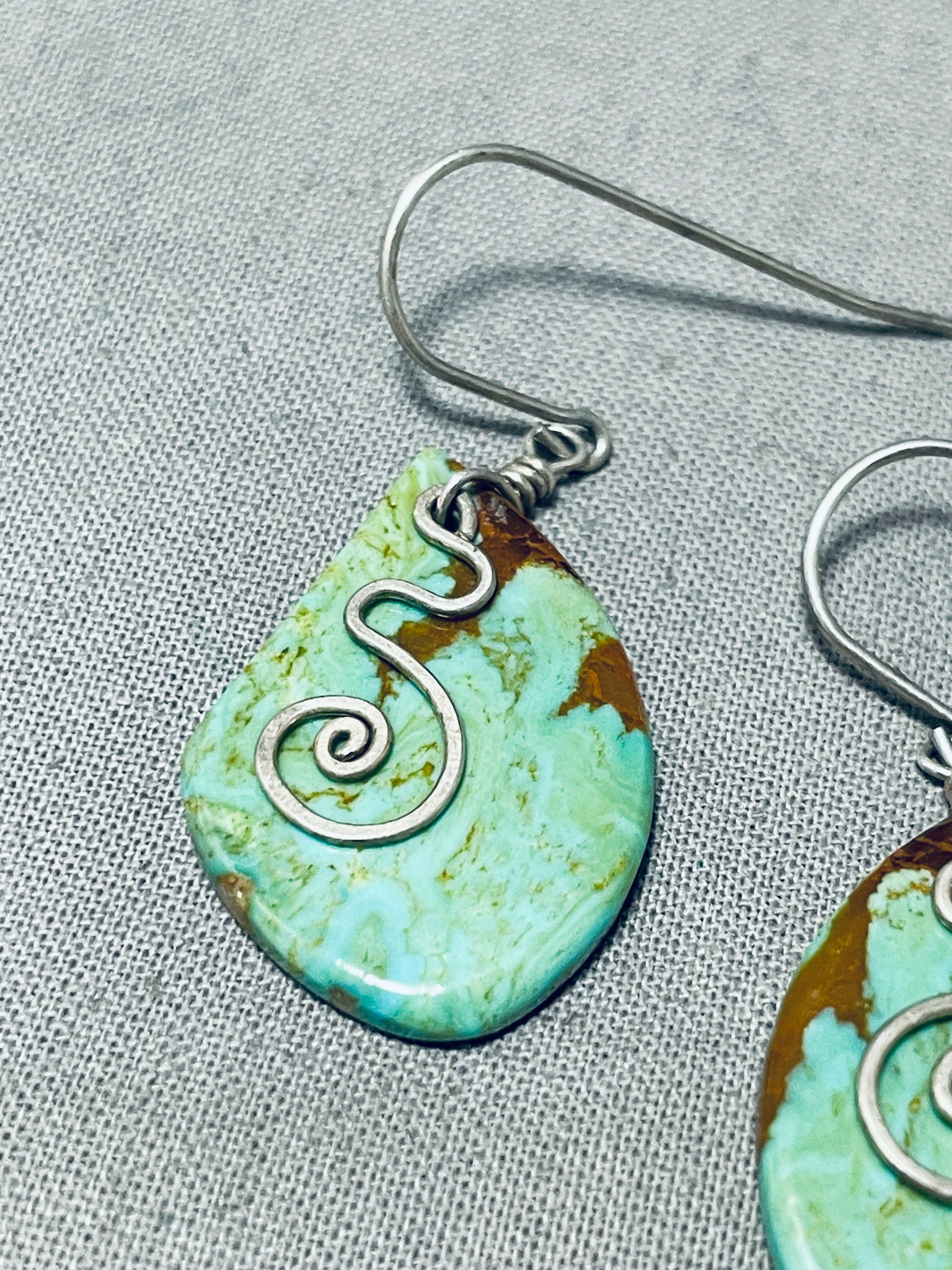 Mesmerizing Vintage Santo Domingo Royston Turquoise Sterling Silver Earrings