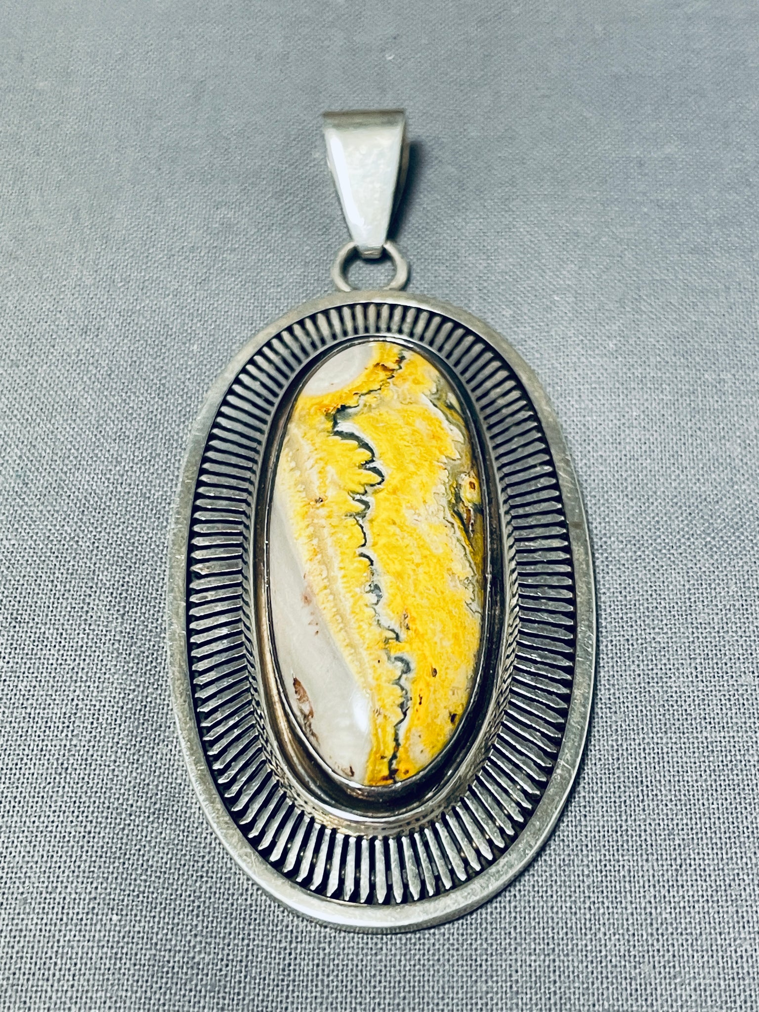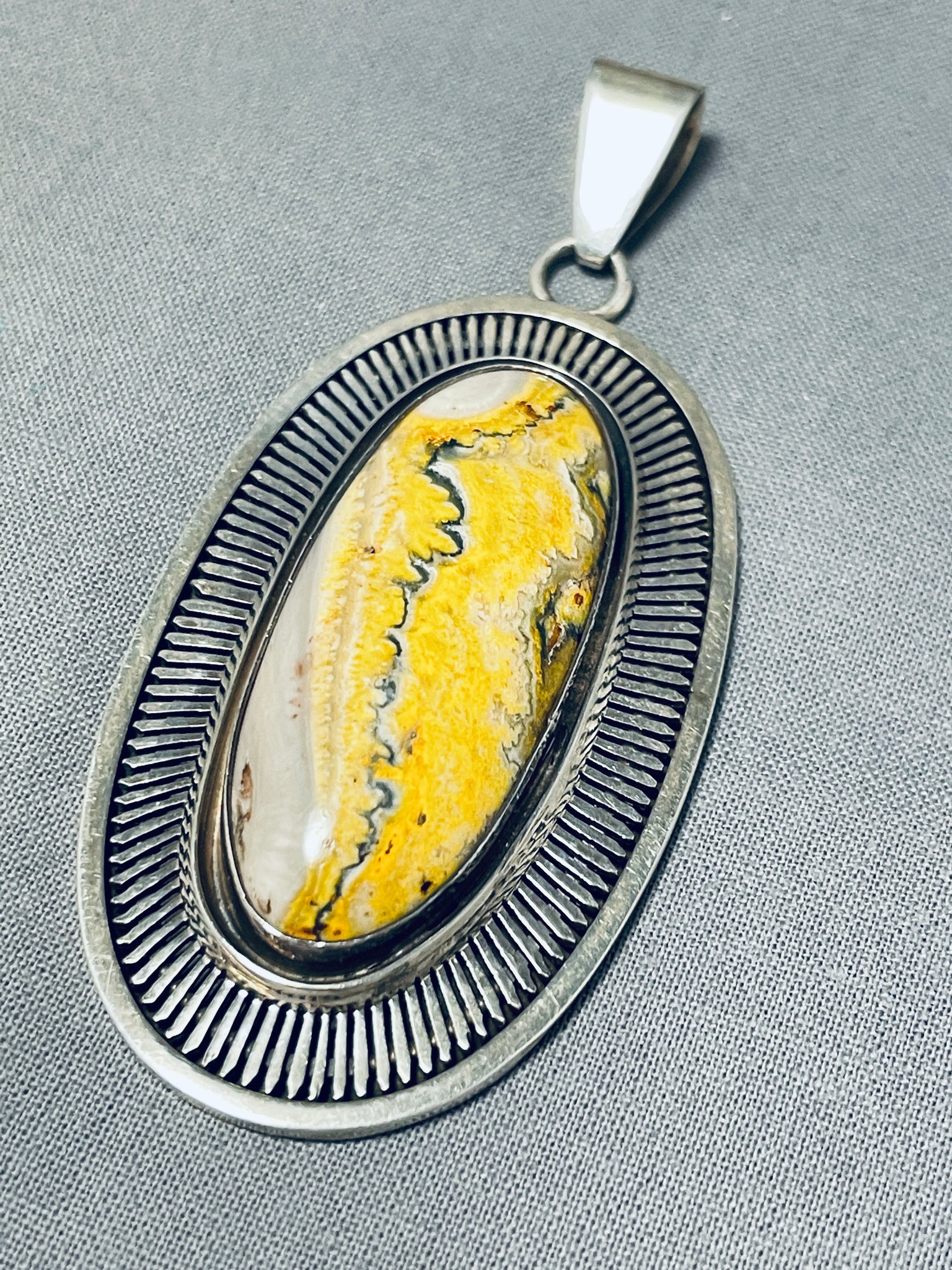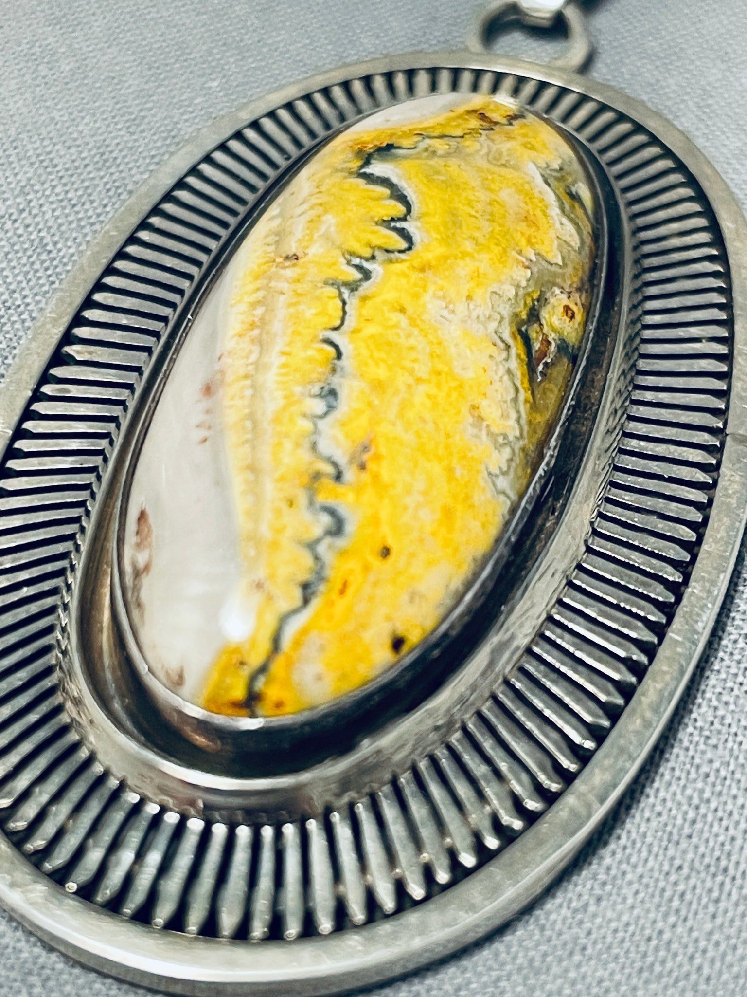 Micro Precision Hand Tooled Native American Navajo Honeybee Jasper Sterling Silver Pendant