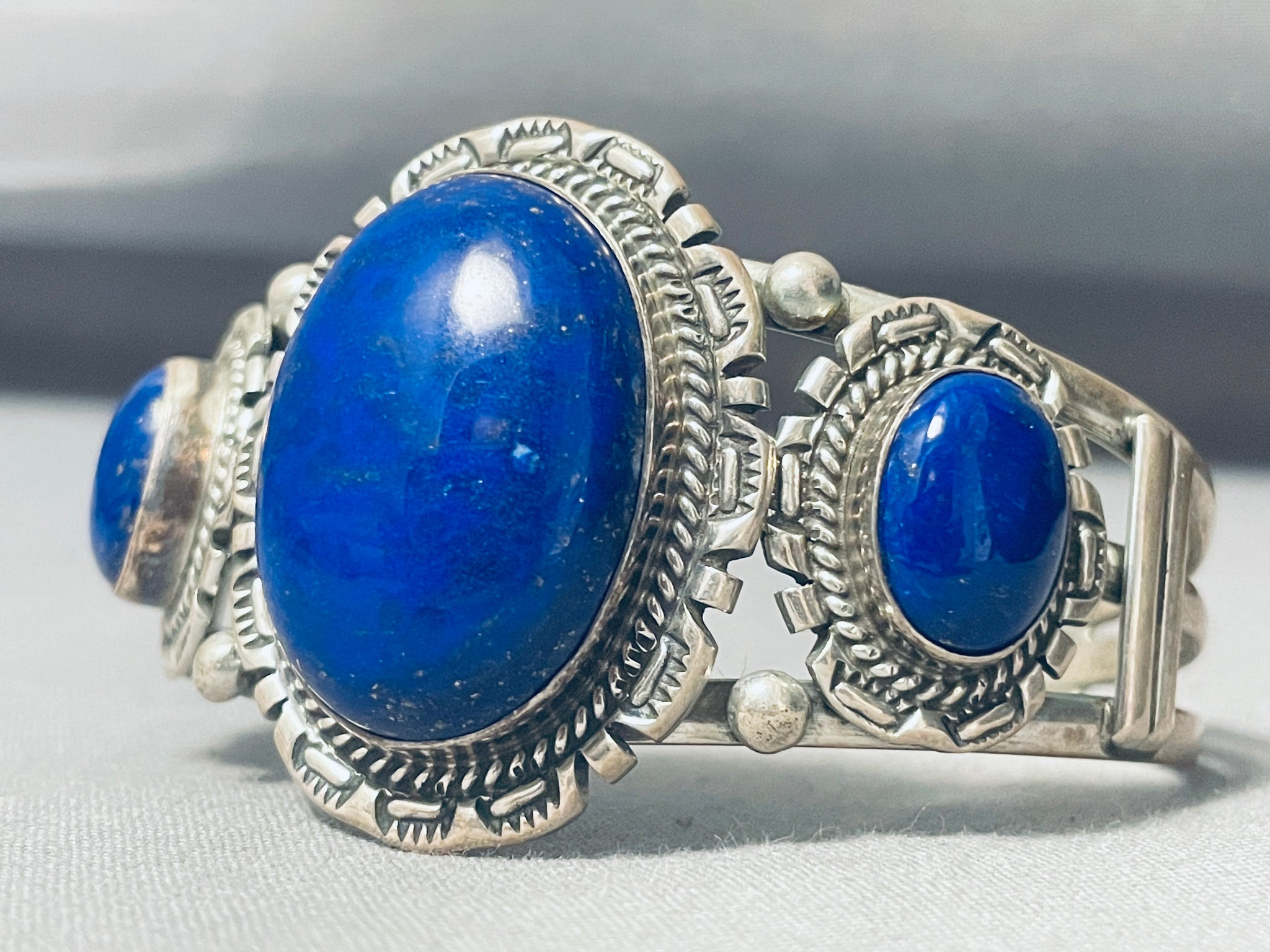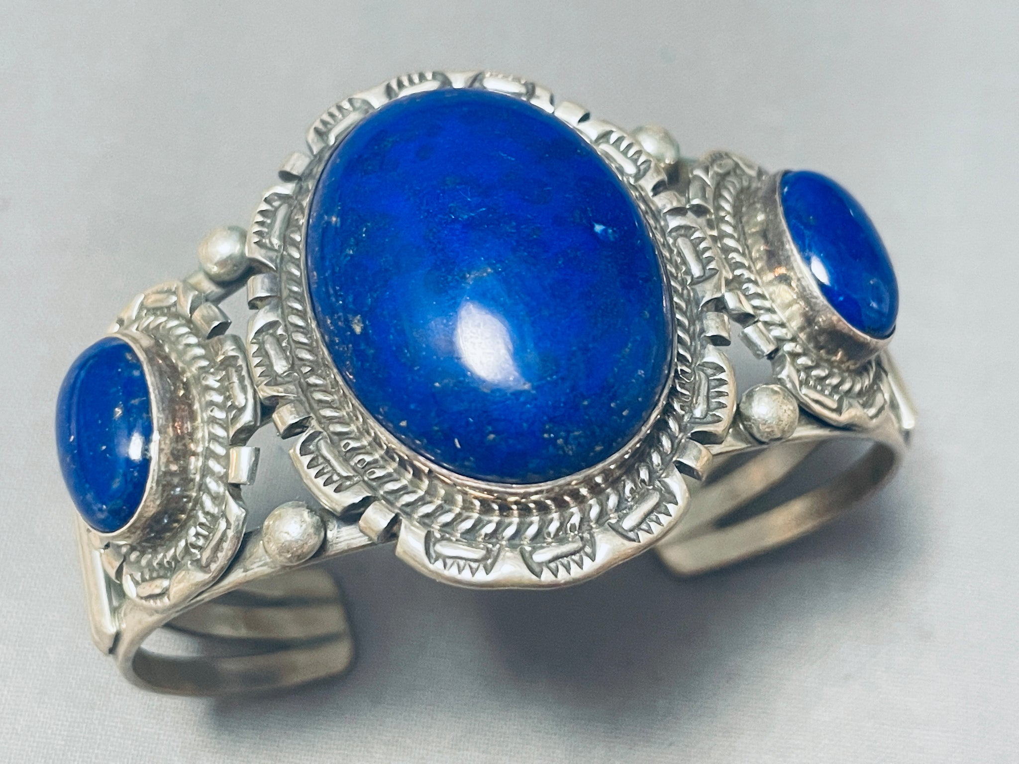 Midnight Sky Triple Lapis Vintage Native American Navajo Sterling Silver Bracelet