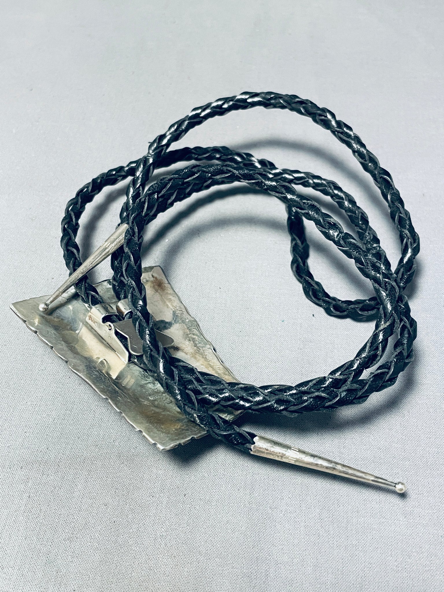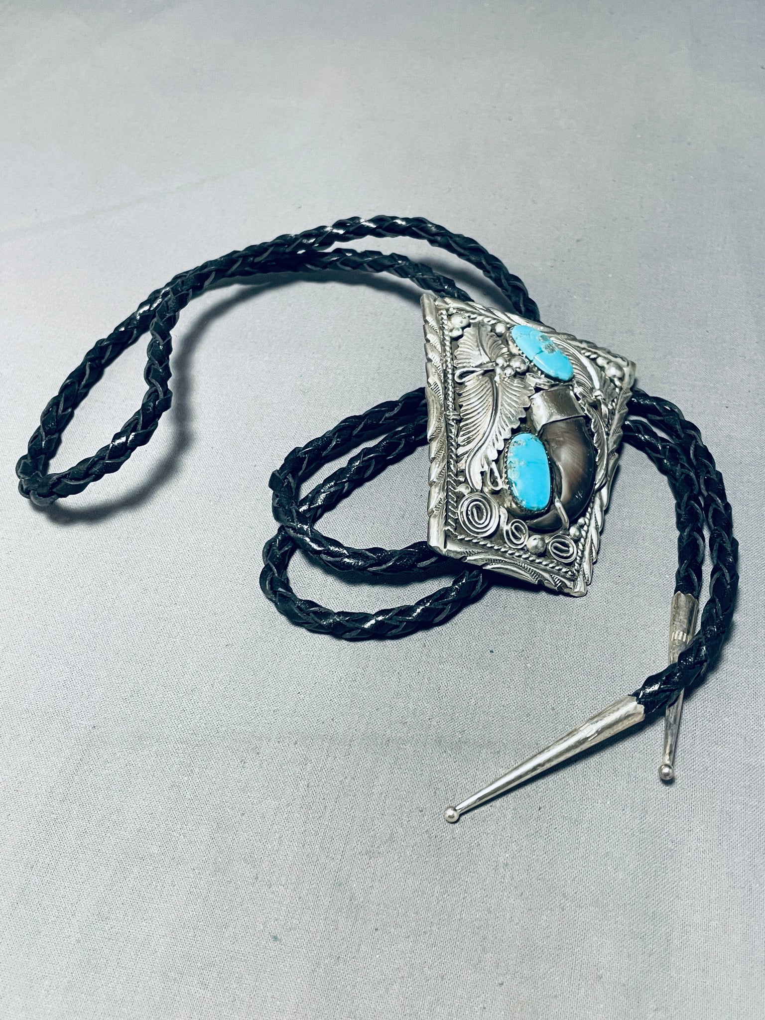 Mike Thomas Vintage Native American Navajo Turquoise Sterling Silver Bolo Tie