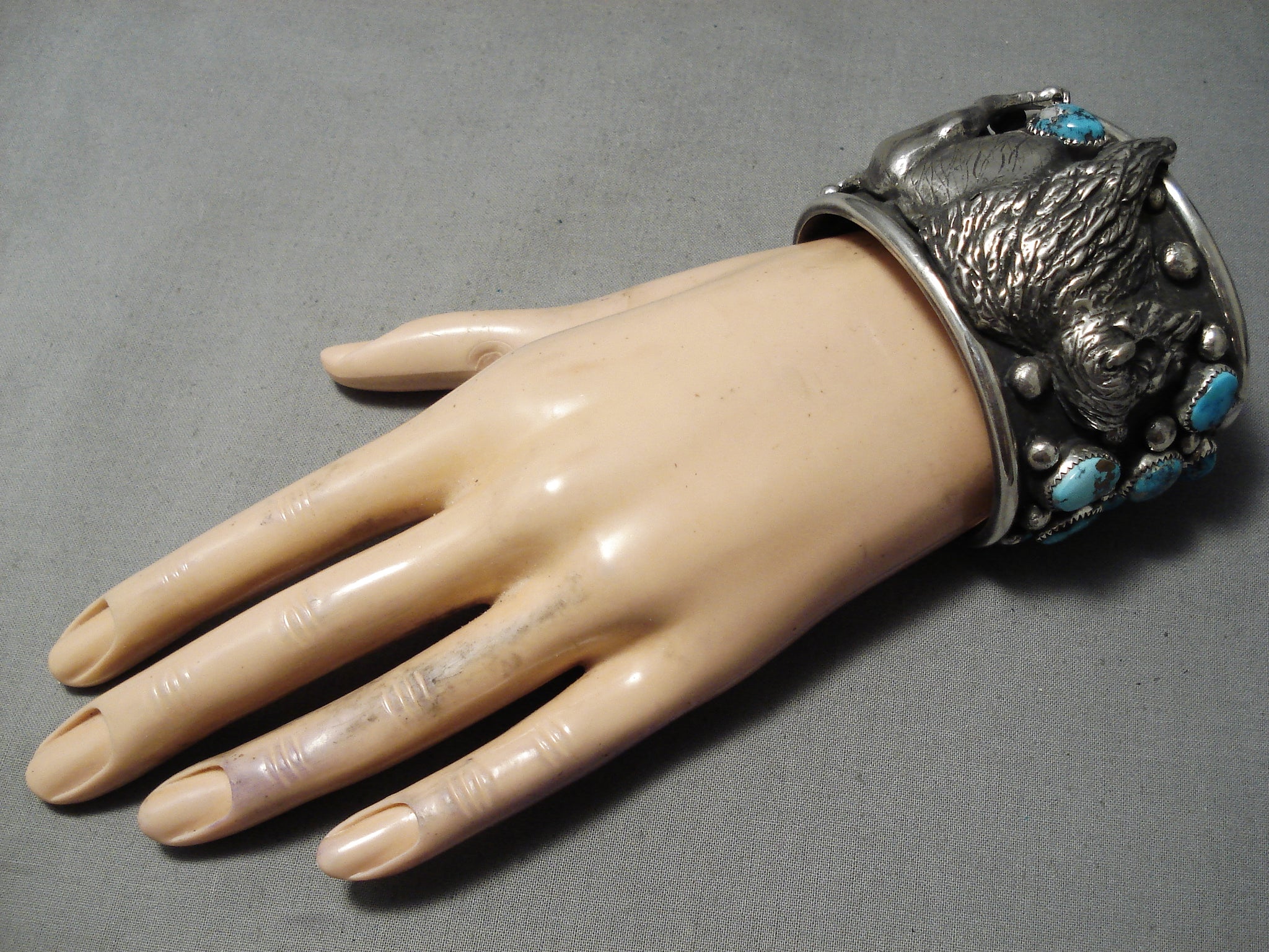 Mind Blowing Native American Buffalo Turquoisen Sterling Silver Bracelet
