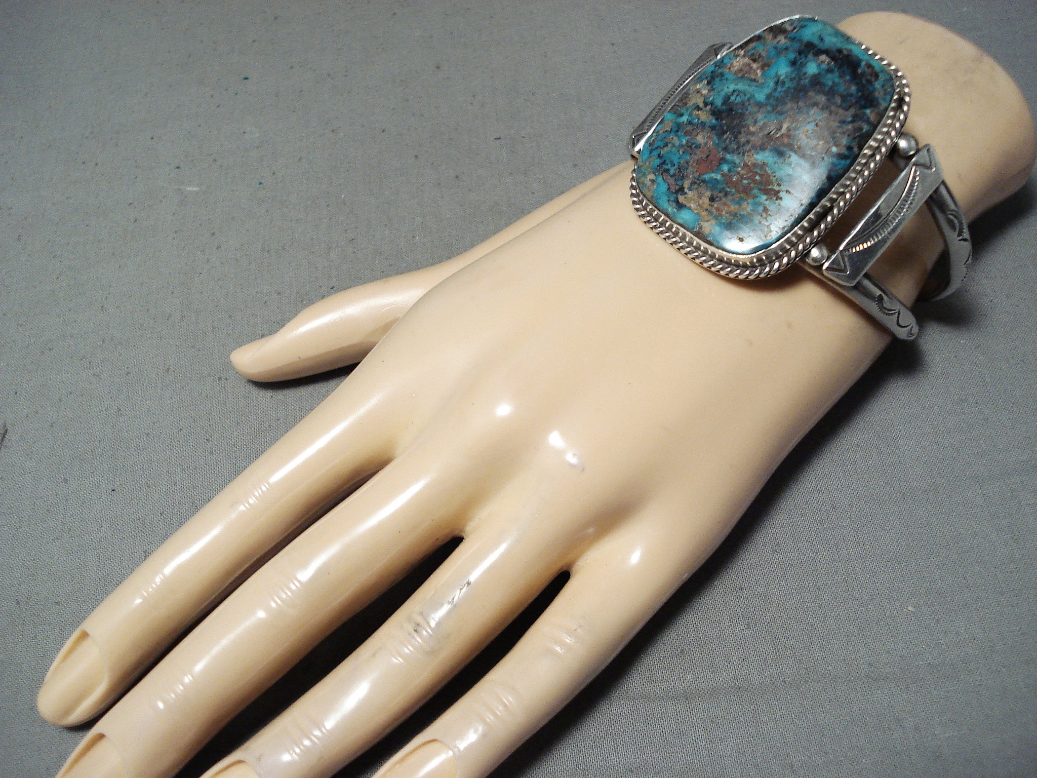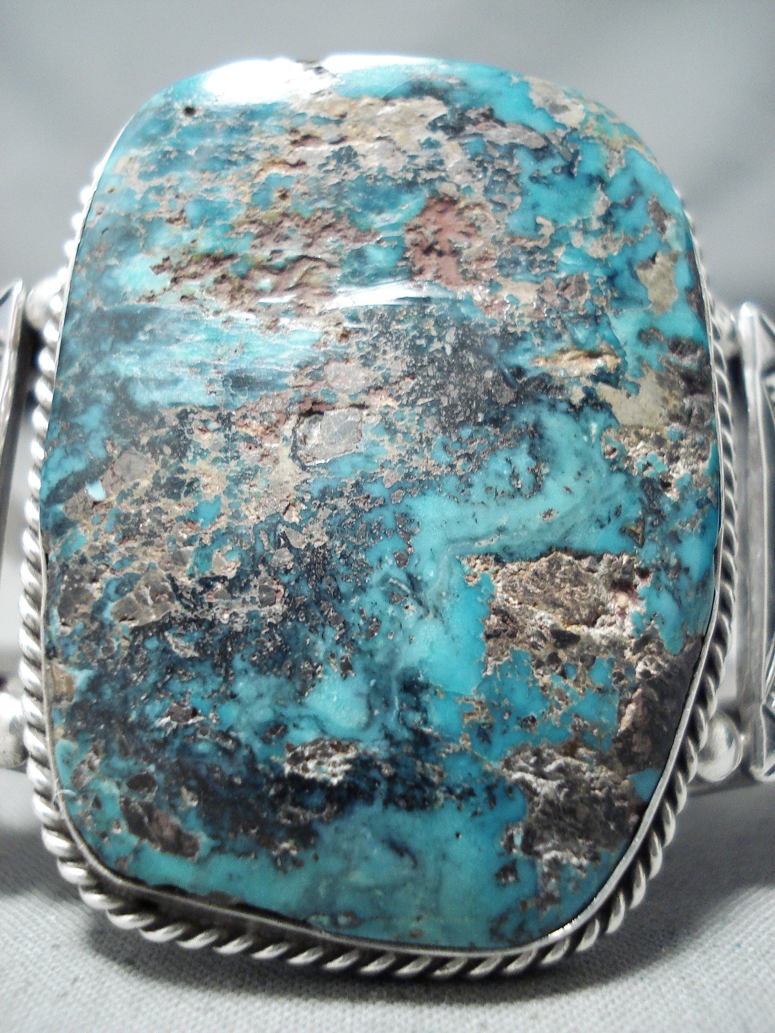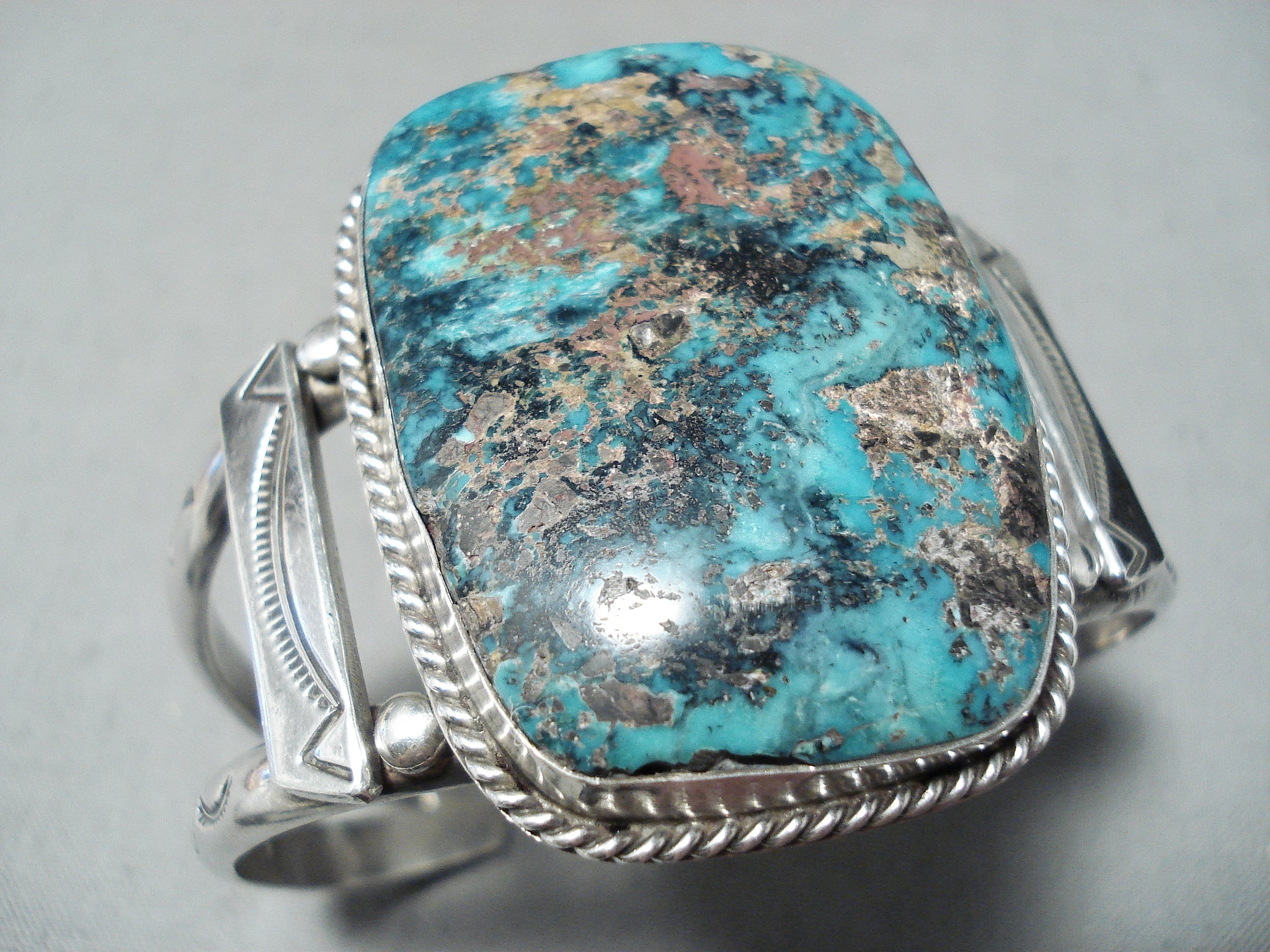 Monster Chunk Turquoise Vintage Native American Navajo Sterling Silver Bracelet
