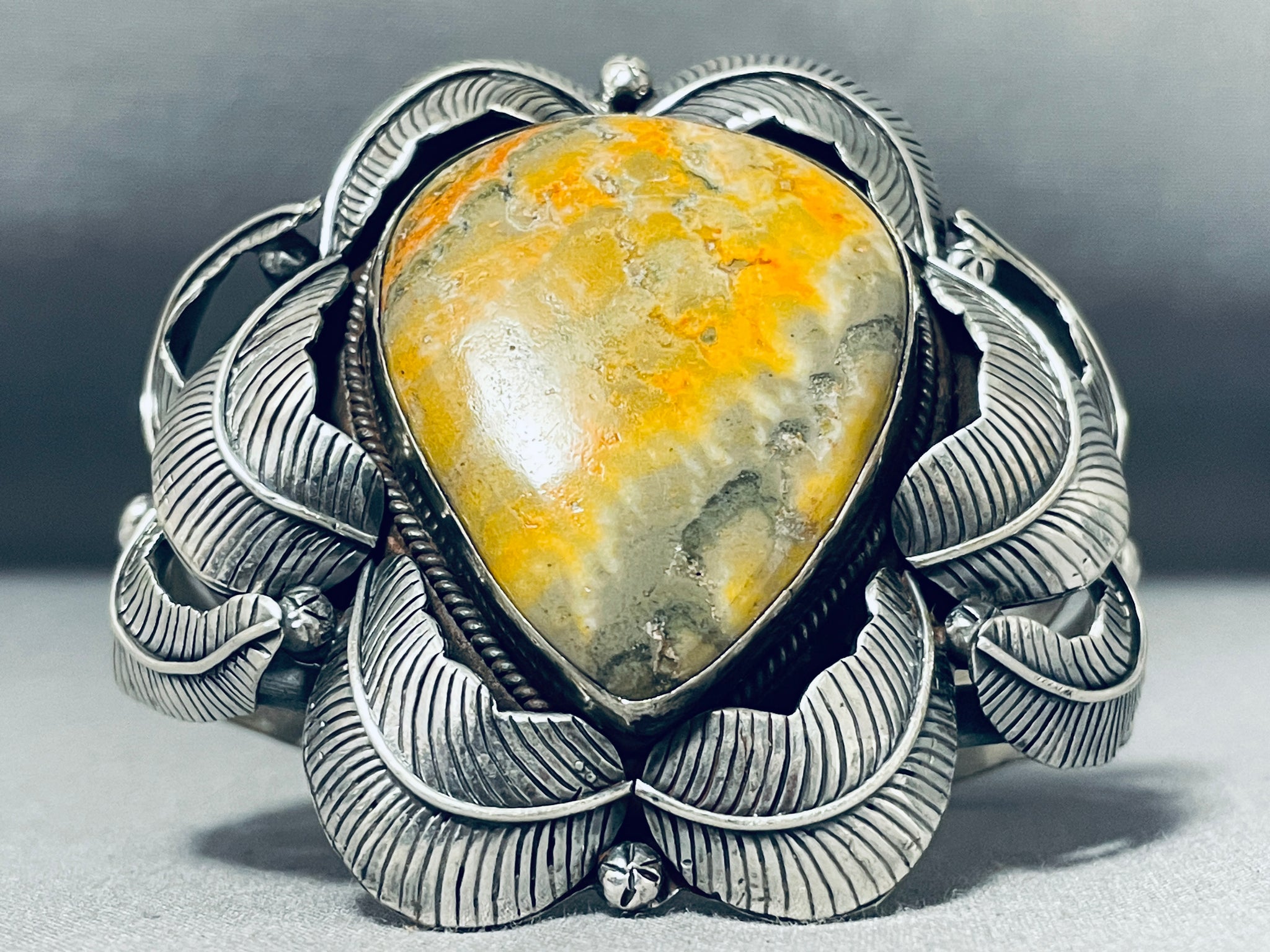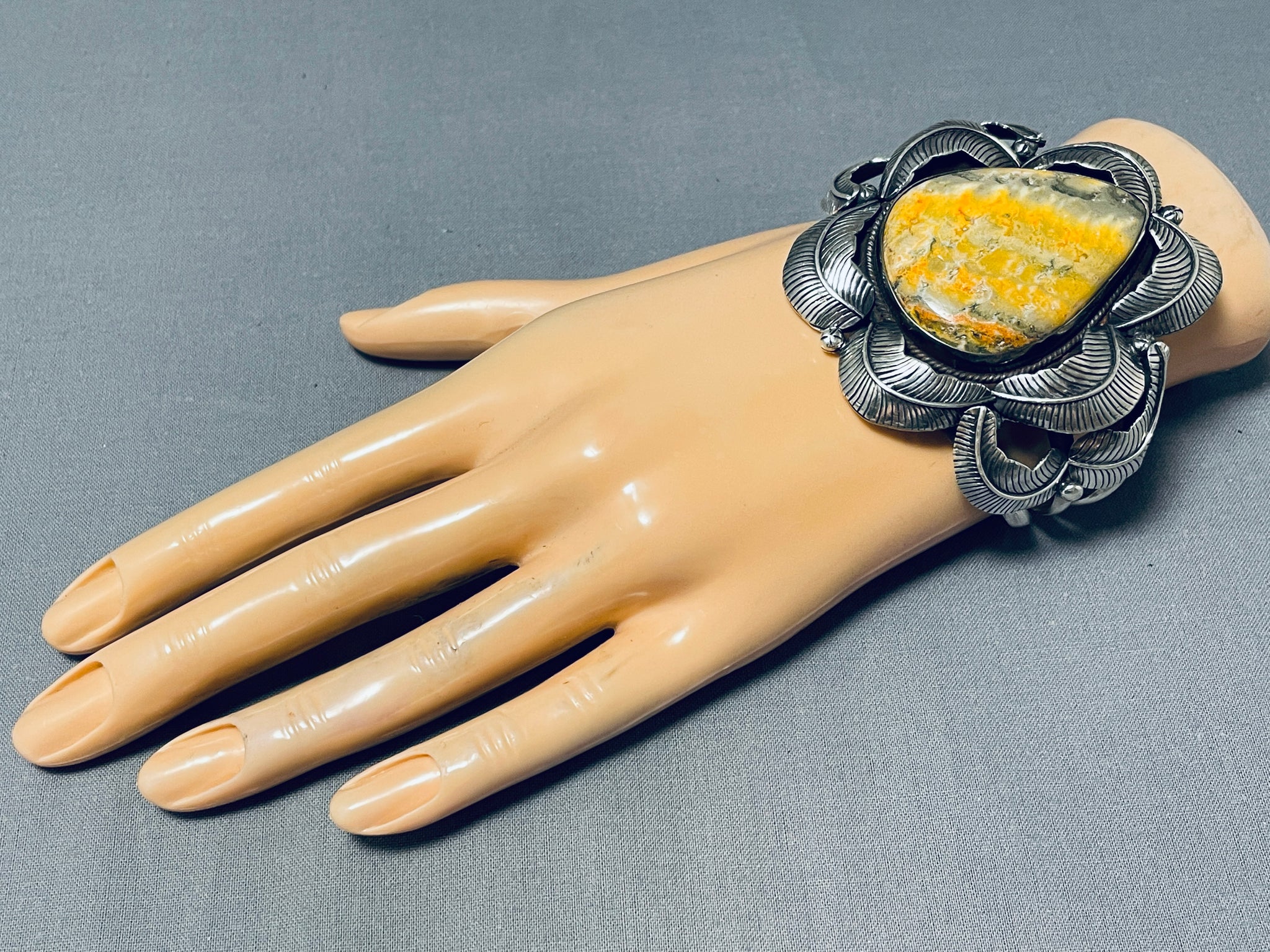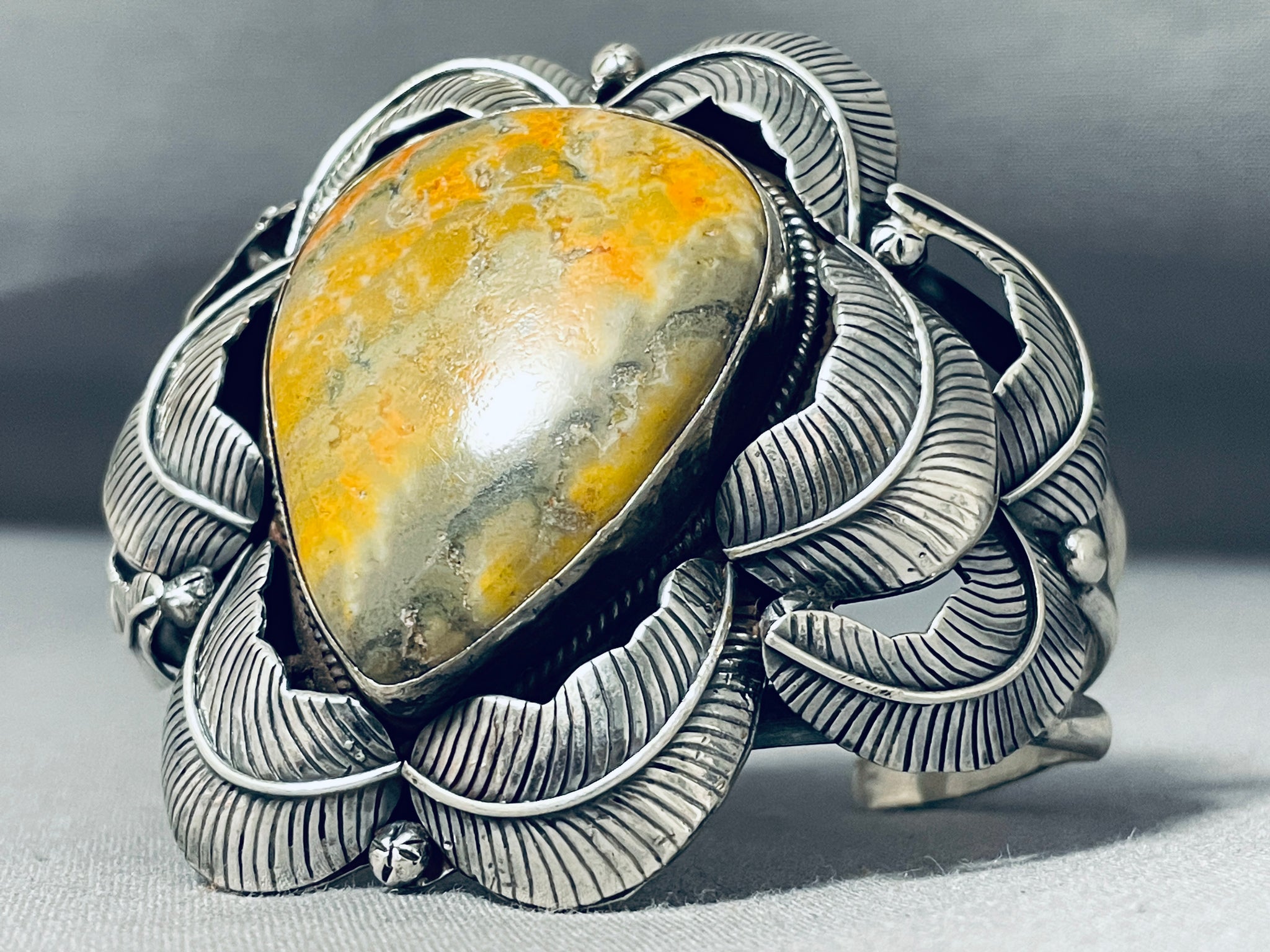 Monster Honeybee Japser Vintage Native American Navajo Sterling Silver Bracelet