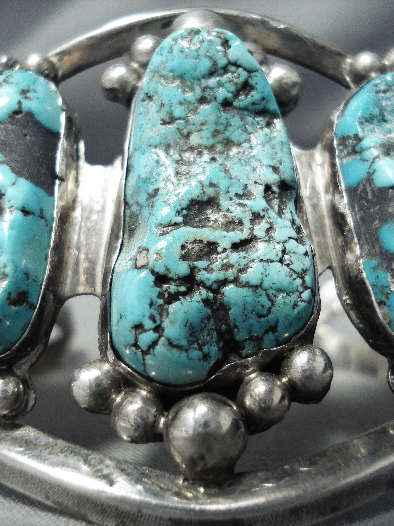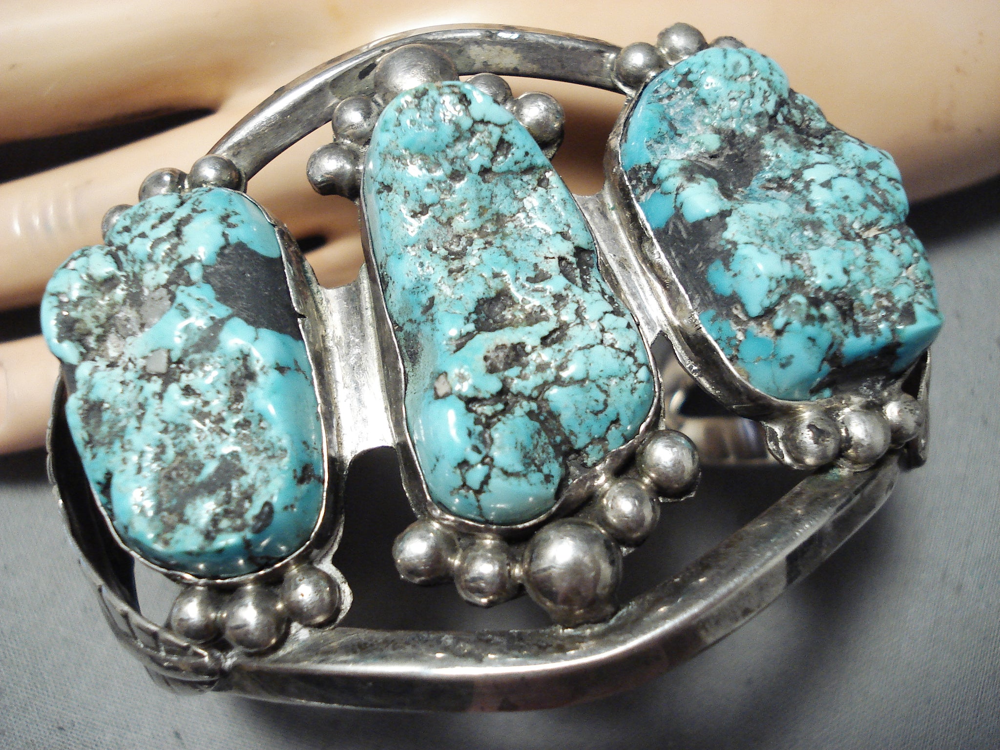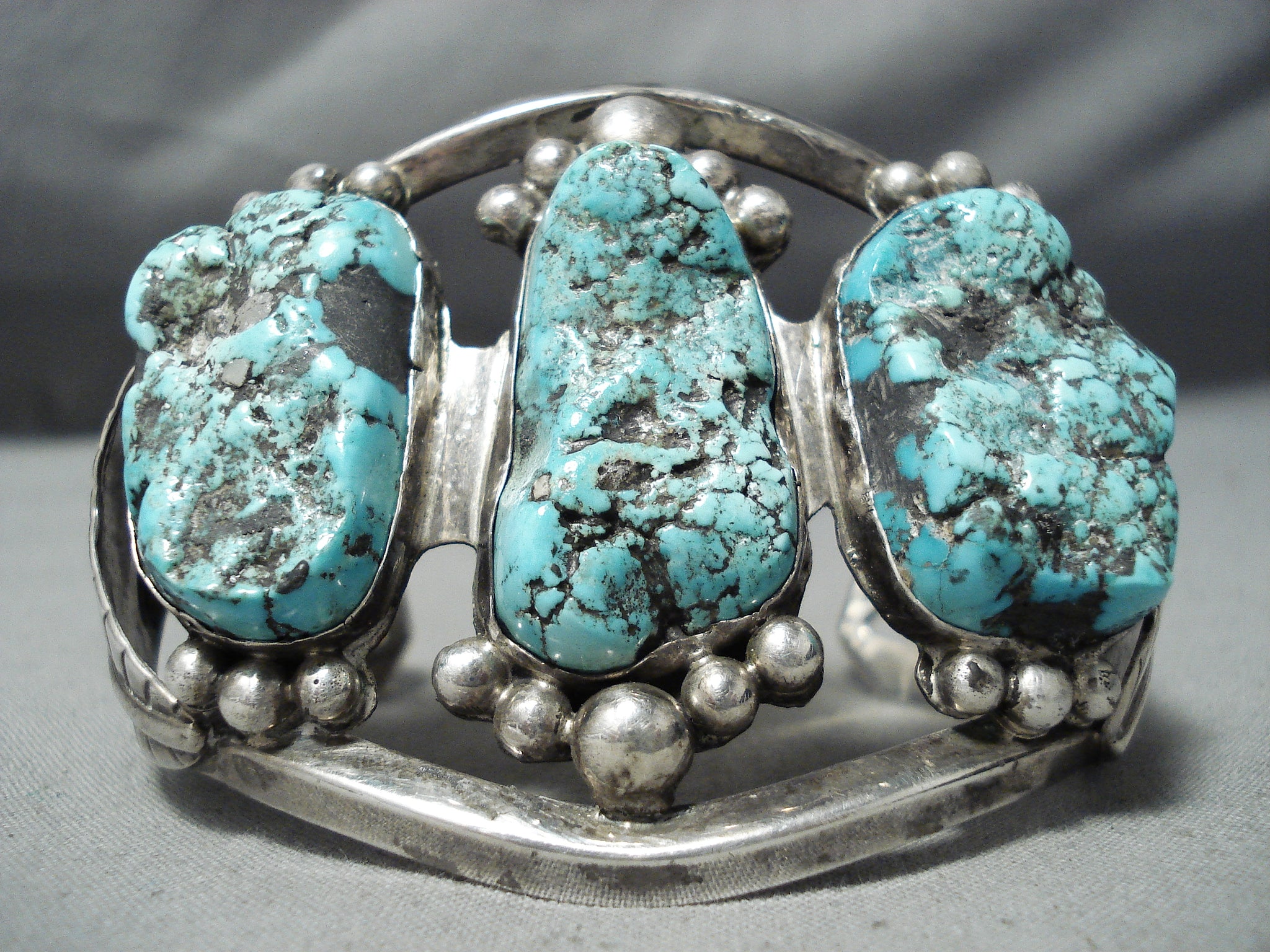Monster Vintage Native American Navajo Turquoise Boulder Sterling Silver Bracelet Old