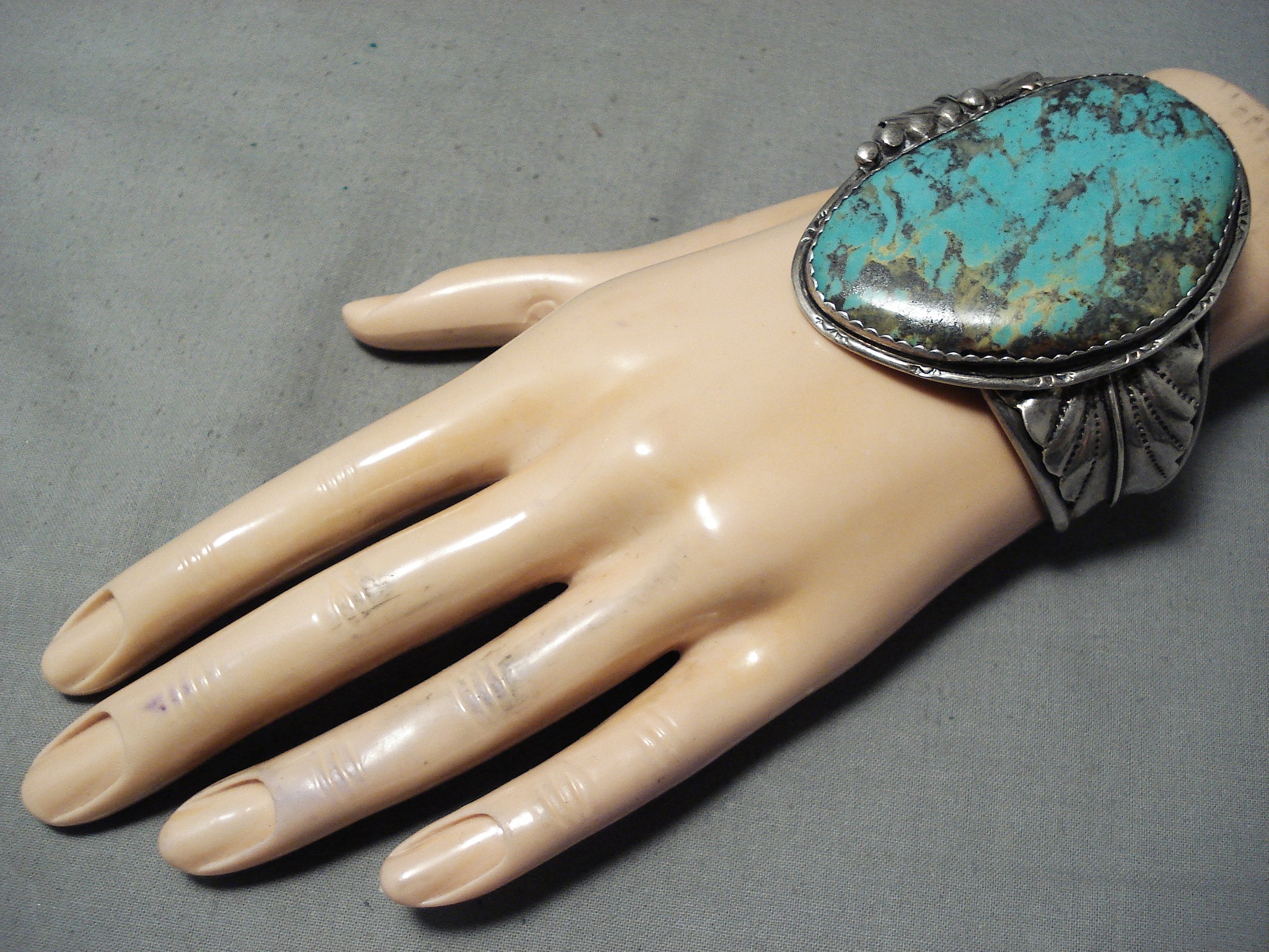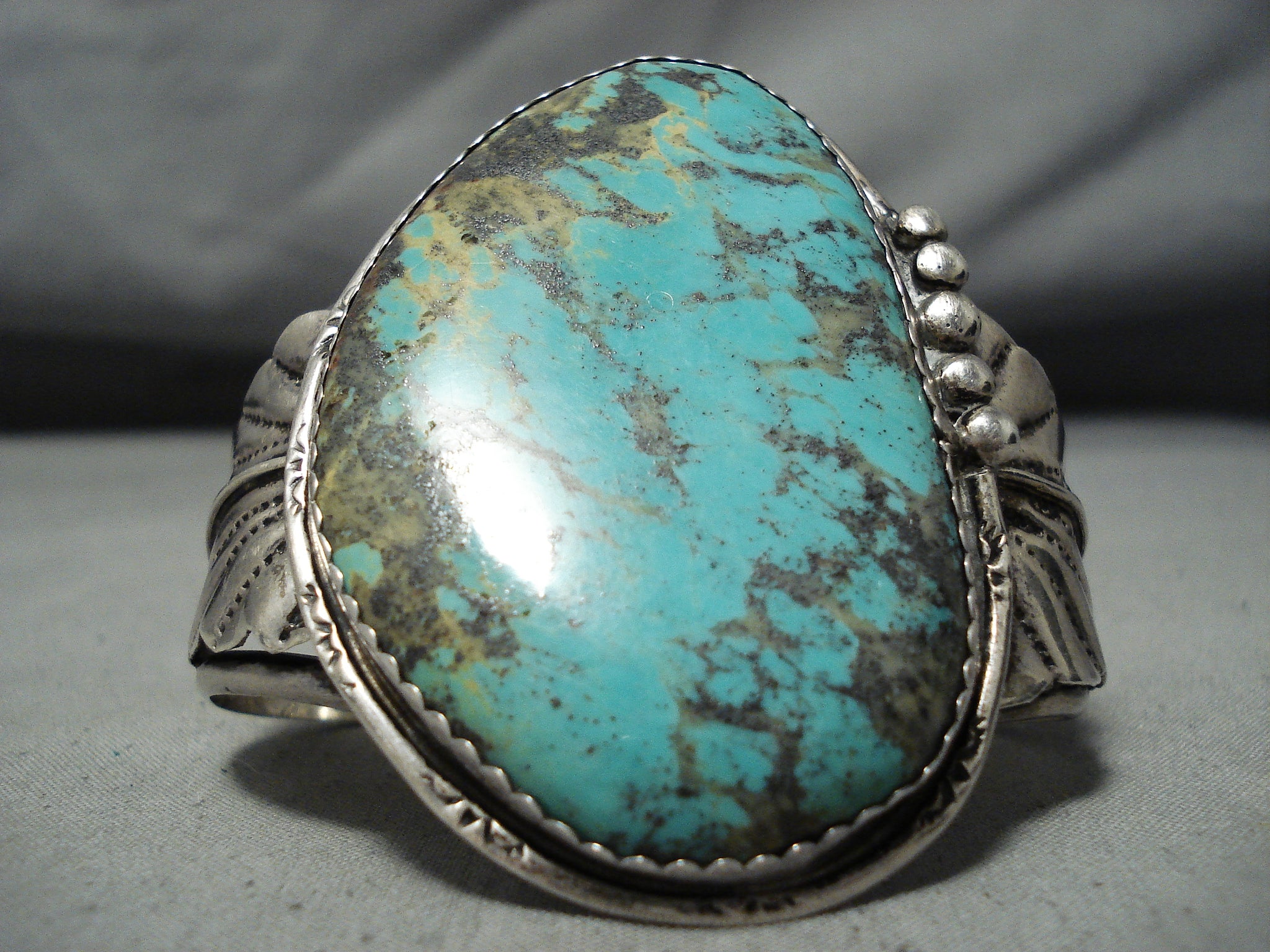 Monstrous Museum Vintage Native American Navajo Basalt Turquoise Sterling Silver Bracleet