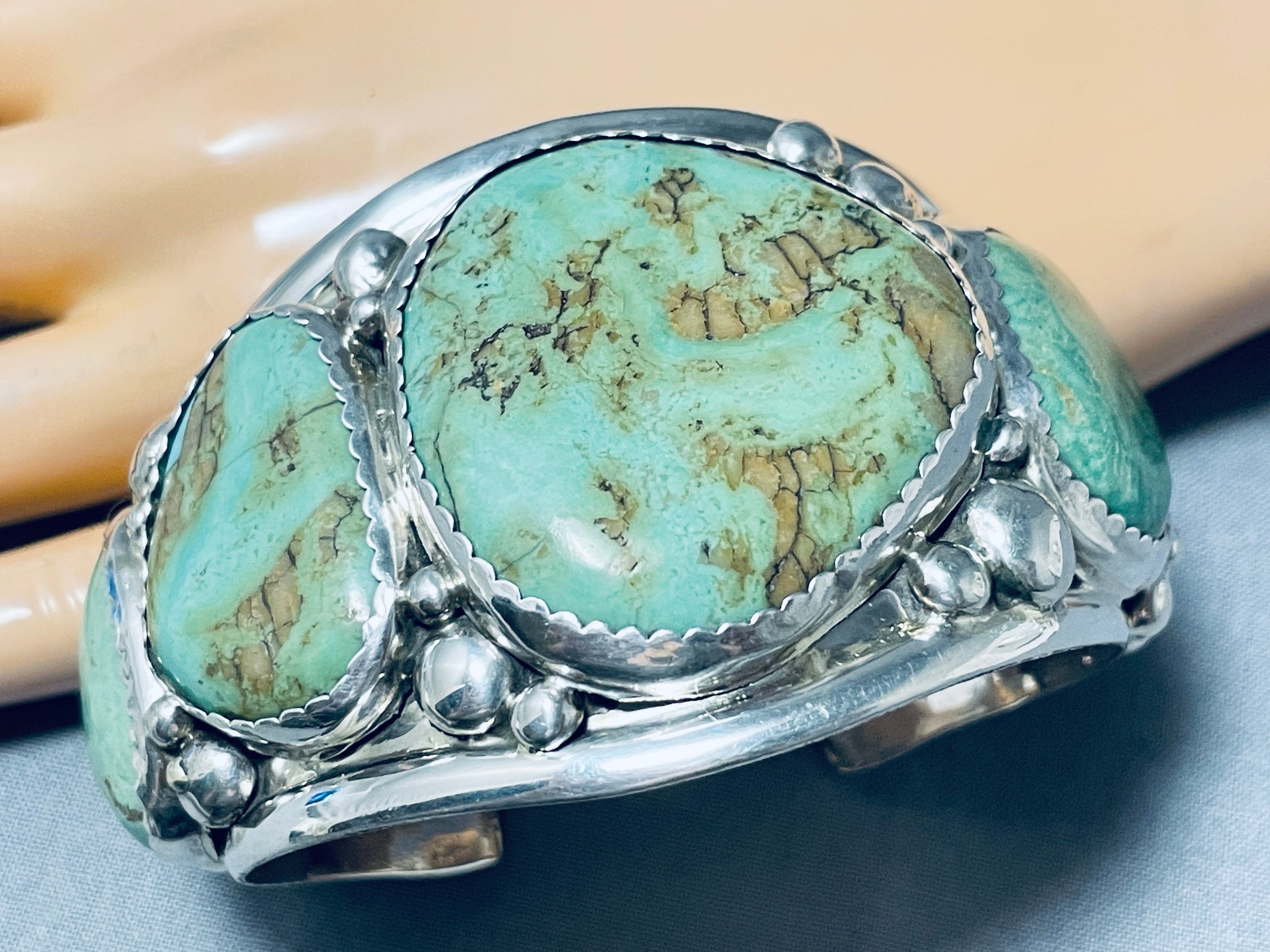 Monstrous Vintage Native American Navajo Royston Turquoise Sterloing Silver Bracelet