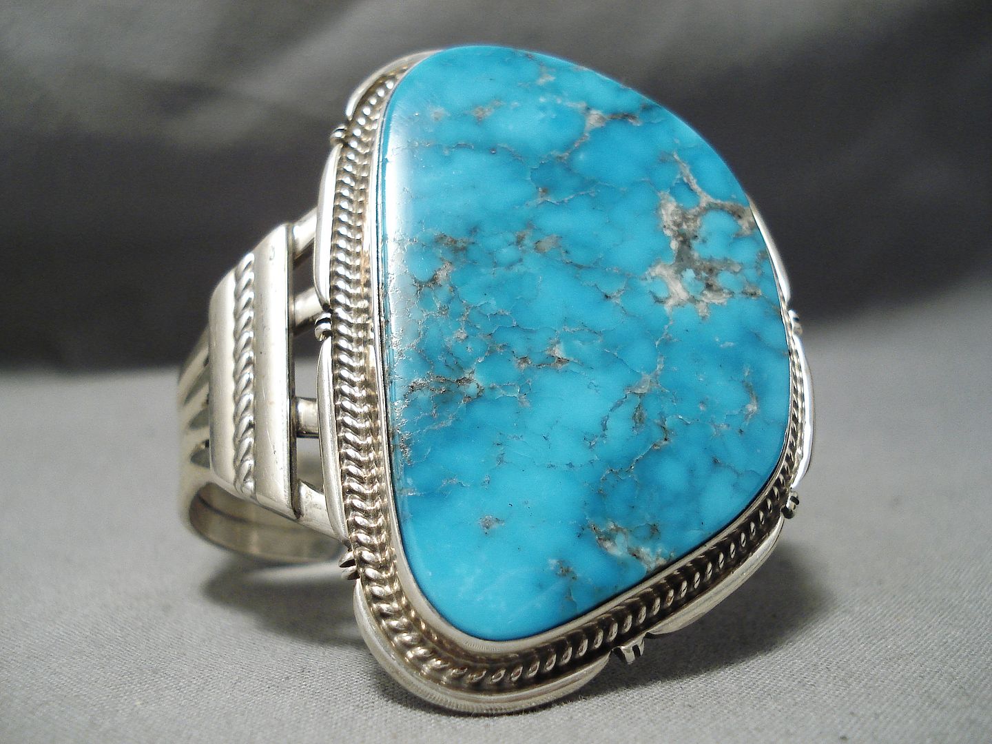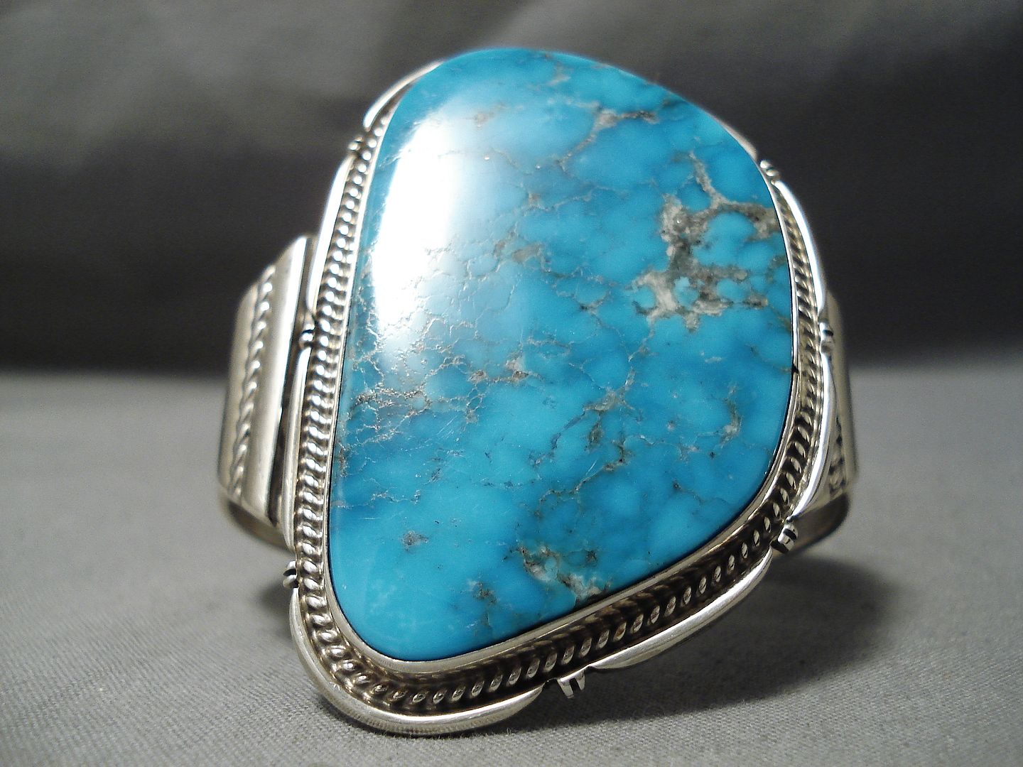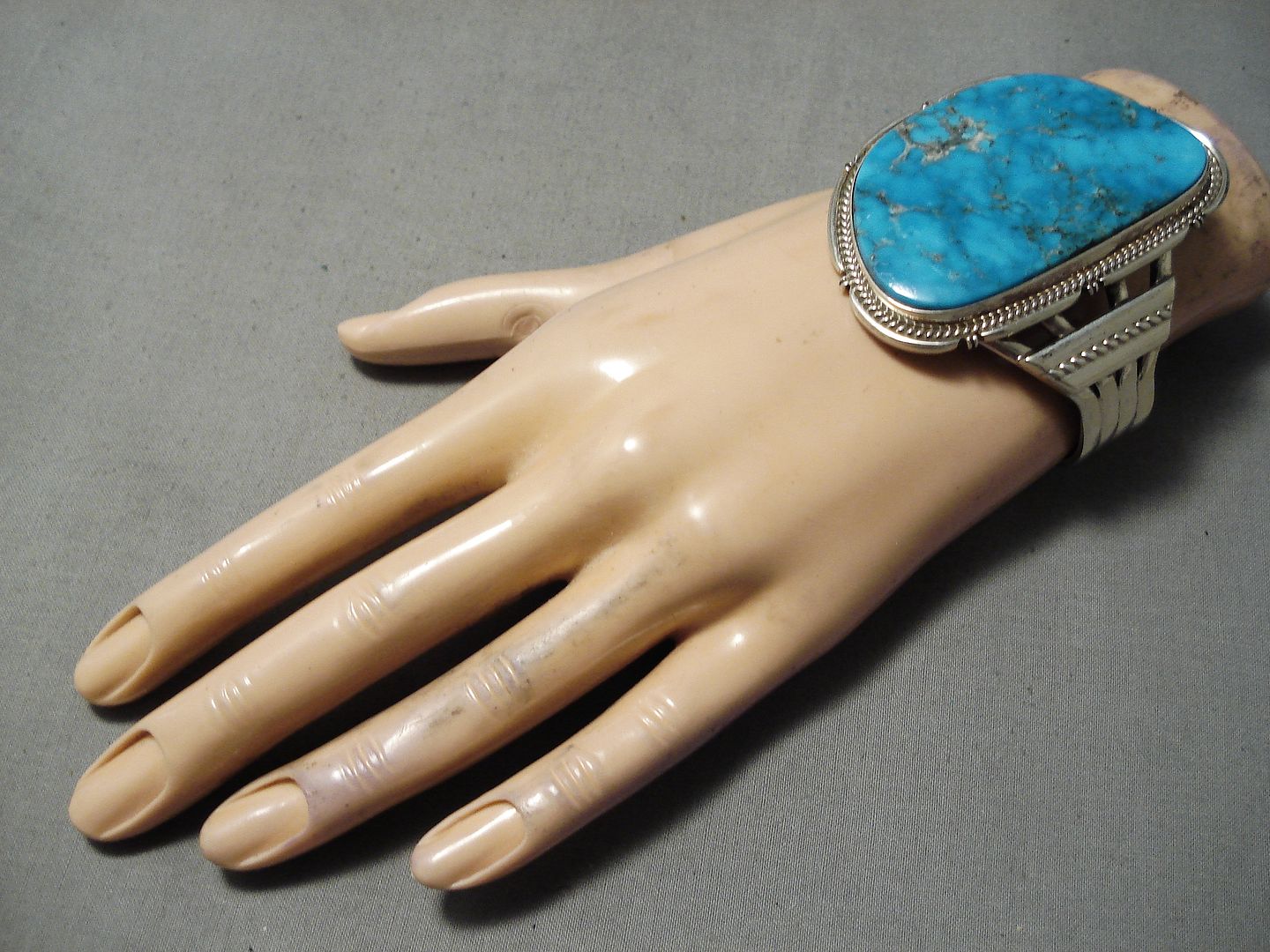 Monumental Dean Sandoval Vintage Native American Navajo Turquoise Sterling Silver Bracelet