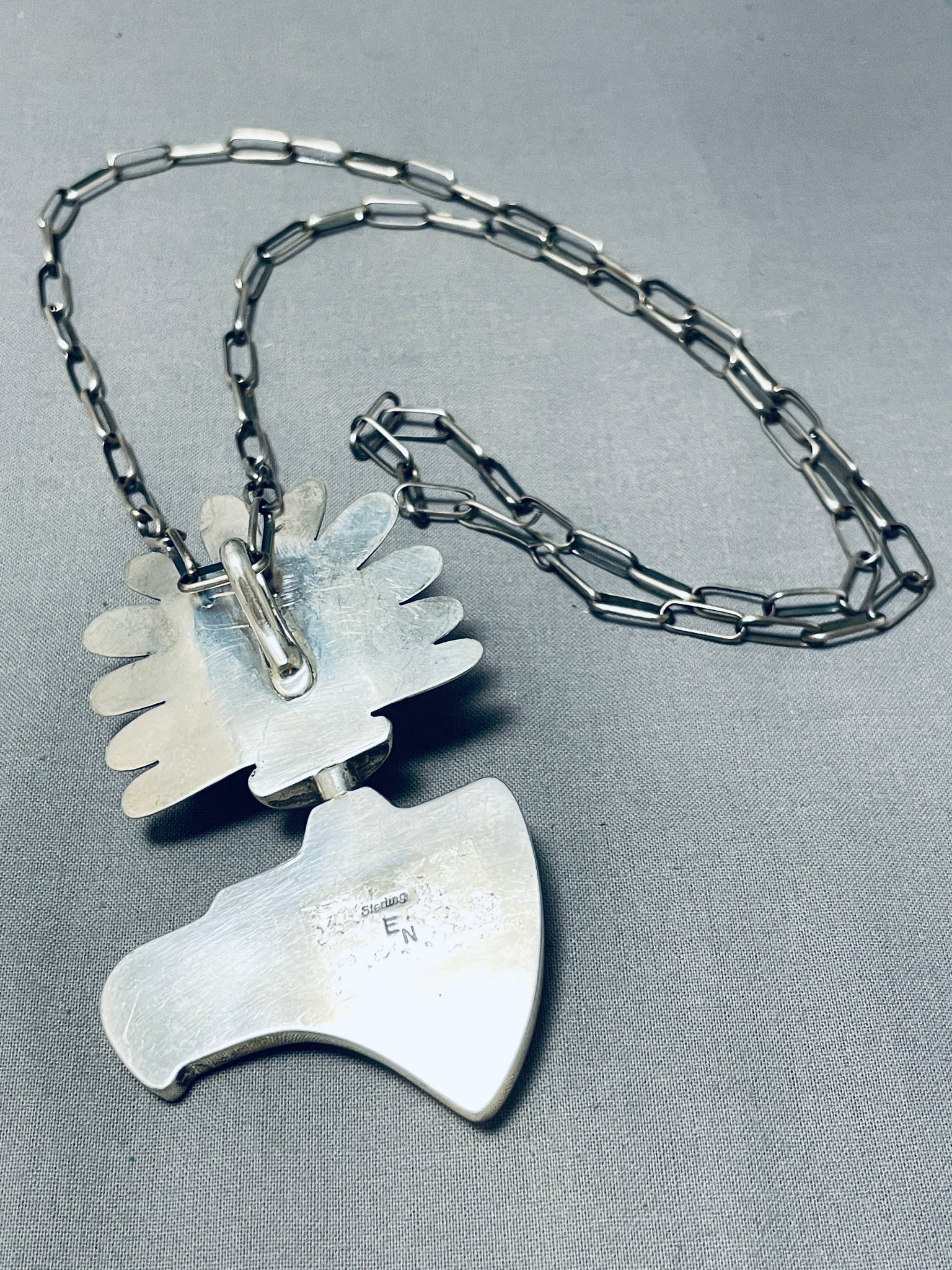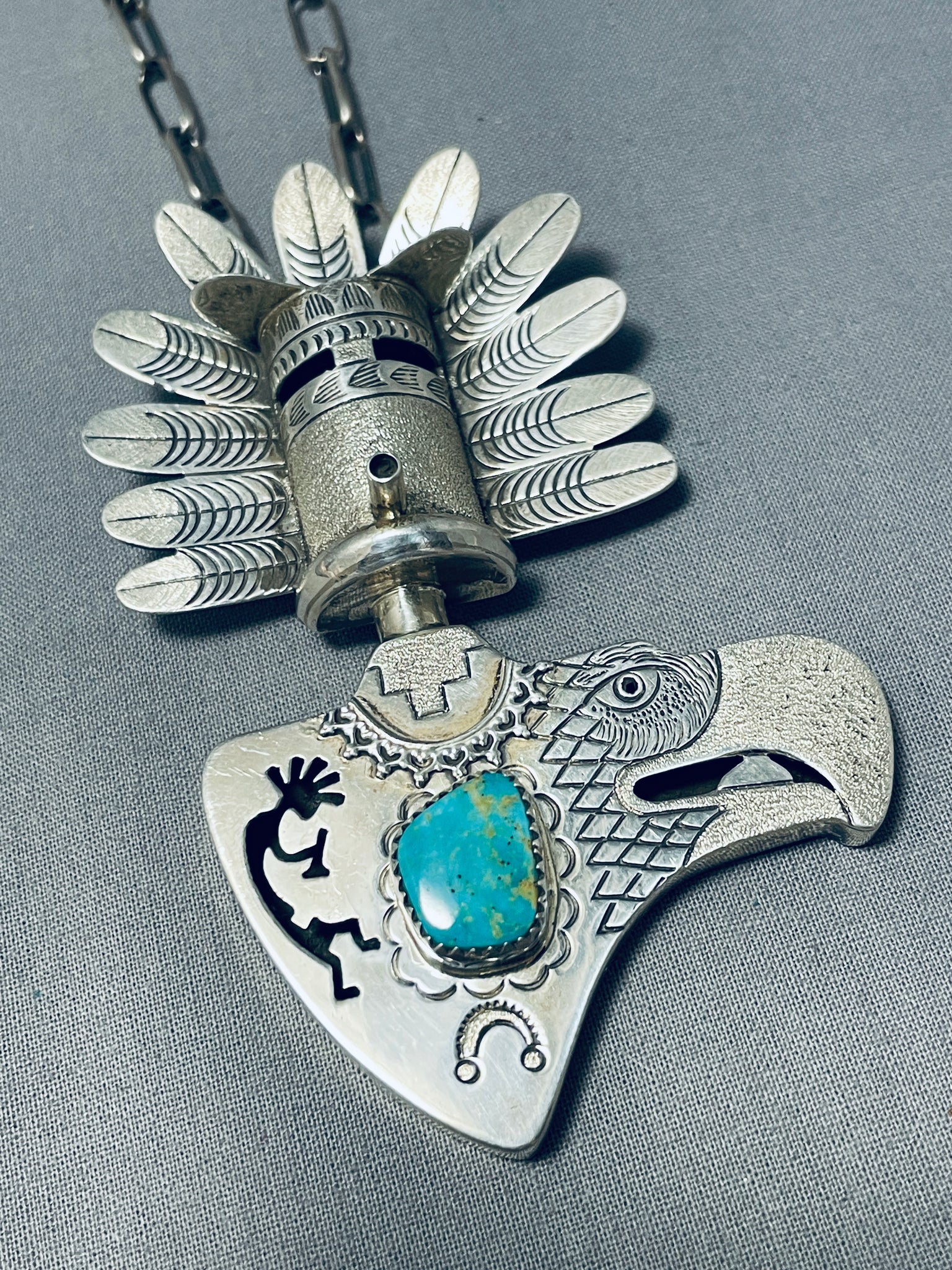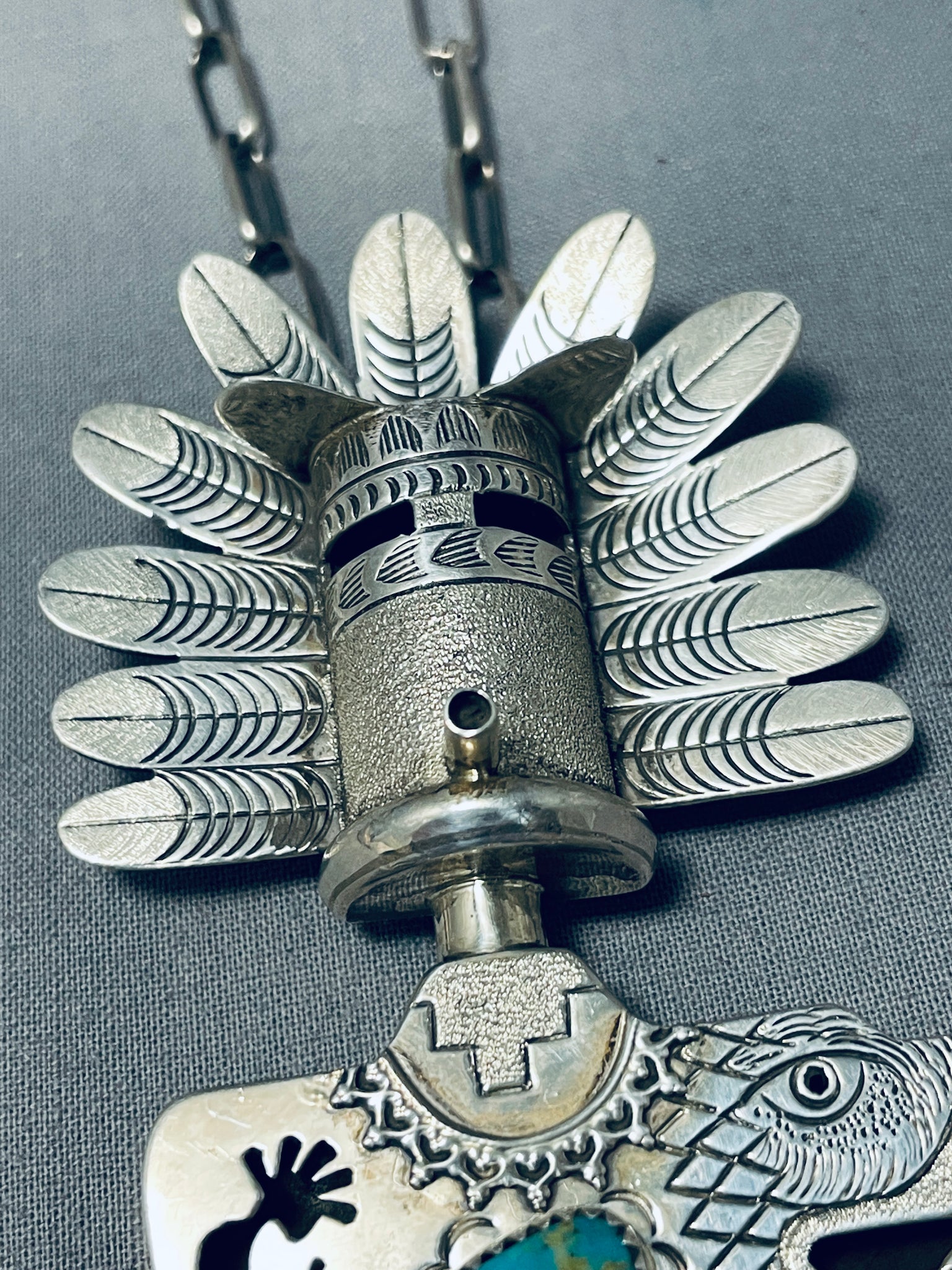 Most Detailed Kachina Eagle Turquoise Vintage Native American Navajo Sterling Silver Necklace
