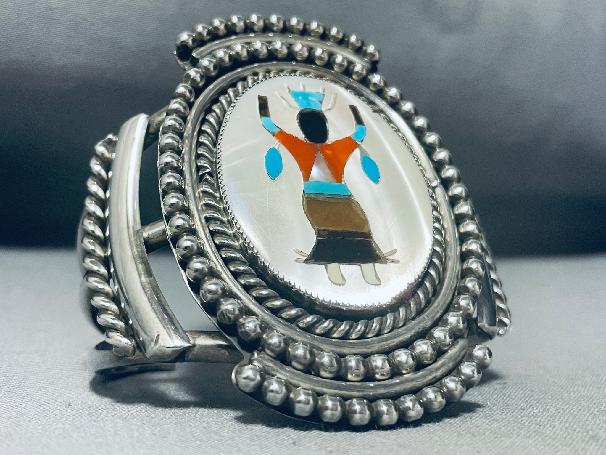 Most Detailed Silver Bead Vintage Native American Navajo Kachina Sterling Silver Bracelet