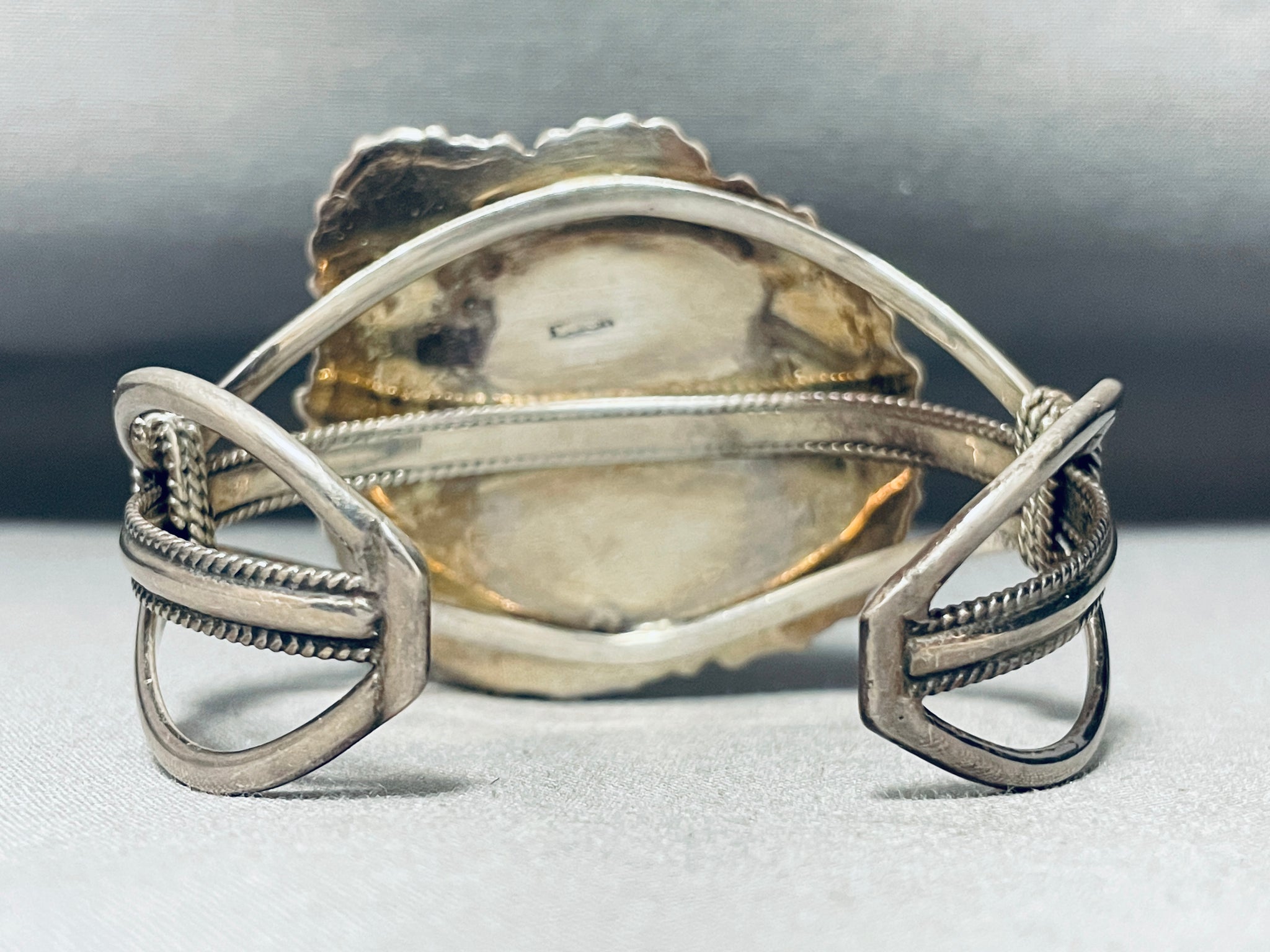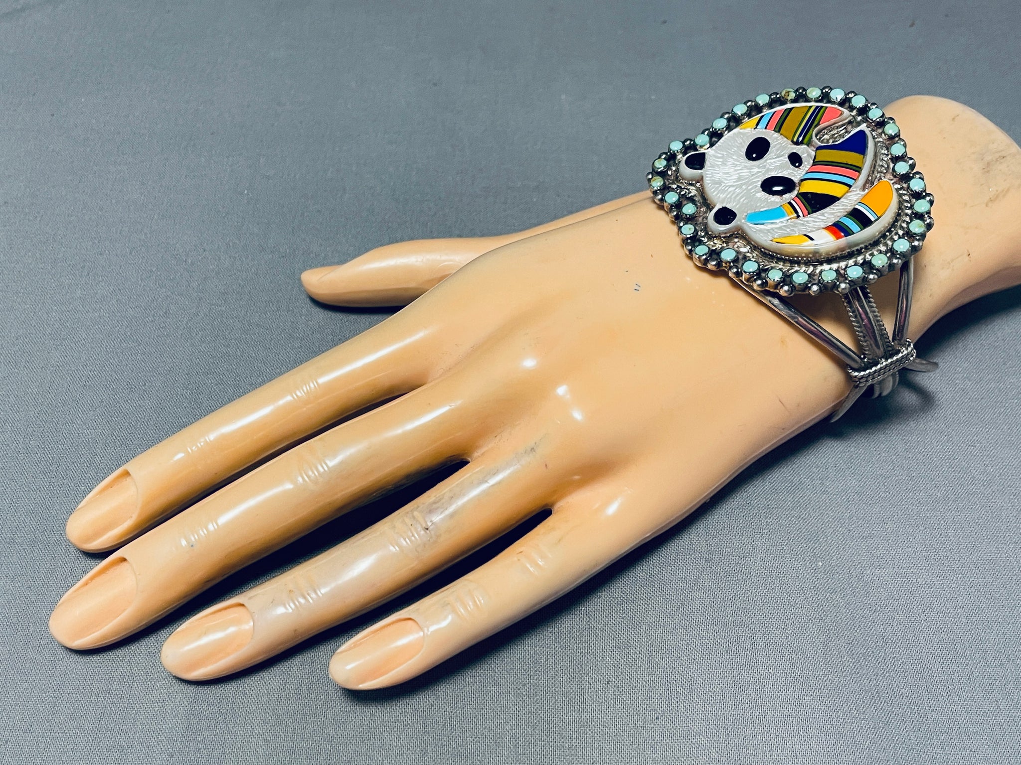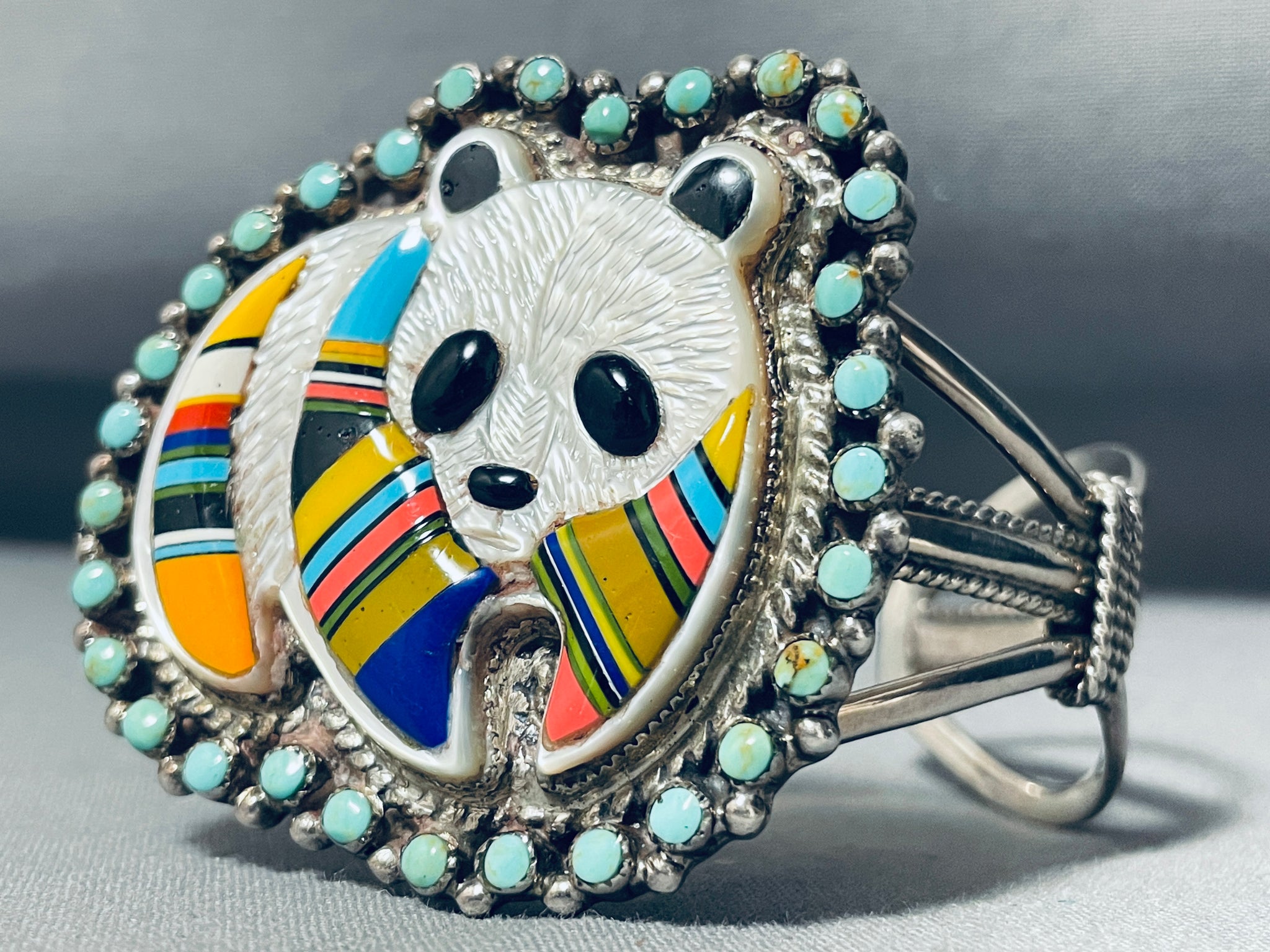 Most Intricate Southwest Vintage Turquoise Panda Sterling Silver Bracelet