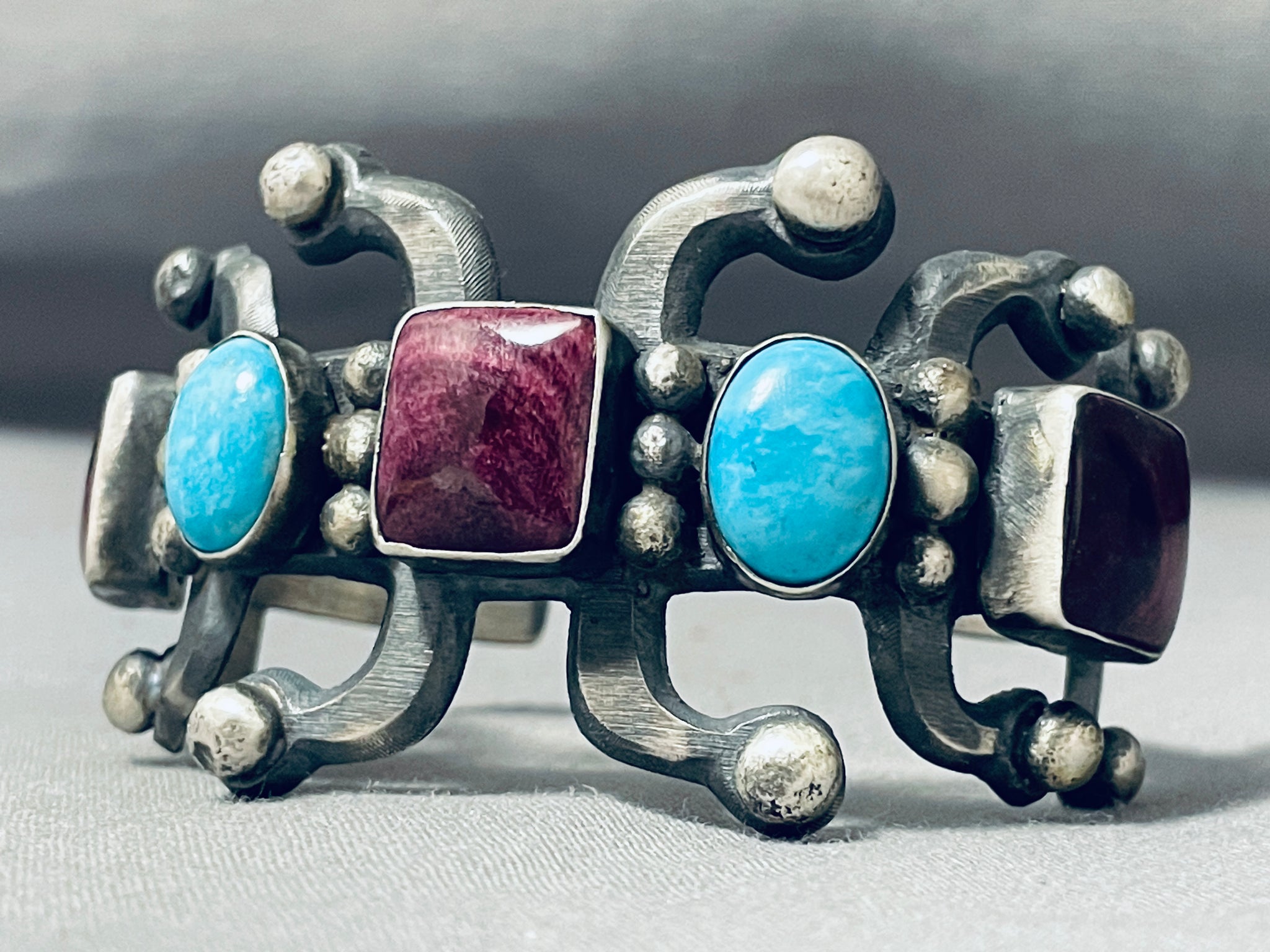 Most Unique Native American Navajo Purple Shell Turquoise Sterling Silver Bracelet Cuff